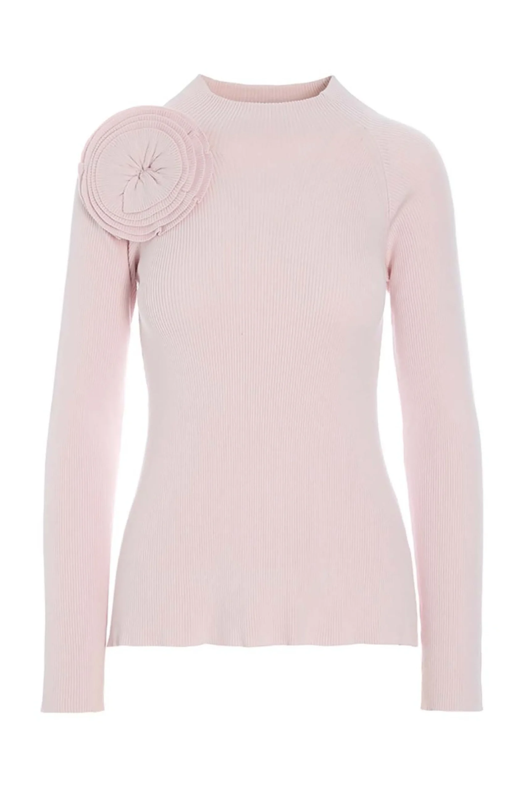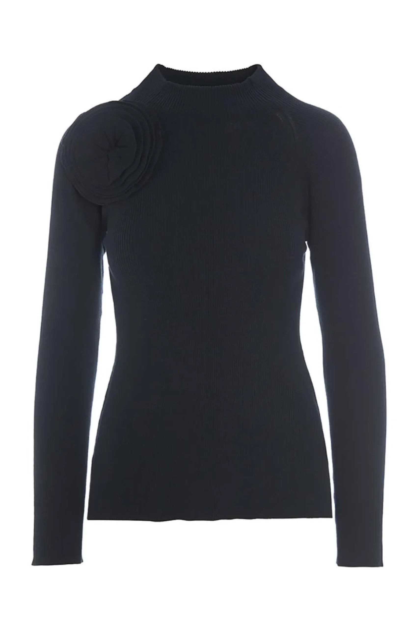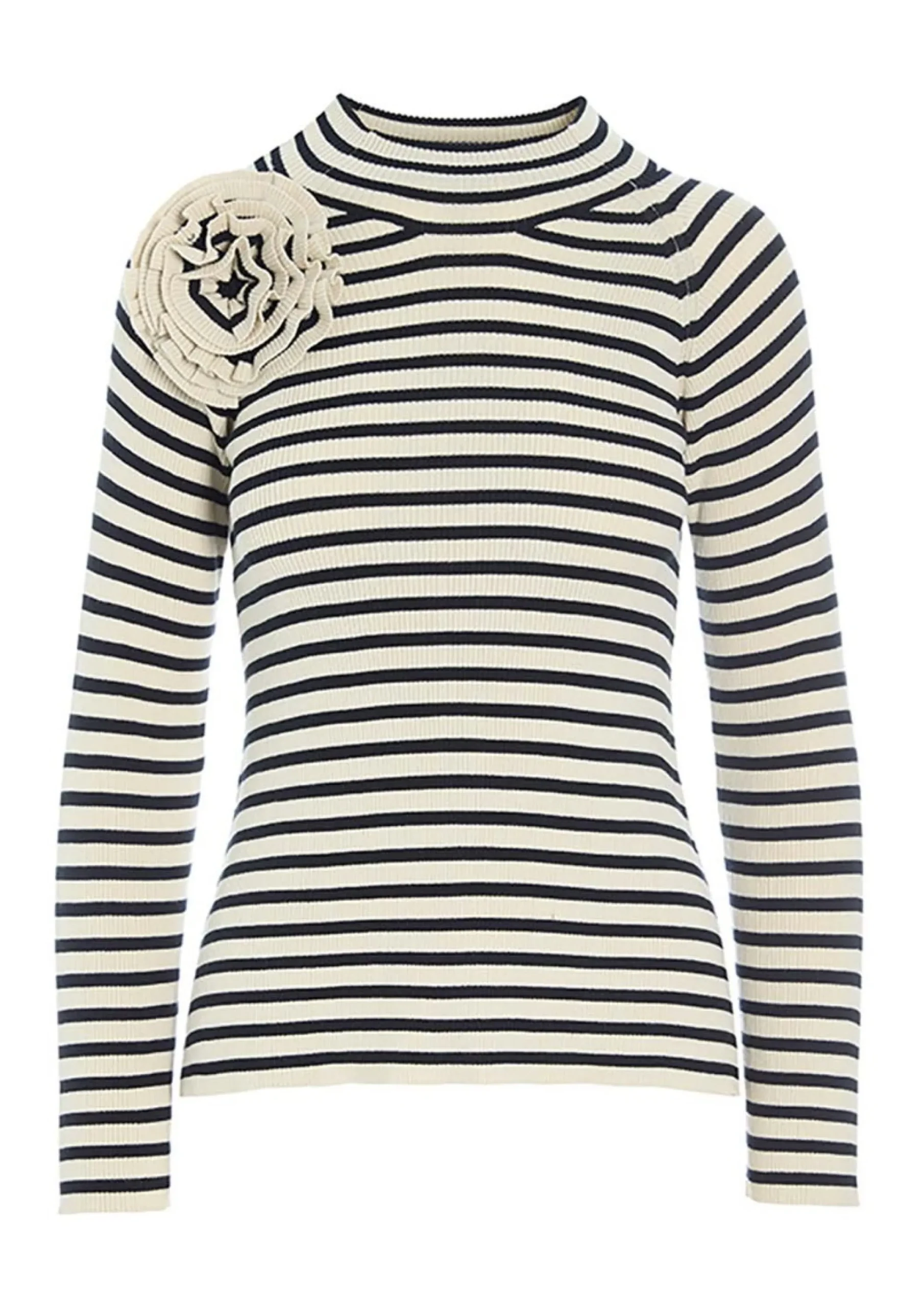 Strikbluse med rib og den fineste matchende blomst som dekoration. Blusen er relativt tætsiddende, og når ribstrikken følger kroppens kurver, skabes en smuk effekt. Lad blusen og blomsten opgradere ethvert hverdags-look, og brug dem tilsat festlige bukser eller nederdel til en middag i byen.Modellen på billede er 180 cm og iført str. SFuld længde i str. S, ca. 59 cm.