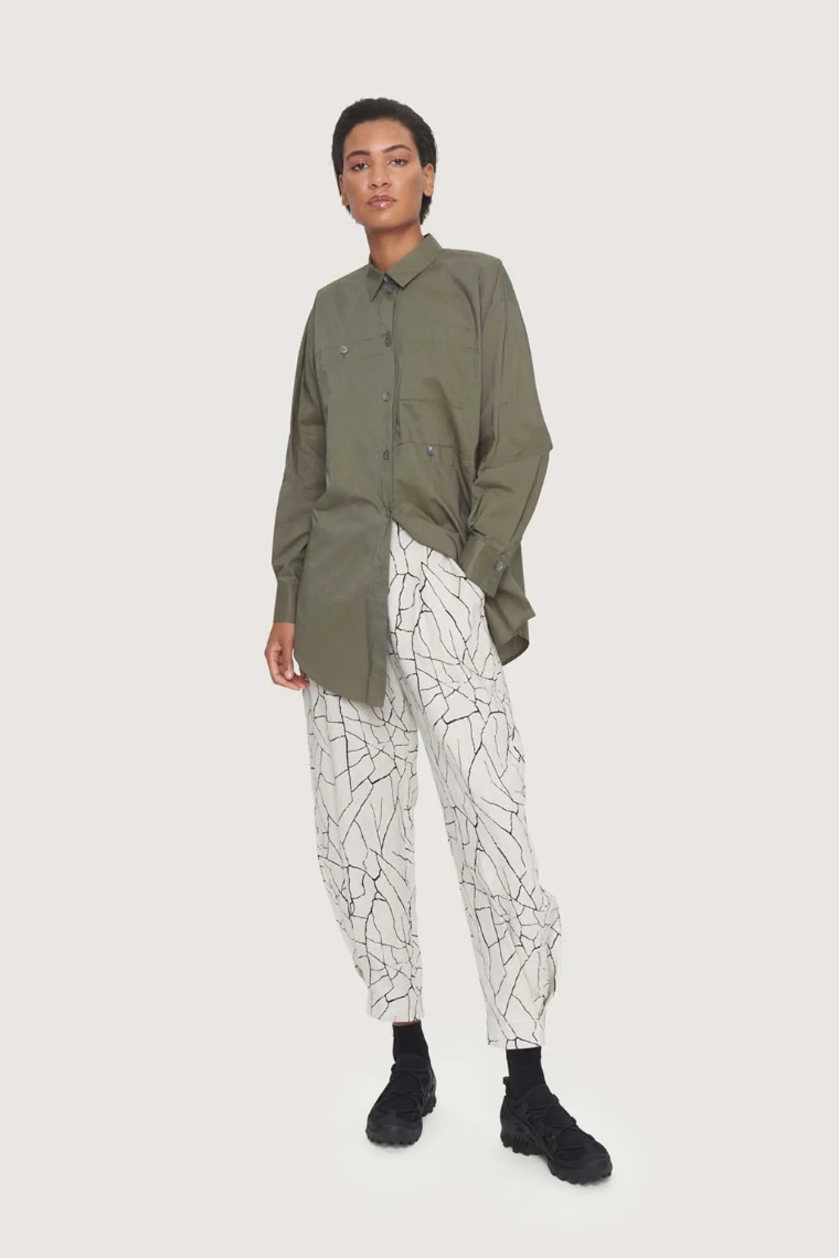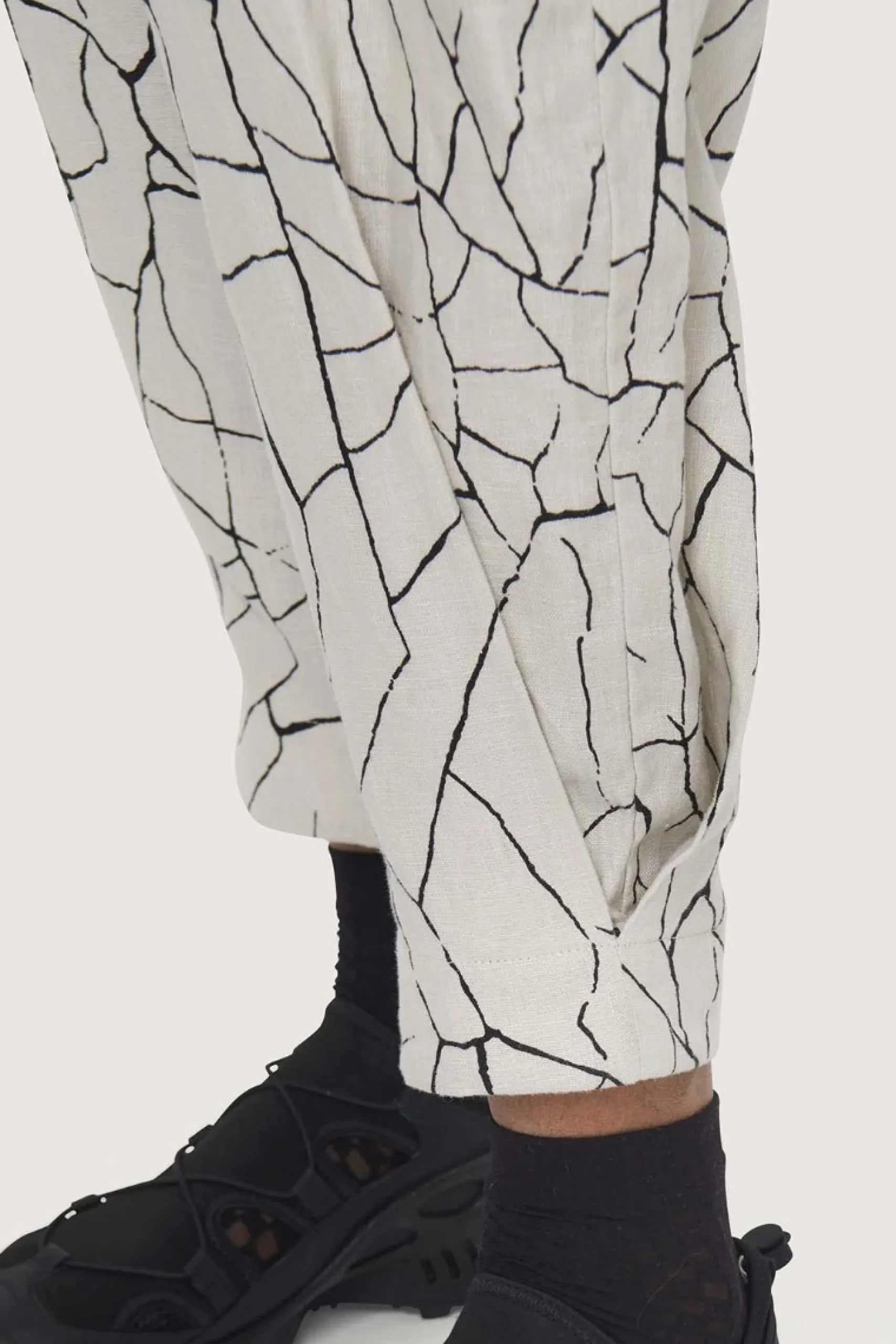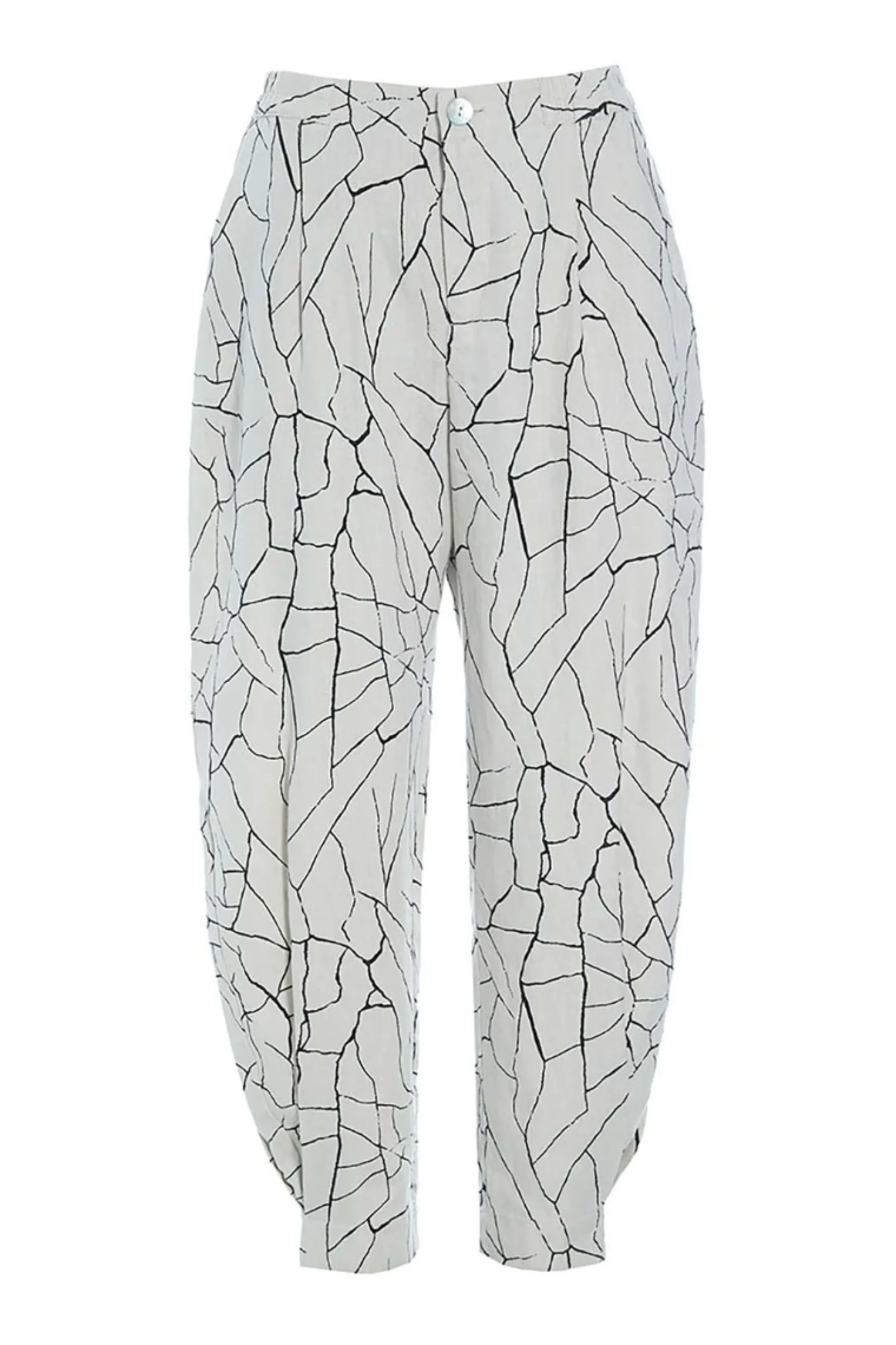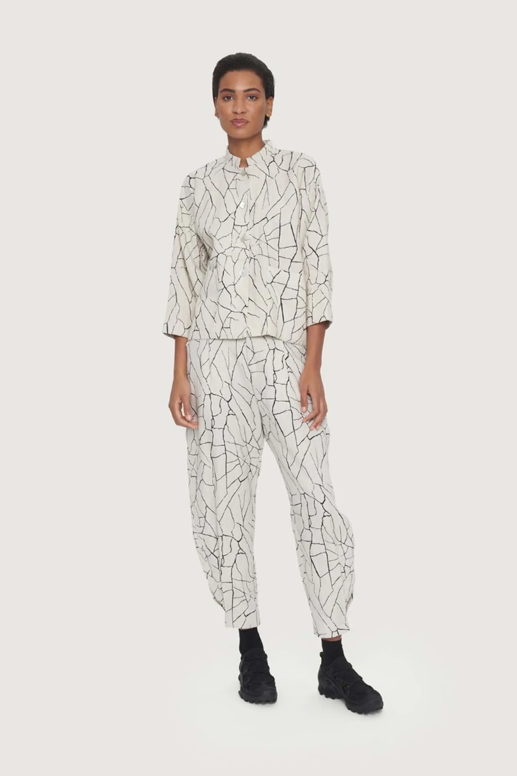 Bukser med wienerlæg i bunden, der giver en voluminøs effekt. En lækker hørkvalitet, forsynet med et enkelt og organisk mønster, der giver den et stilrent, grafisk udtryk. Bukserne kan bruges til enhver overdel. Sammen med den matchende Craquelure-jakke, får du et gennemført outfit.Modellen på billede er 180 cm og iført str. SLængde målt fra taljen i str. S: ca. 100 cm.