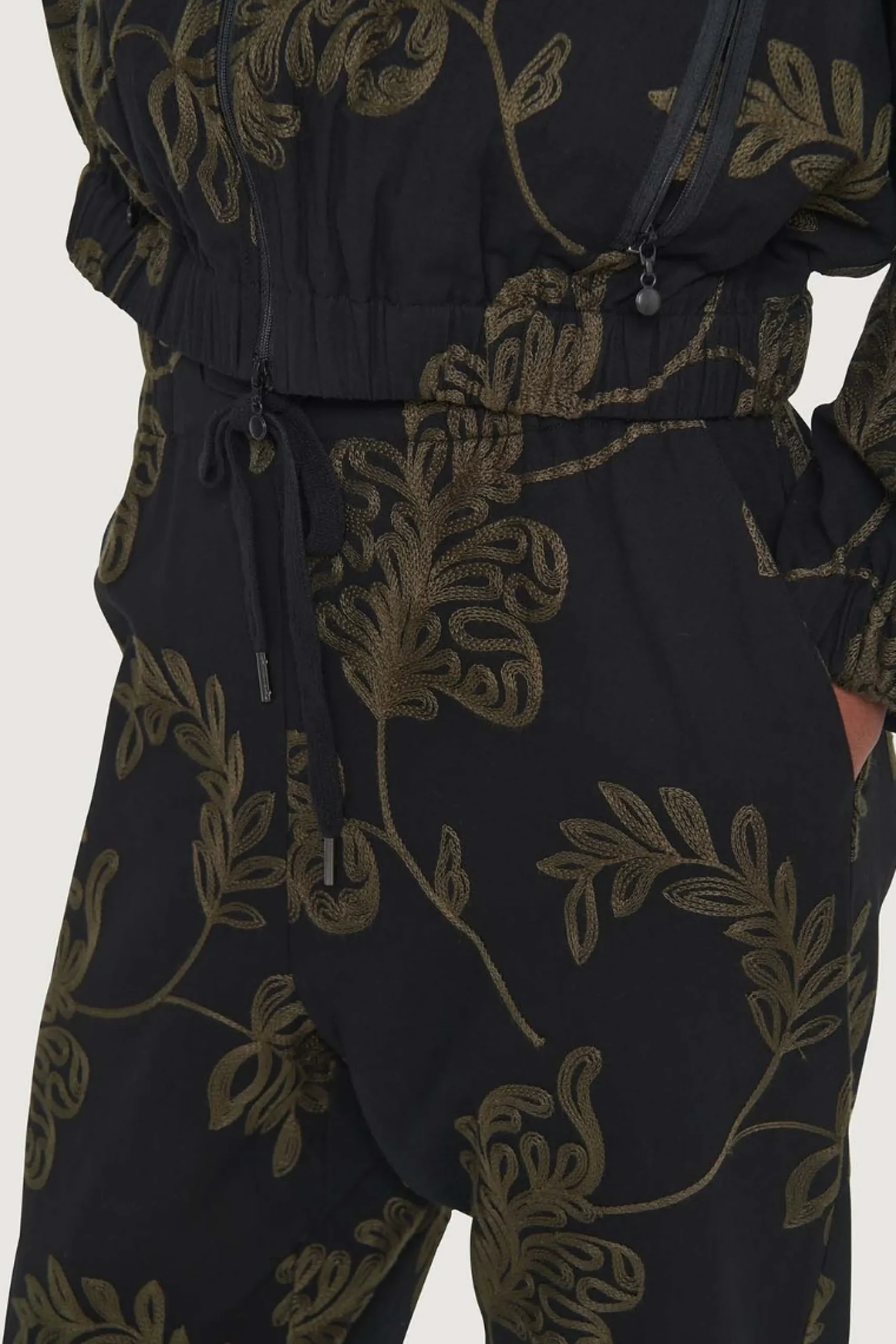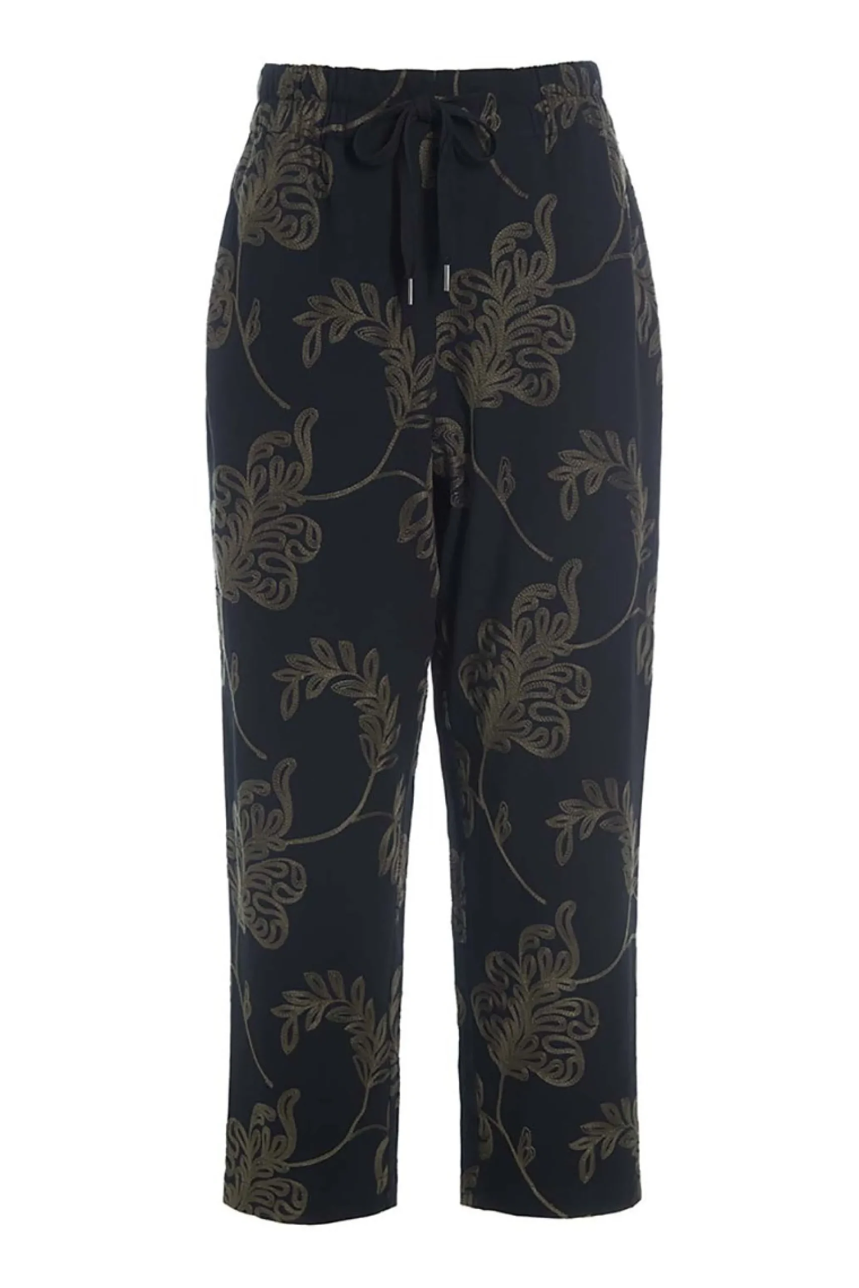 Velsiddende bukser udsmykket med det fineste broderede bladmotiv, der smyger sig op og ned ad benene. Bukserne sidder flot til i taljen takket være linningen med elastik og bindebånd. De kan bruges til at opgradere enhver overdel, og kombinerer du bukserne med den matchende Embroidered Leaf jakke, får du et smart sæt.Modellen på billede er 180 cm og iført str. SLængde målt fra taljen i str. S: ca. 99 cm.