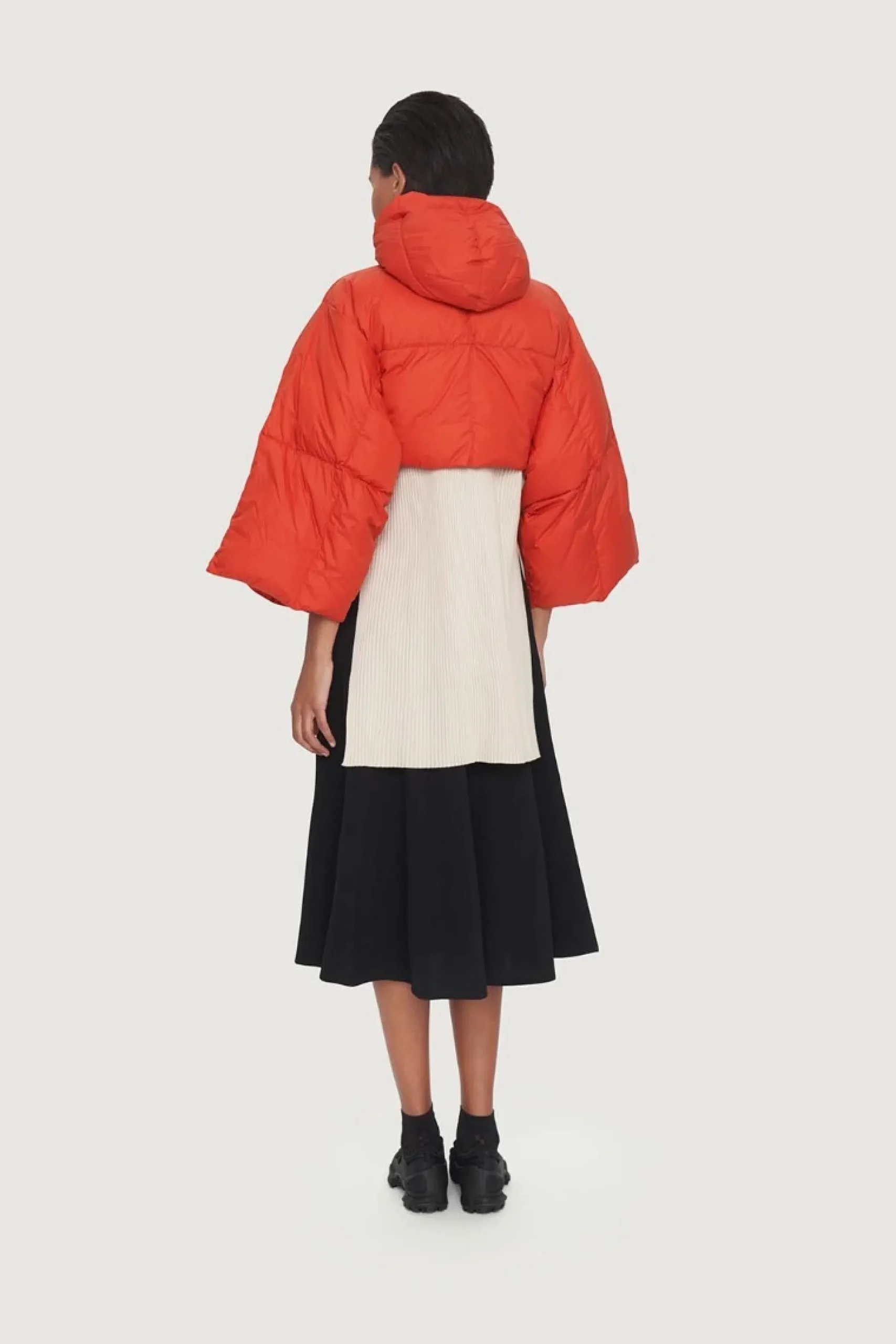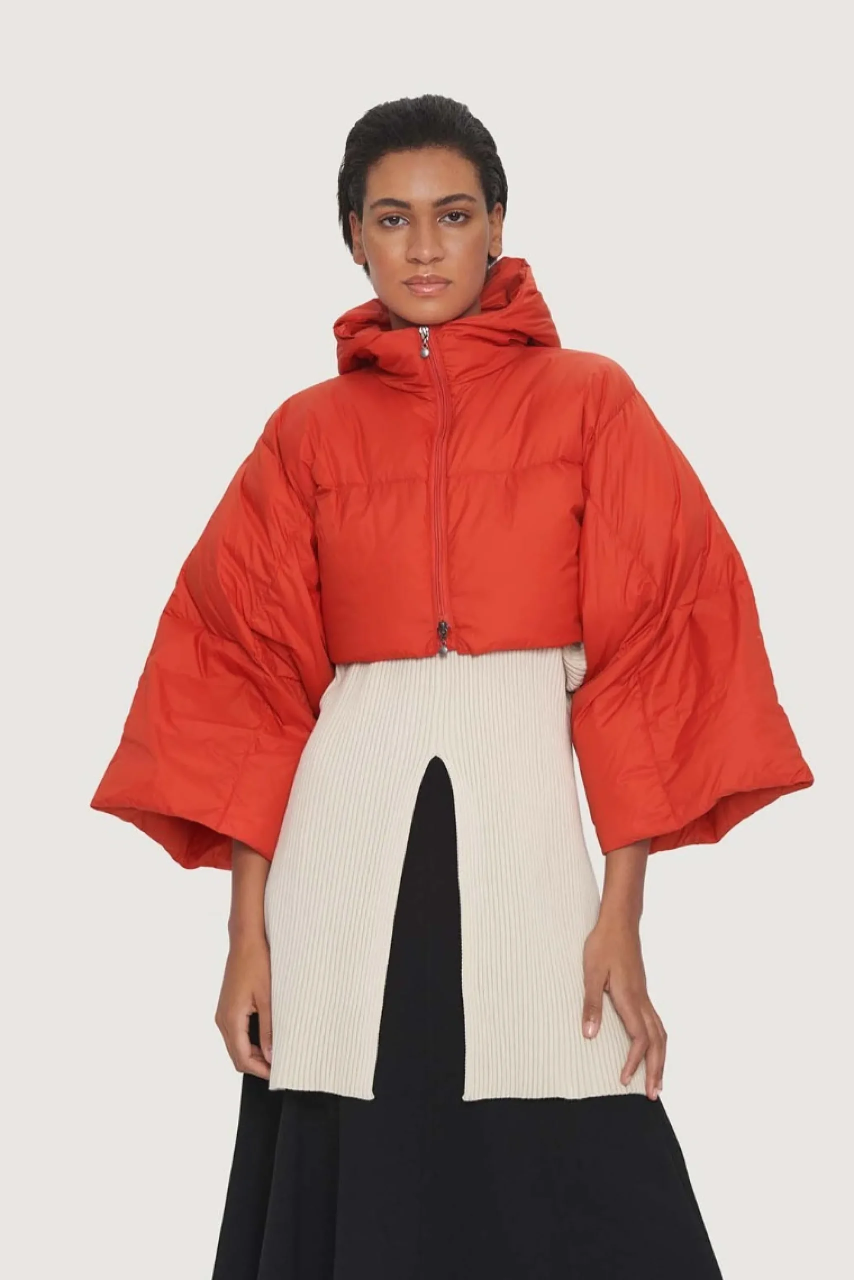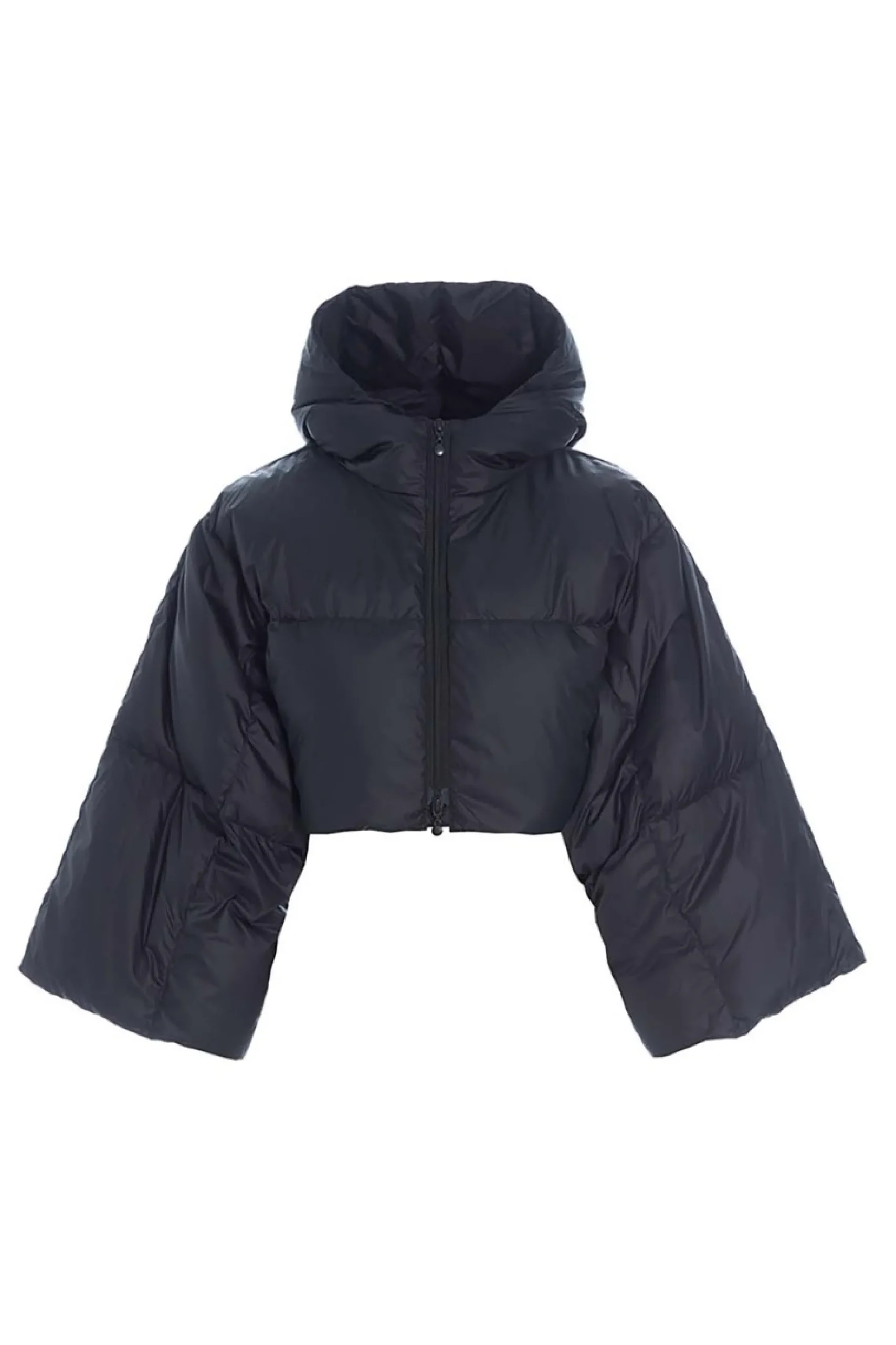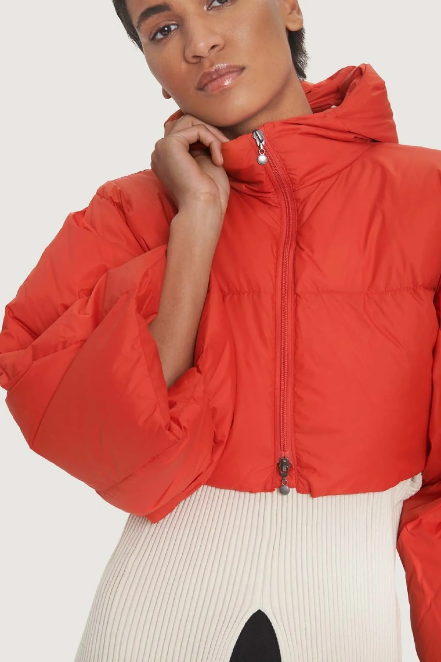 En kort dynejakke i et anderledes og cool snit med meget brede ærmer og en lun hætte. Jakken er i den letteste, bløde kvalitet. En stilsikker måde at holde sig varm på.Modellen på billede er 180 cm og iført str. SFuld længde i str. S, ca. 42 cm.