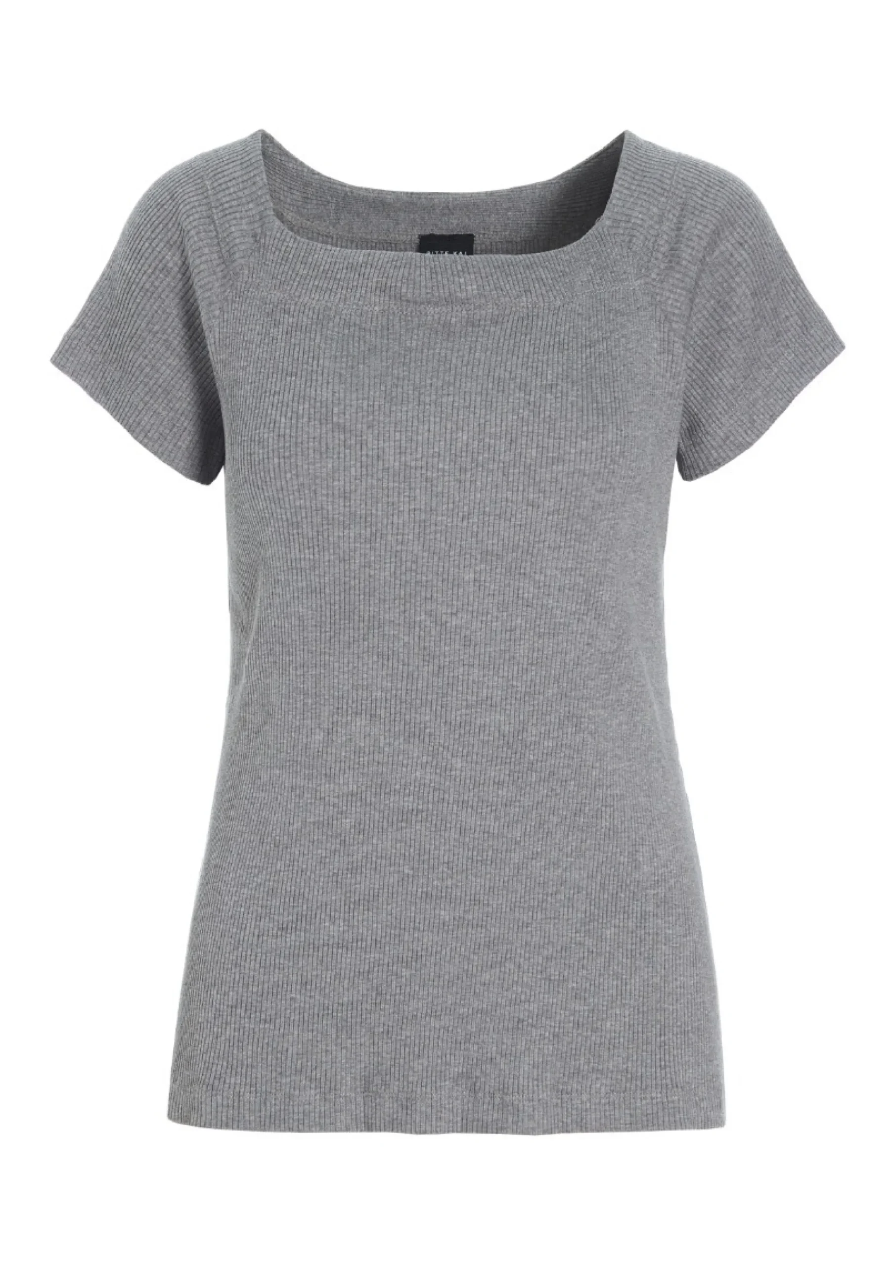 Bluse i blød jersey kvalitet med økologisk bomuld. Materialet er tilsat stretch, hvilket gør blusen blød og behagelig. Blusen har en smuk firkantet halsudskæring, og takket være det enkle, moderate snit, falder den meget klædeligt om kroppen.Modellen på billede er 178 cm og iført str. SFuld længde i str. S, ca. 59 cm.
