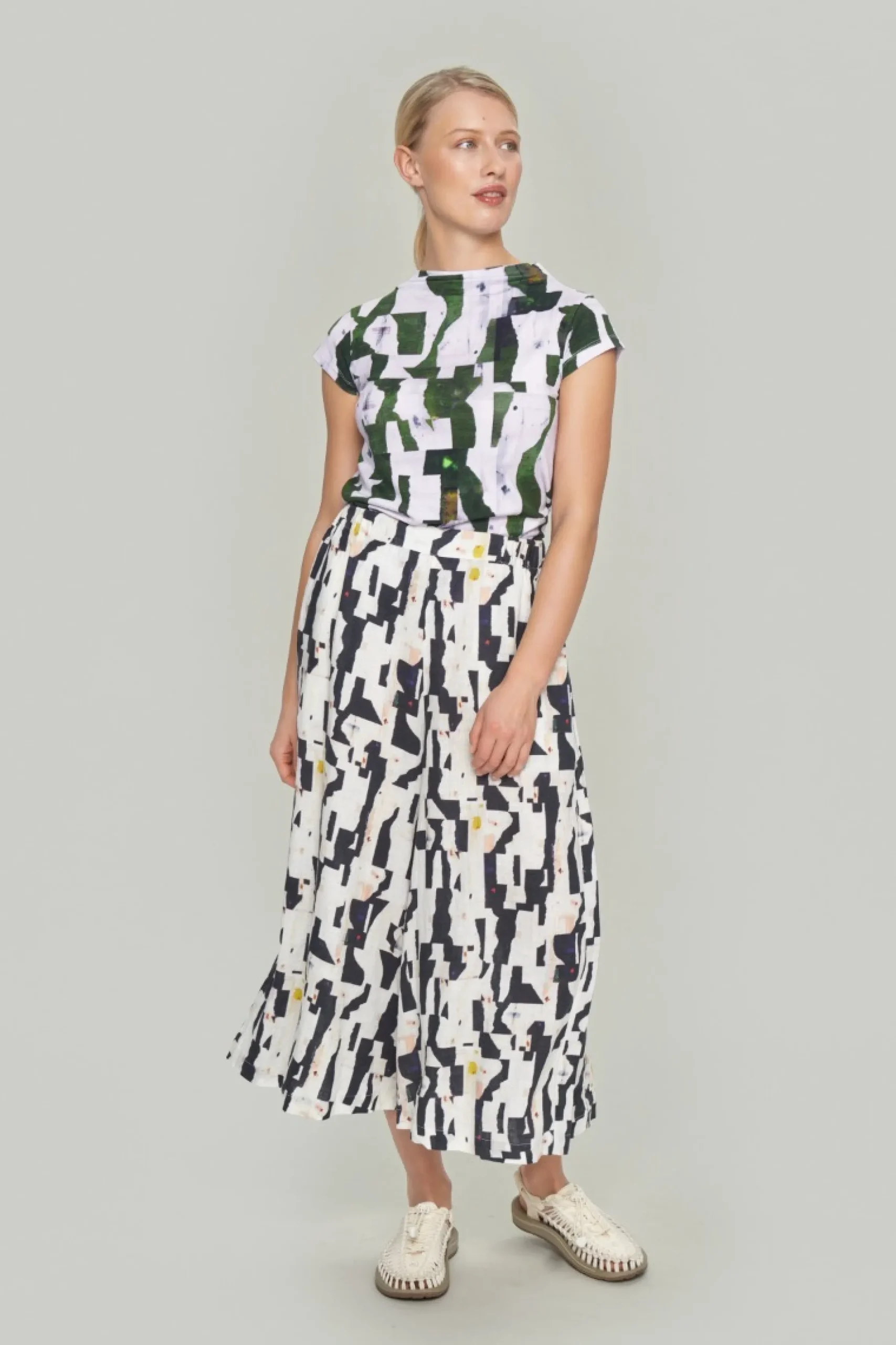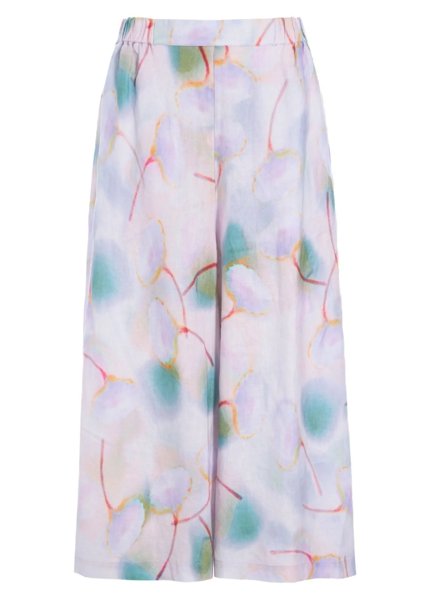 Bukser i en lækker hørkvalitet. De har meget brede ben, sidder flot til i taljen og er ualmindelig klædelige. Det kræver ikke andet end en enkel t-shirt eller en knitrende hvid skjorte, så har du et elegant og tidløst outfit.Modellen på billede er 178 cm og iført str. SLængde målt fra taljen i str. S: ca. 91 cm.