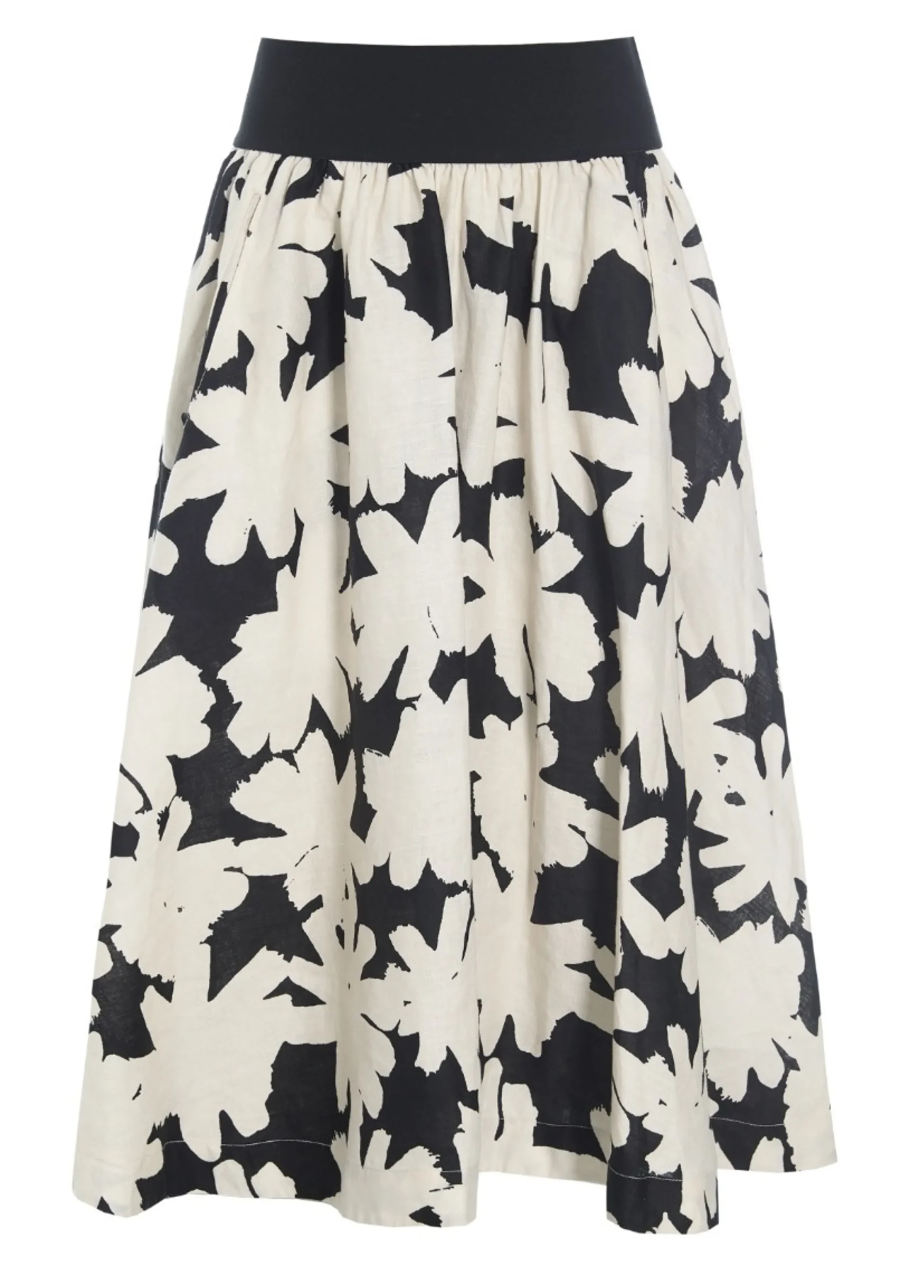 Det fine print gør denne nederdel til noget helt særligt. Den har flot volumen i skørtet, og den brede linning markerer taljen på smukkeste vis. Brug den med en hvid skjorte, en farverig t-shirt eller den matchende Harukaze jakke.Modellen på billede er 178 cm og iført str. SLængde målt fra taljen i str. S: ca. 79 cm.