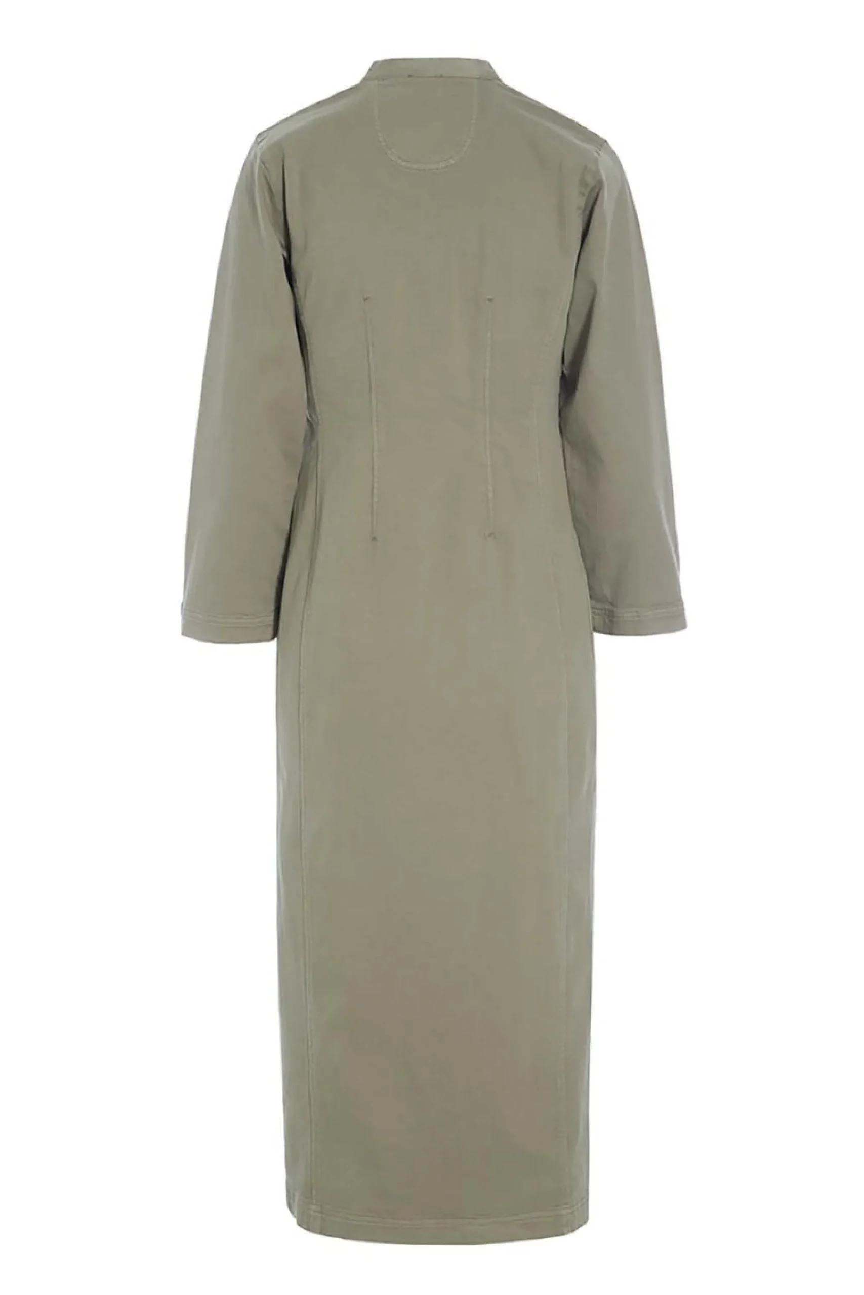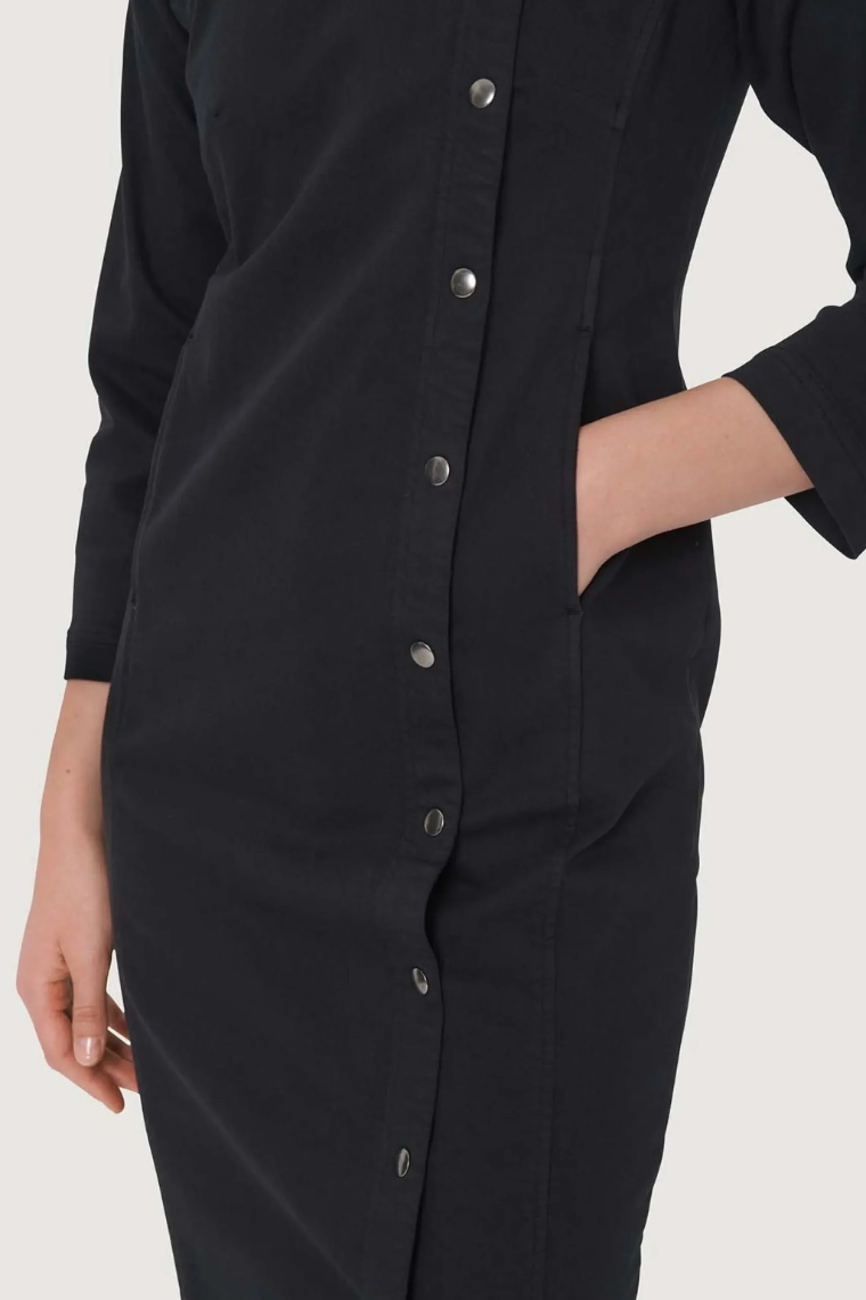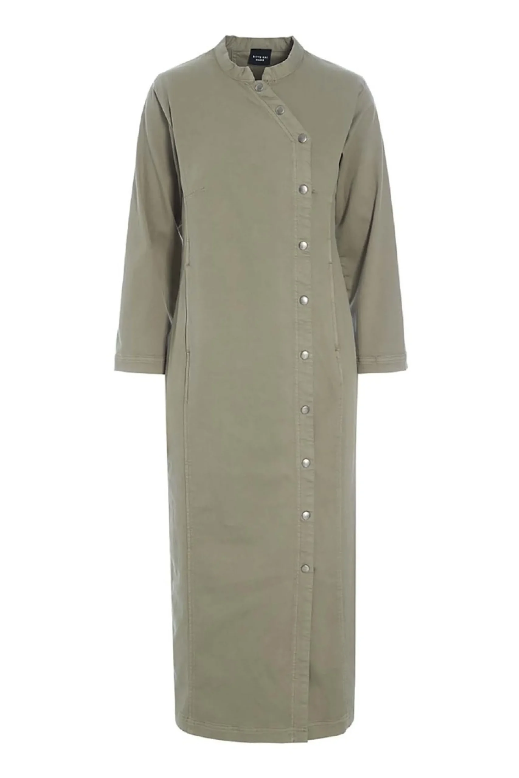 Smuk kjole med kinakrave og asymmetrisk lukning, der giver et tydeligt orientalsk præg. Kjolen har en lang, slank silhuet, og det bløde bomuldsstof er tilsat stretch for god bevægelighed. En tidløs klassiker, som kan bruges både til hverdag og fest.Modellen på billede er 180 cm og iført str. SFuld længde i str. S, ca. 130 cm.