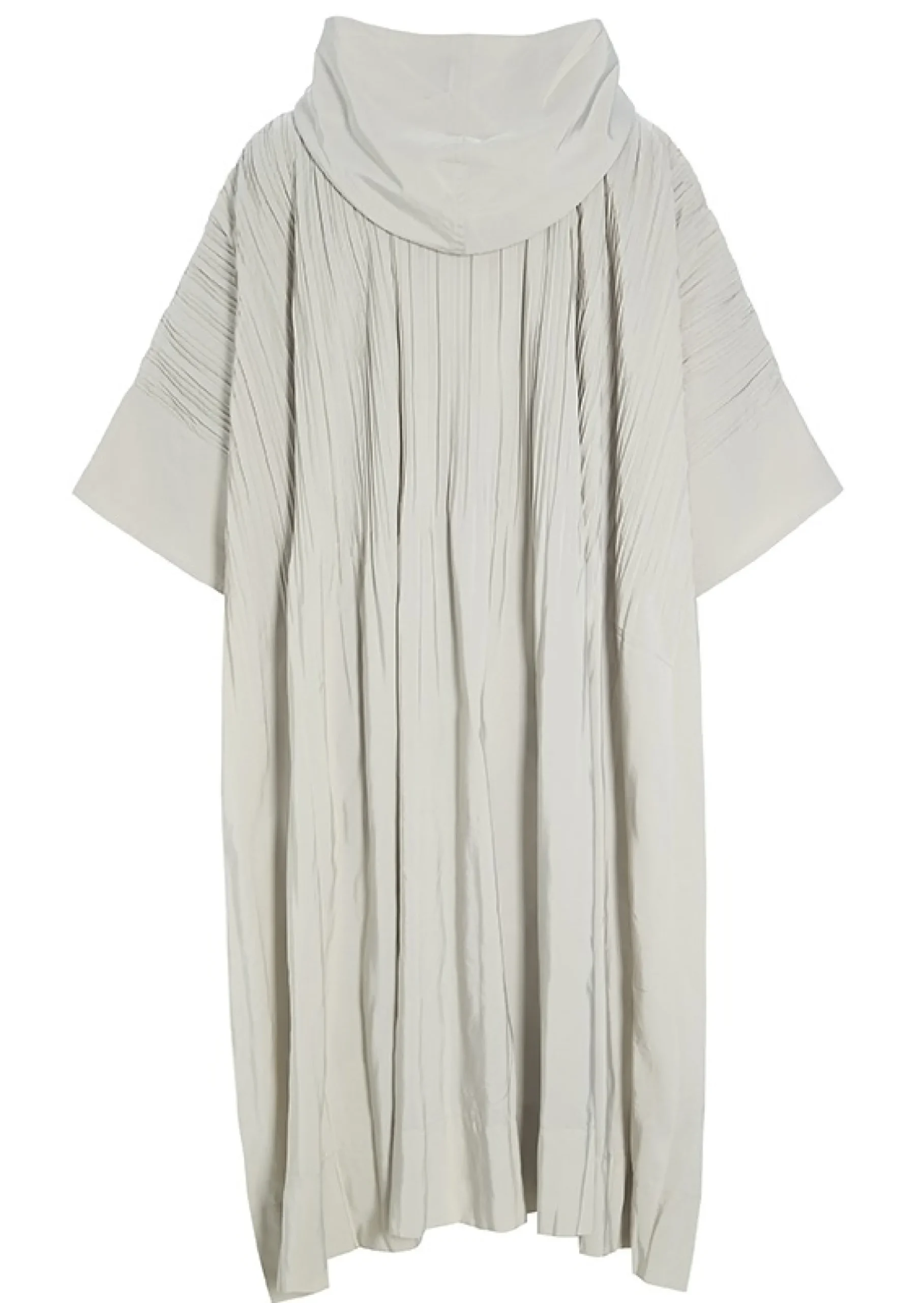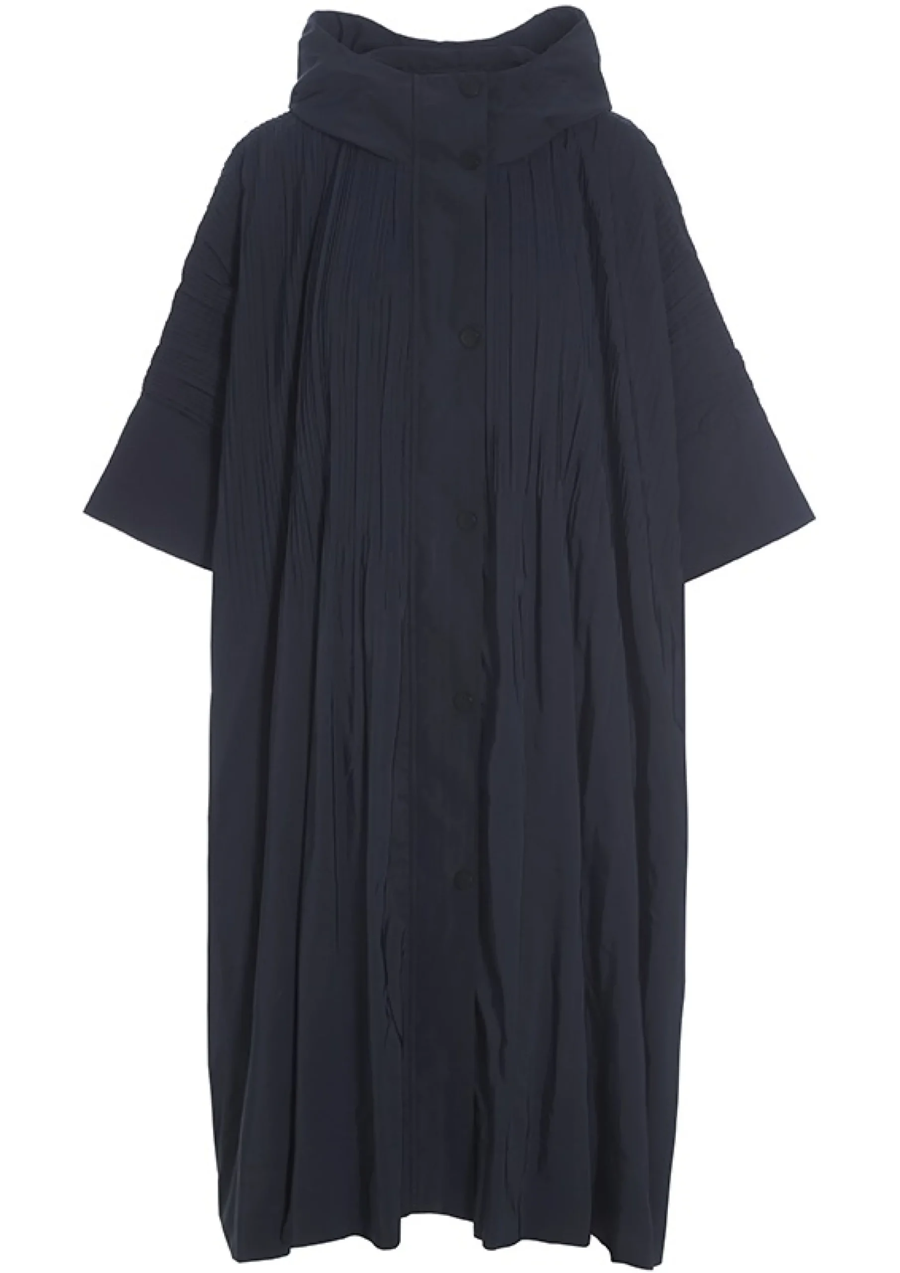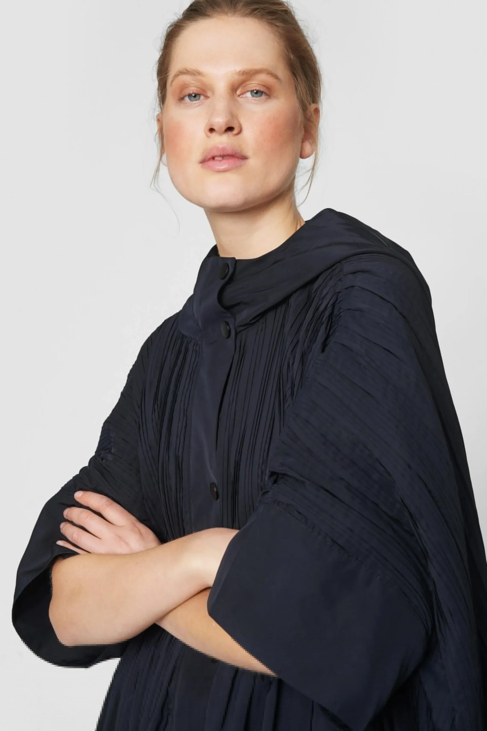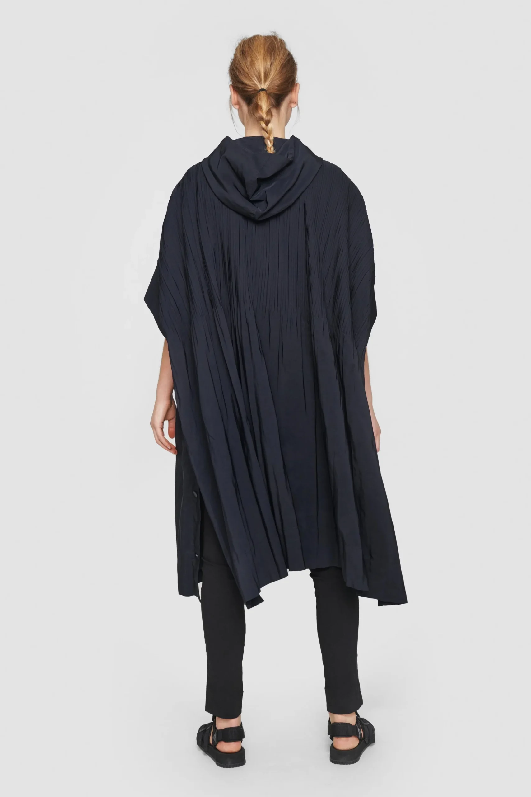 Flot og voluminøs frakke. Snittet er inspireret af en poncho, hvilket giver en oversize facon og et markant udtryk. Stoffet falder smukt takket være den plisserede struktur. En frakke, som er lækker at bruge i overgangsperioden og på kølige forårsdage.Modellen på billede er 181 cm og iført str. ONE SIZEFuld længde i str. ONE SIZE, ca. 110 cm.