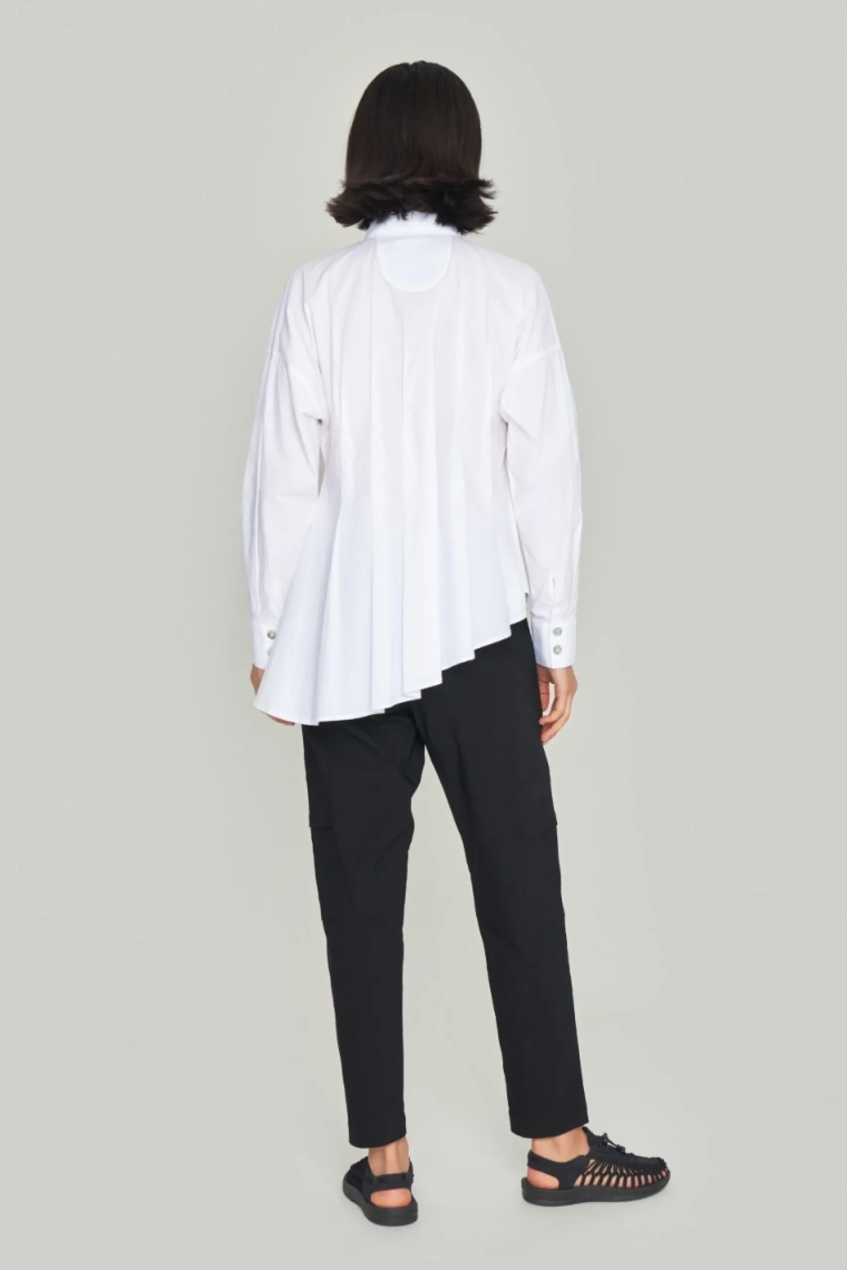 Bukser med rummelig facon og store lommer på benene. De snævrer lidt ind forneden, hvor buksebenet slutter. En meget behagelig buks, der er flot med flade sandaler og t-shirt såvel som med den matchende Magic Stretch jakke og sneakers.Modellen på billede er 178 cm og iført str. SLængde målt fra taljen i str. S: ca. 100 cm.