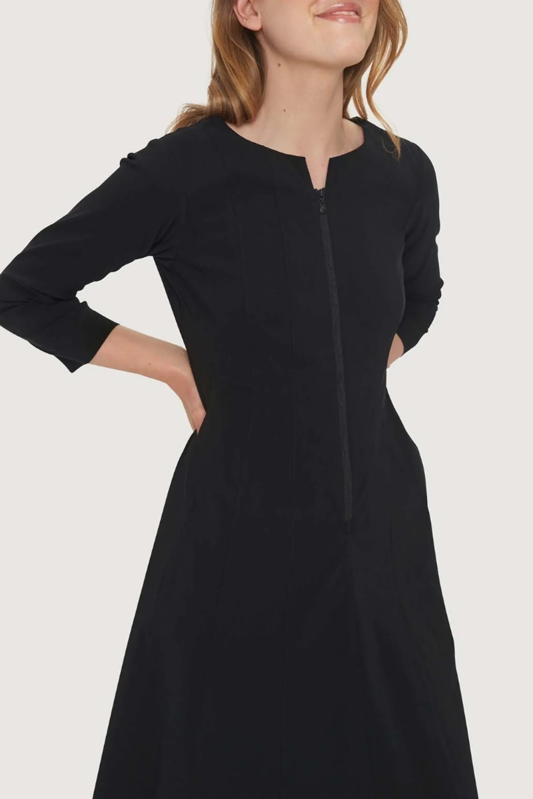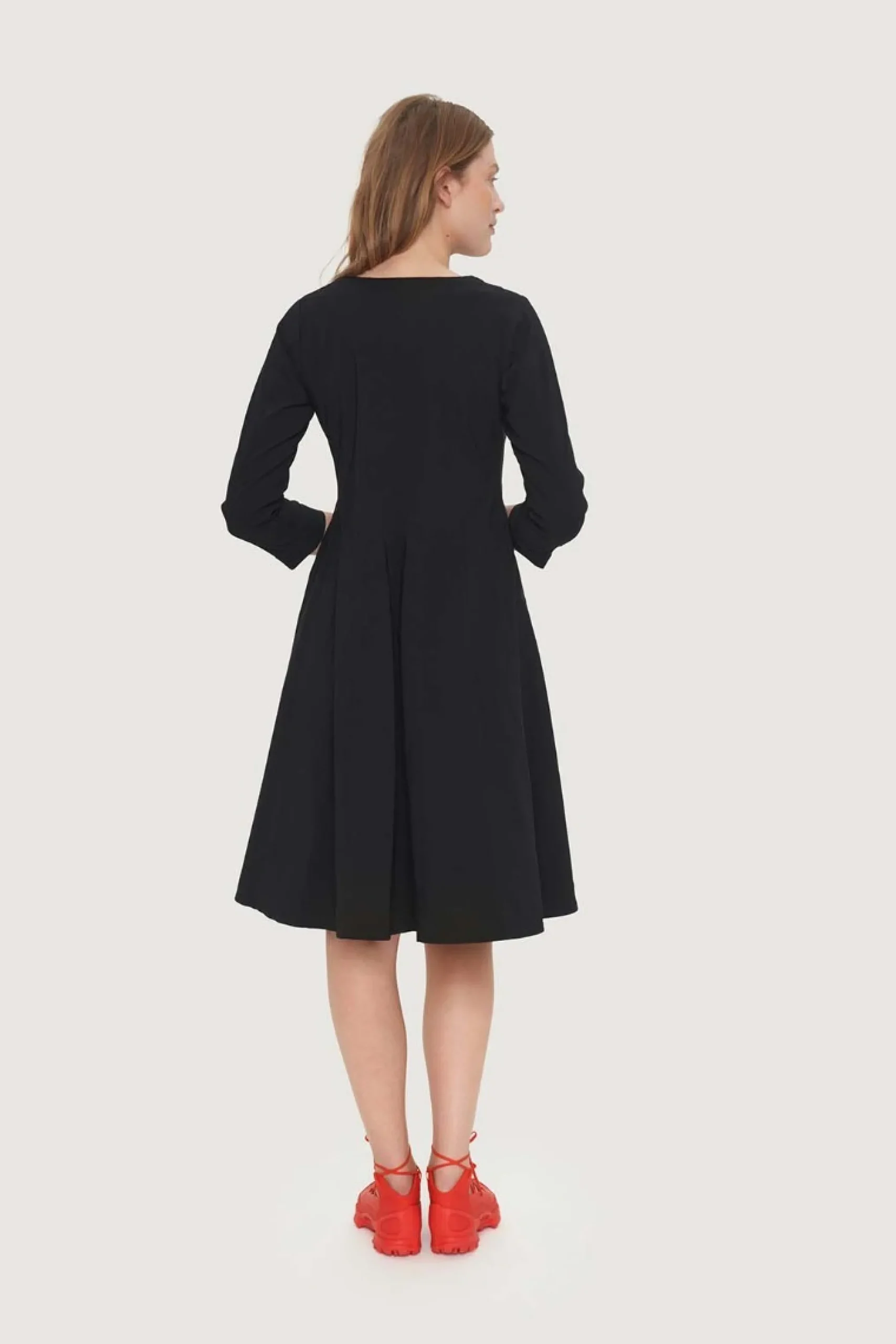 Kjole med et feminint og meget klædeligt snit, der giver en flot silhuet. Taljen er let markeret, og der er god vidde i skørtet. Komforten skal du ikke gå på kompromis med – der er tilsat stretch i stoffet, hvilket giver god bevægelighed. En enkel kjole, som kan bruges til enhver lejlighed.Modellen på billede er 180 cm og iført str. SFuld længde i str. S, ca. 109 cm.