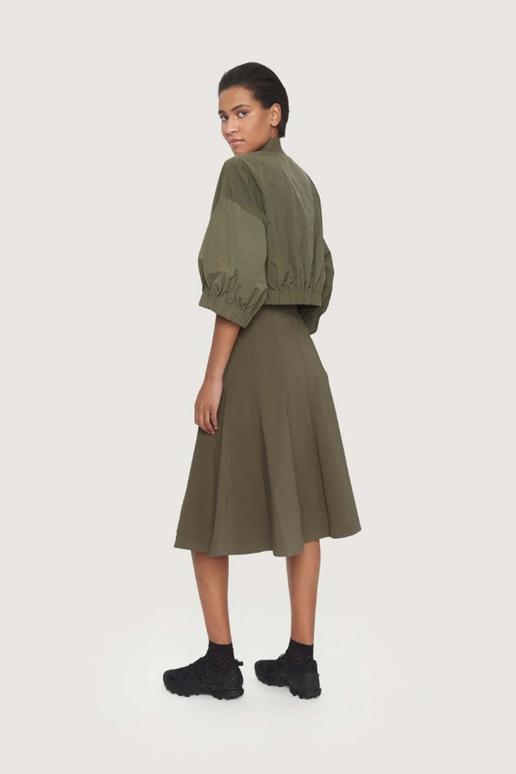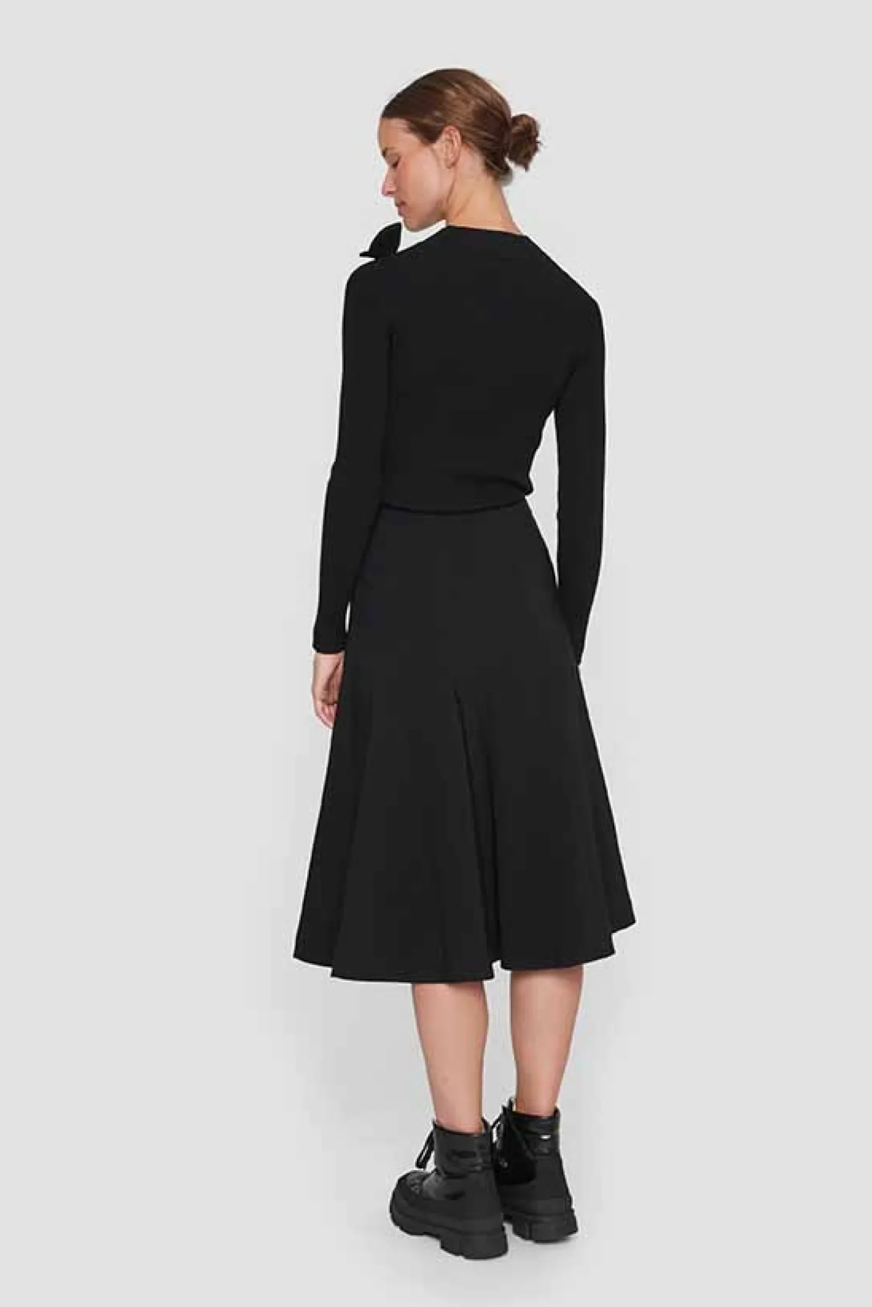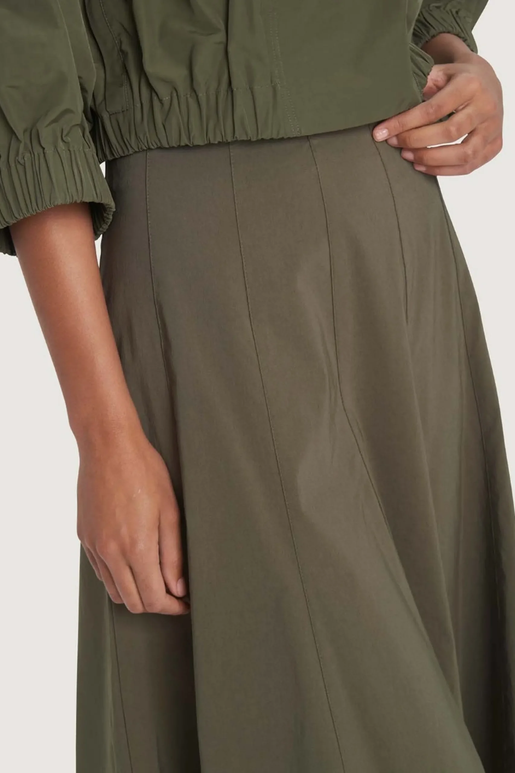 Lang nederdel med et meget klædeligt snit, der giver en flot silhuet. Der er tilsat stretch i stoffet, hvilket giver god bevægelighed. Hvad end du bruger nederdelen til skjorter, t-shirts, pullover eller blazer, så tilfører den stilen et feminint touch.Modellen på billede er 180 cm og iført str. SLængde målt fra taljen i str. S: ca. 74 cm.