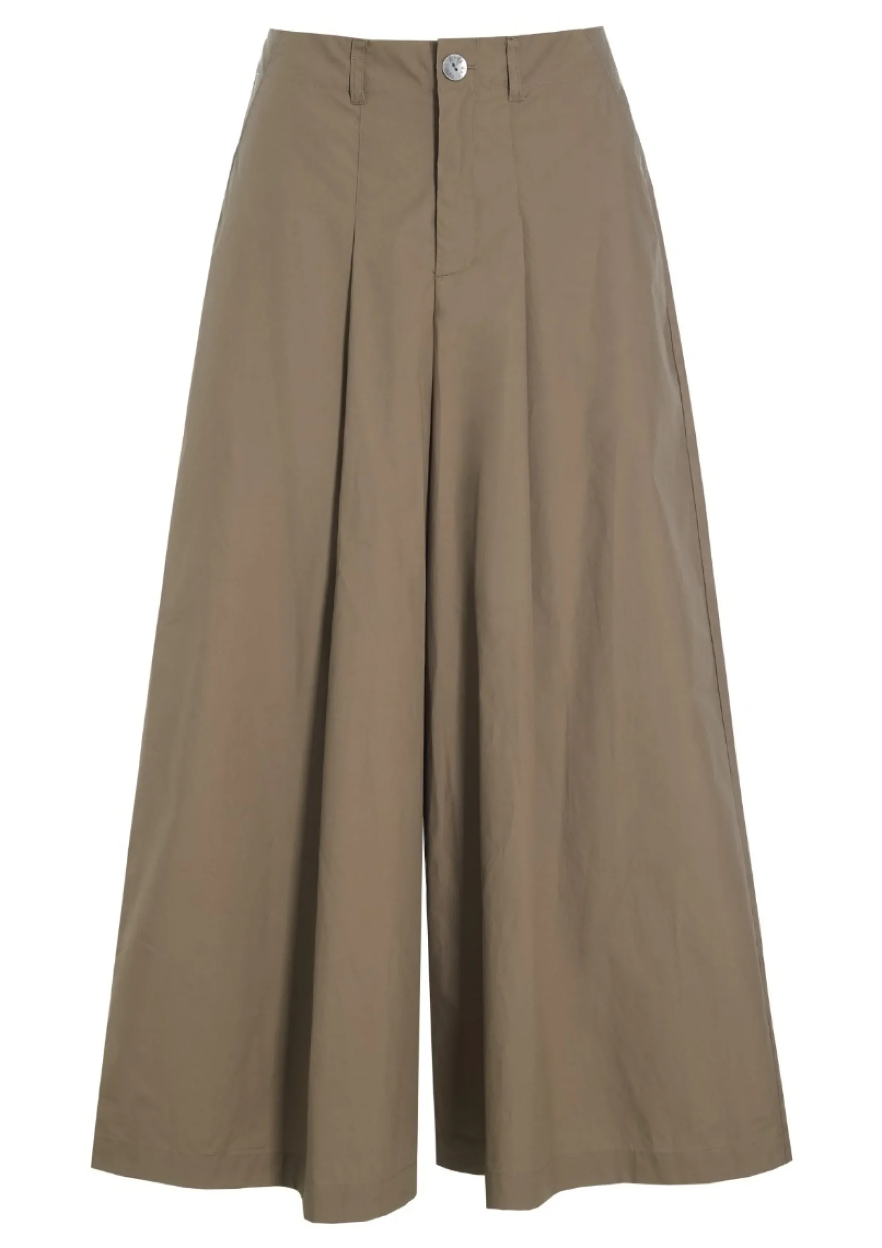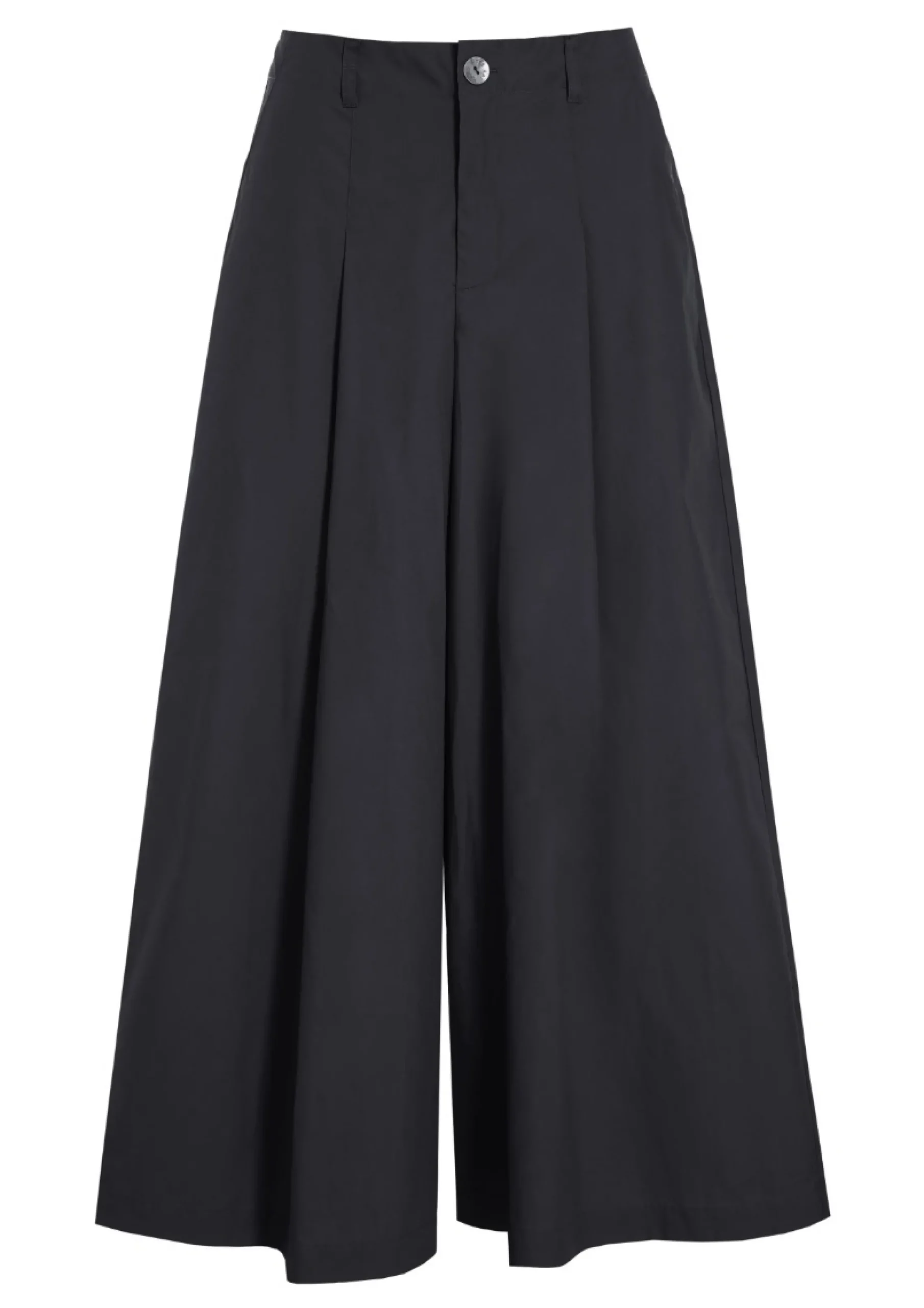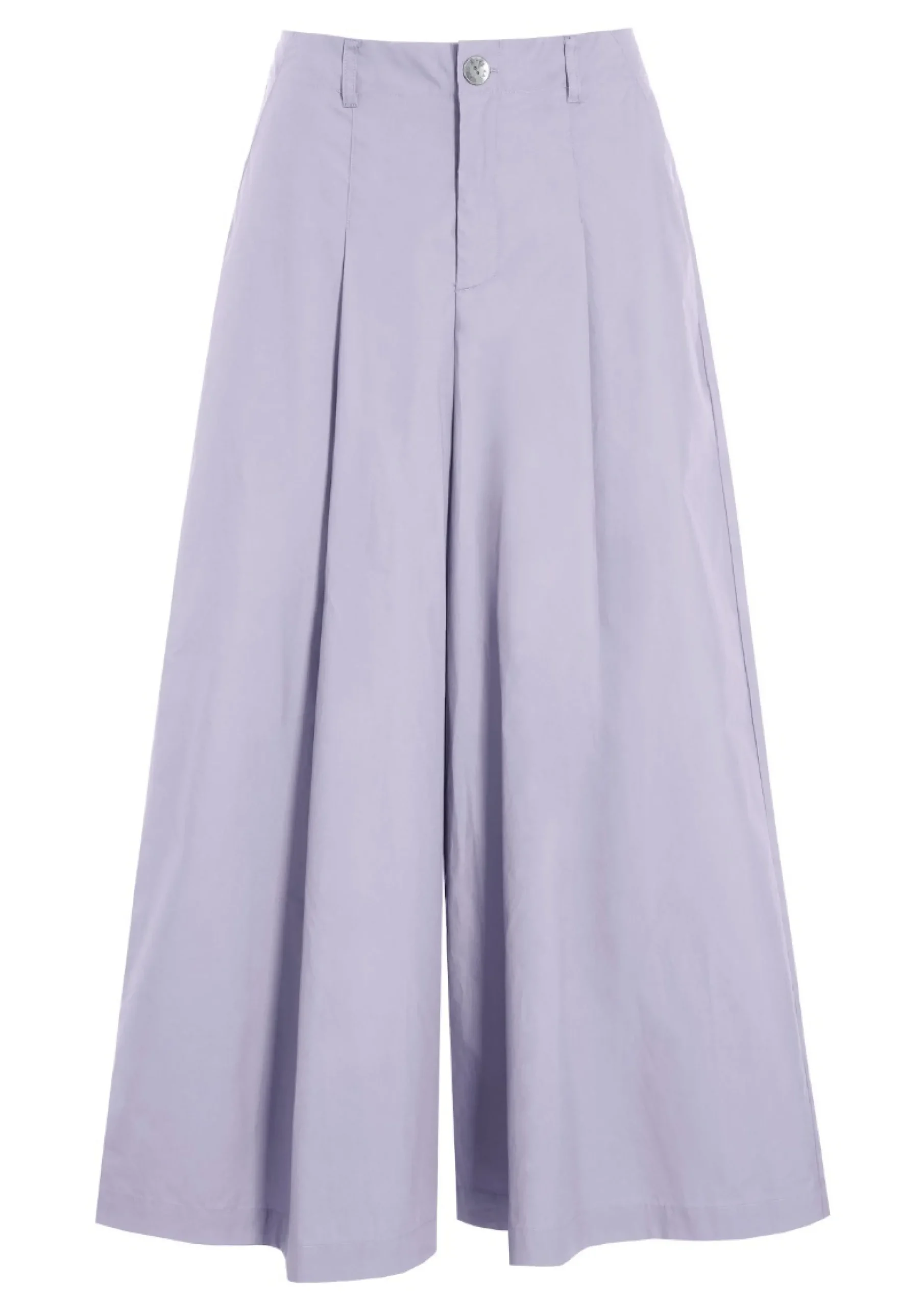 Meget brede bukser i en lækker bomuldskvalitet. Bukserne har læg og sidder flot til i taljen og er ualmindelig klædelige. Det kræver ikke andet end en enkel t-shirt eller en knitrende hvid skjorte, så har du et elegant og tidløst outfit.Modellen på billede er 178 cm og iført str. SLængde målt fra taljen i str. S: ca. 97 cm.
