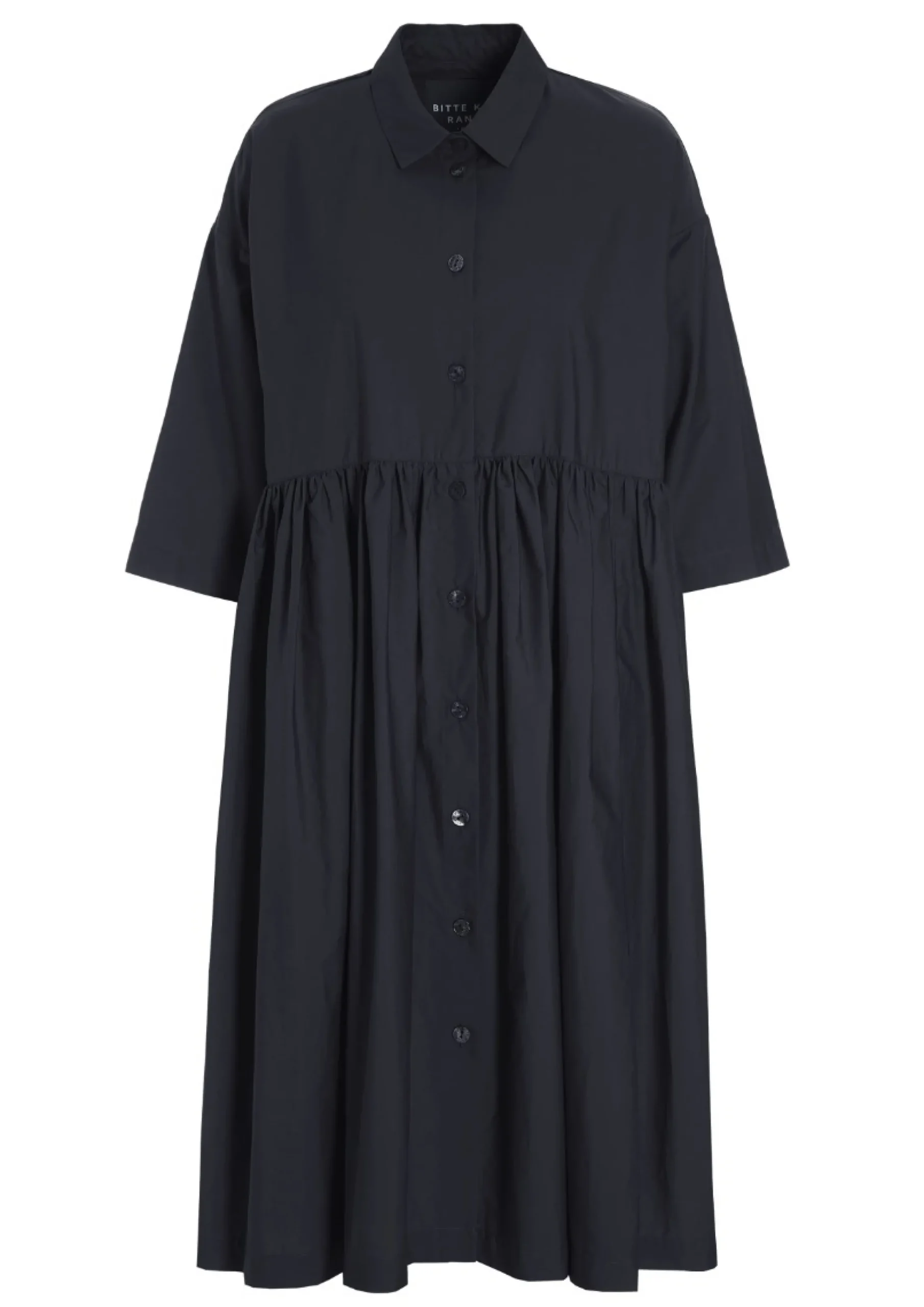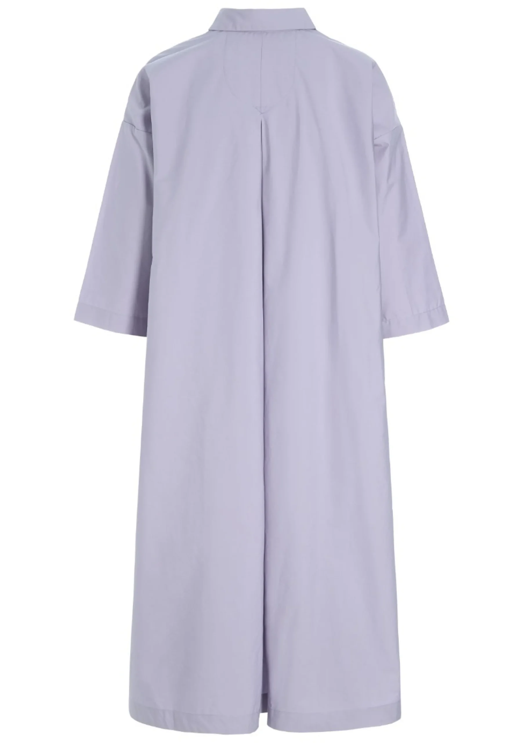 Enkel og anvendelig kjole med god vidde. Den lækre bomuldskvalitet gør kjolen særdeles behagelig at have på. Kjolen kan varieres i det uendelige. Brug den med eller uden blazer, og tilsæt ballerinaer, sandaler eller sneakers.Modellen på billede er 178 cm og iført str. 1Fuld længde i str. 1, ca. 109 cm.