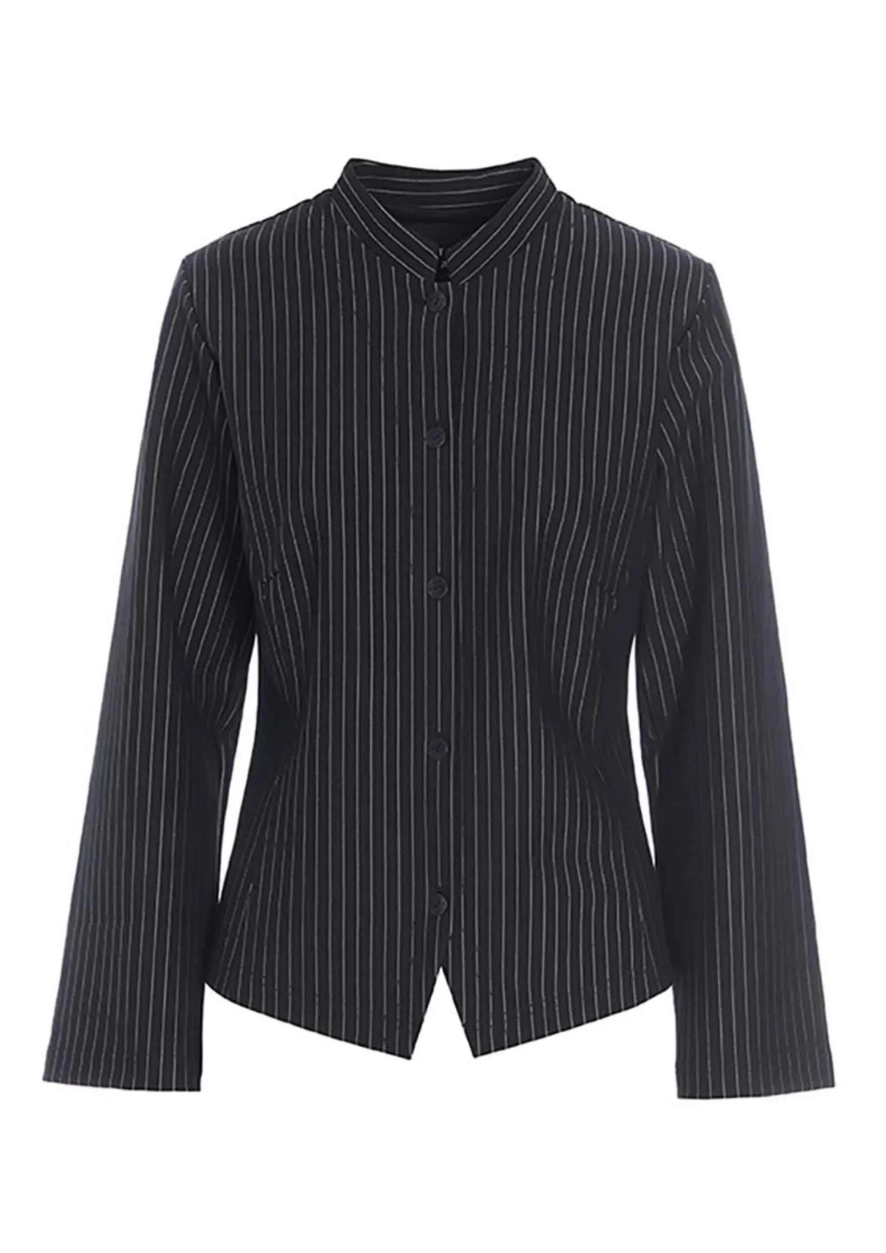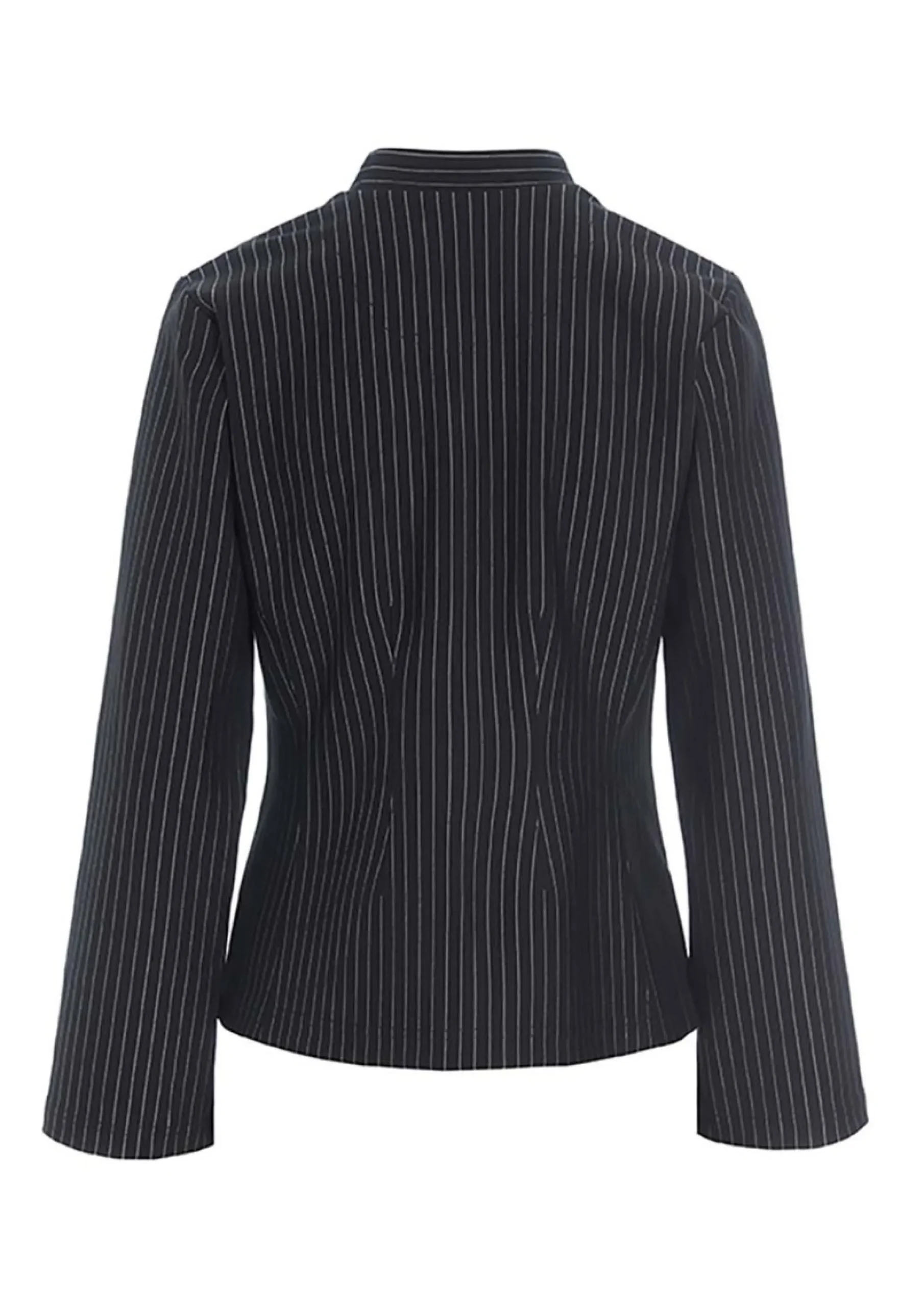 Smuk og superenkel, nålestribet jakke, der forener et klassisk business look med en feminin silhuet. Jakken har en slank, let taljeret silhuet, og stoffet er tilsat stretch for god bevægelighed. En tidløs klassiker.Modellen på billede er 180 cm og iført str. SFuld længde i str. S, ca. 64 cm.