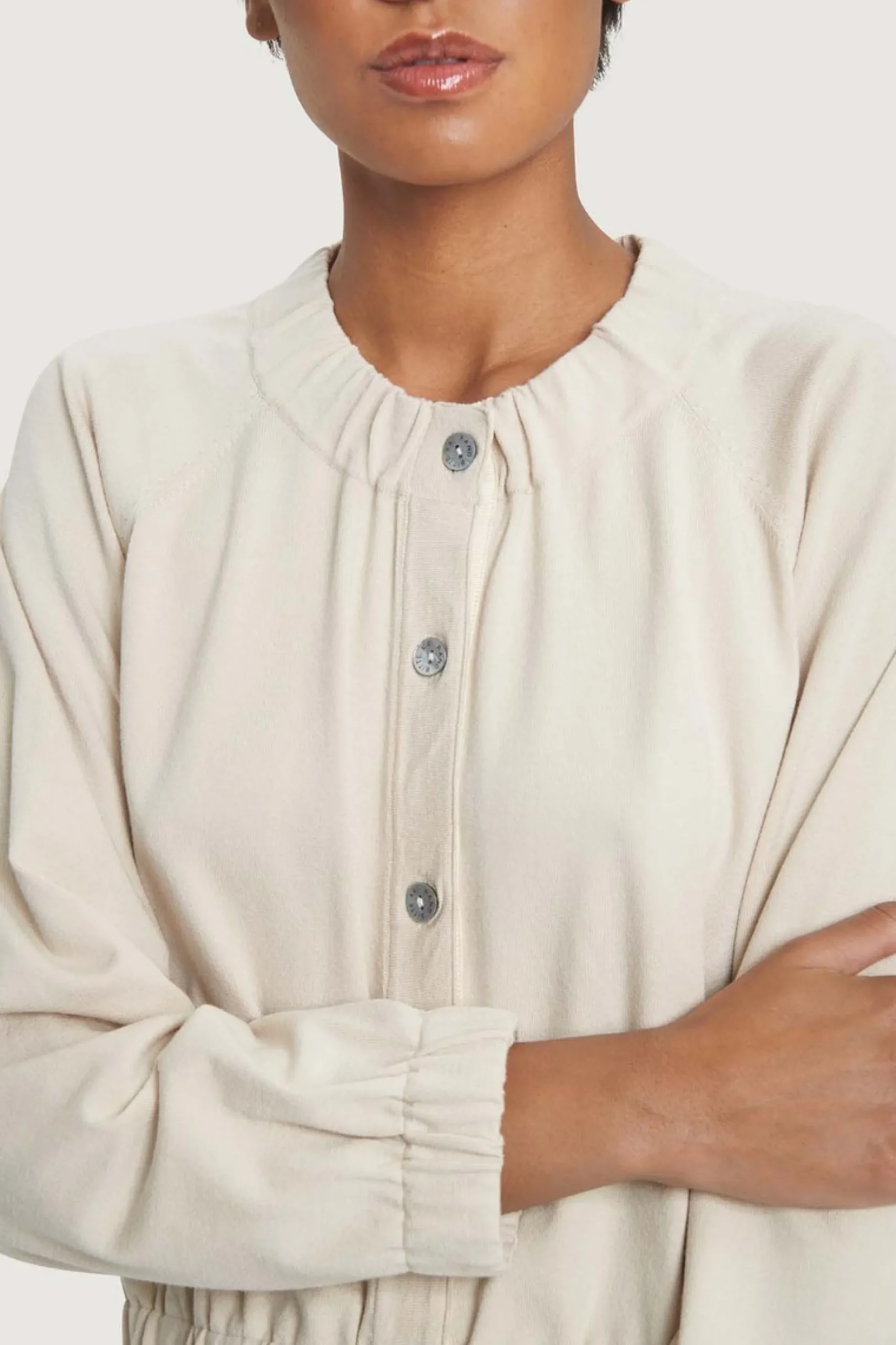 Kort finstrikket cardigan, der næsten ser ud som en lille jakke takket være den fine, elastiske rynkeeffekt ved ærmer, halsudskæring og forneden på kroppen. Cardiganen er blød og lækker og så tilpas enkel i sit udtryk, at den kan kombineres med alle underdele. En ægte klassiker.Modellen på billede er 180 cm og iført str. SFuld længde i str. S, ca. 49 cm.