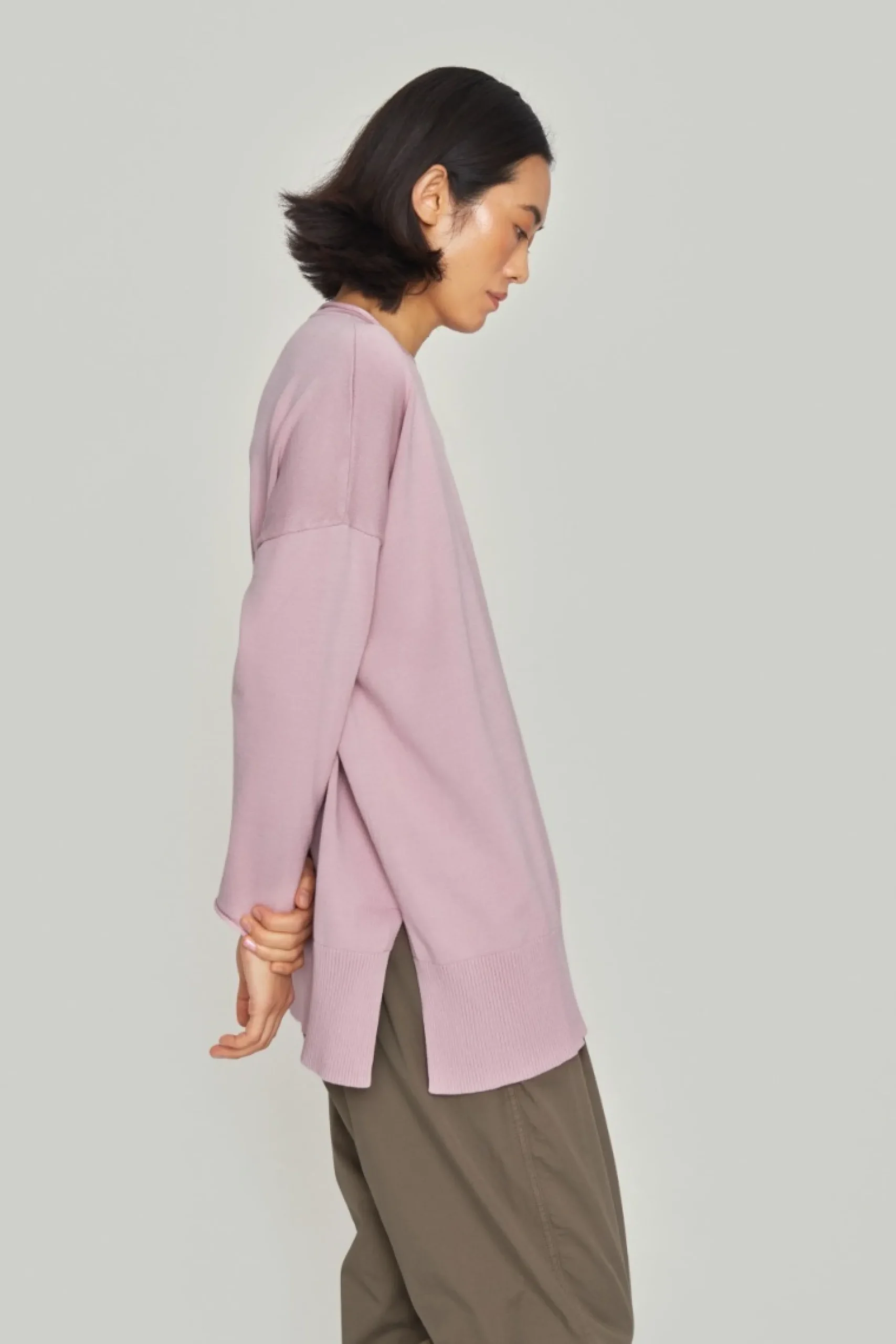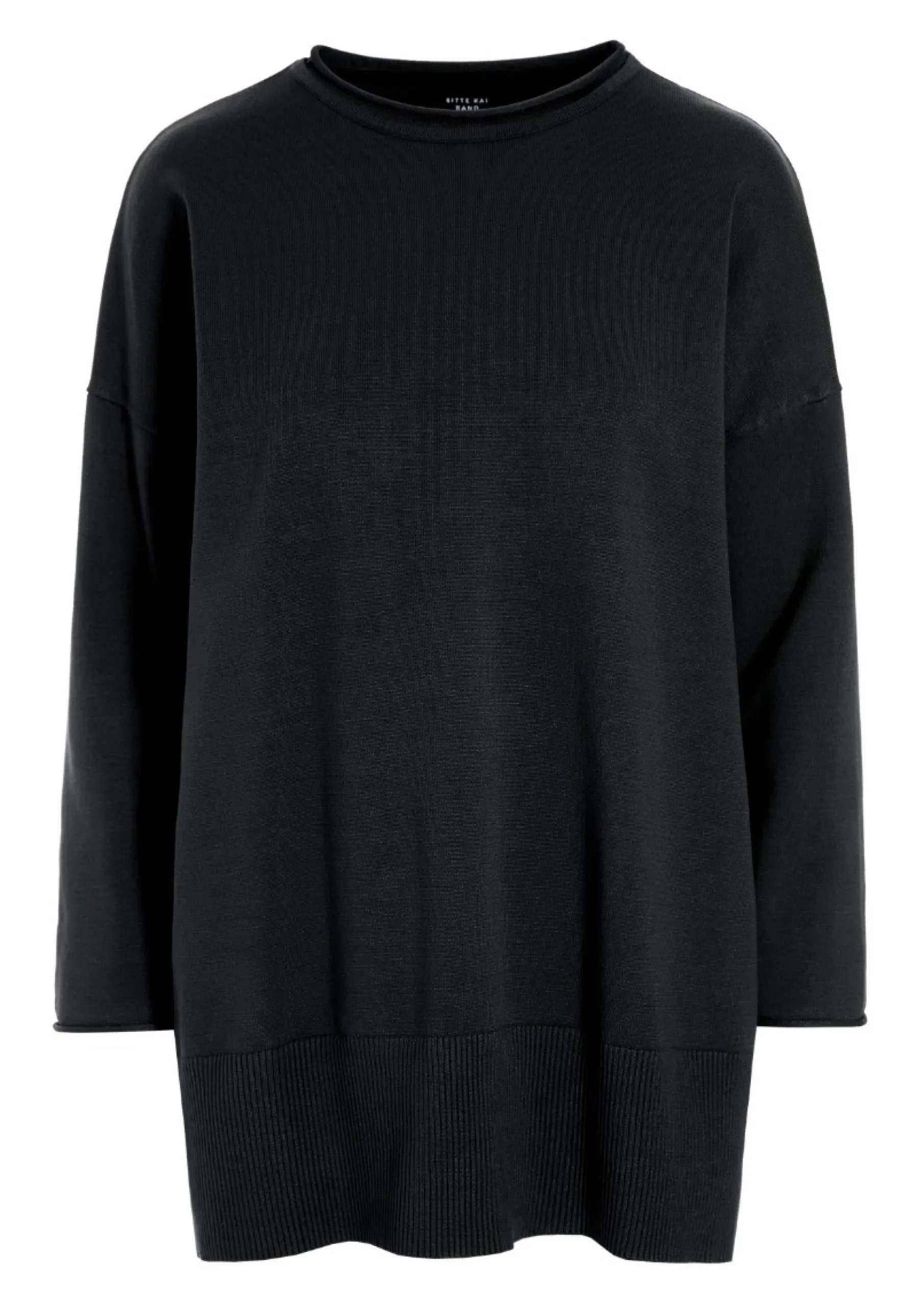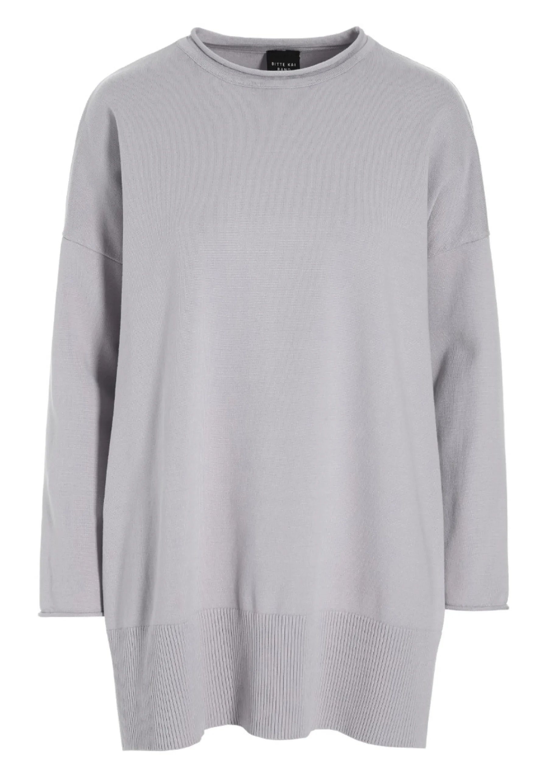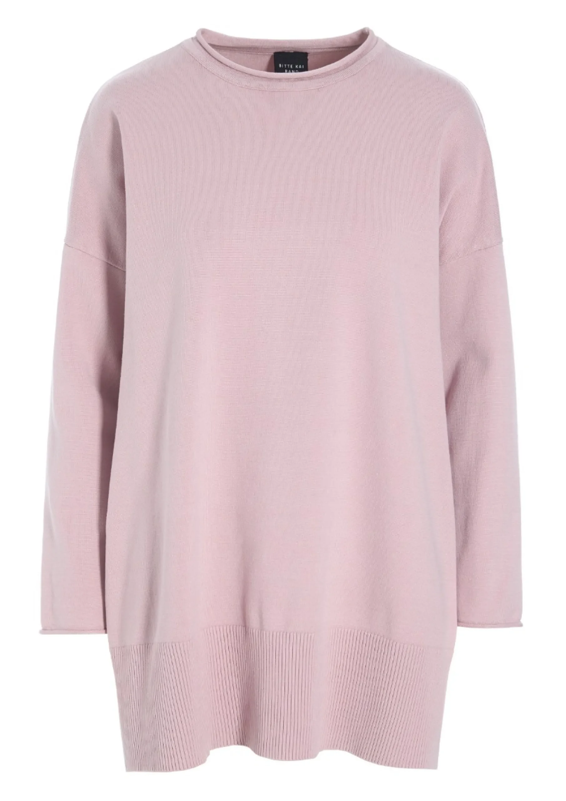 Strikbluse med rummelig pasform og god længde. Halsen ruller lidt, og det giver blusen et blødt og behageligt udtryk. Brug blusen med enhver underdel.Modellen på billede er 178 cm og iført str. SFuld længde i str. S, ca. 74 cm.