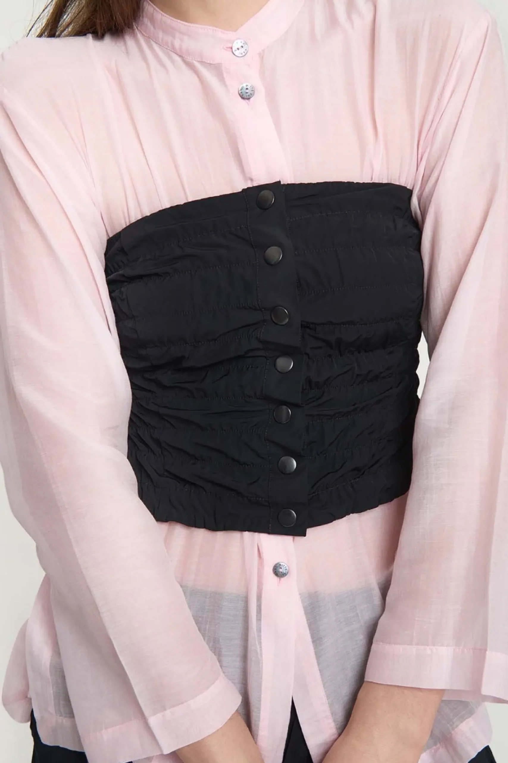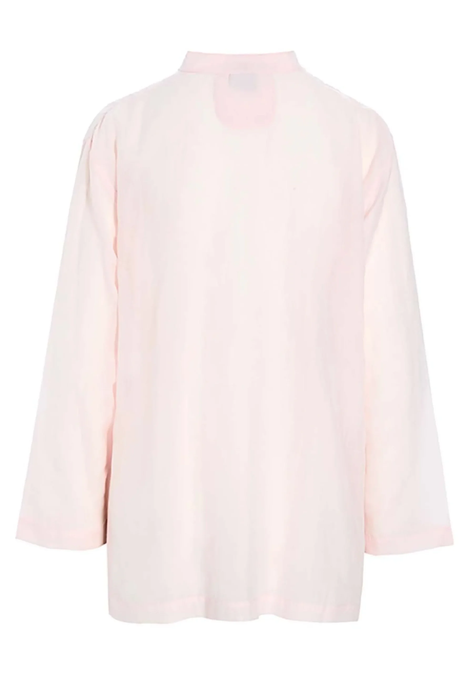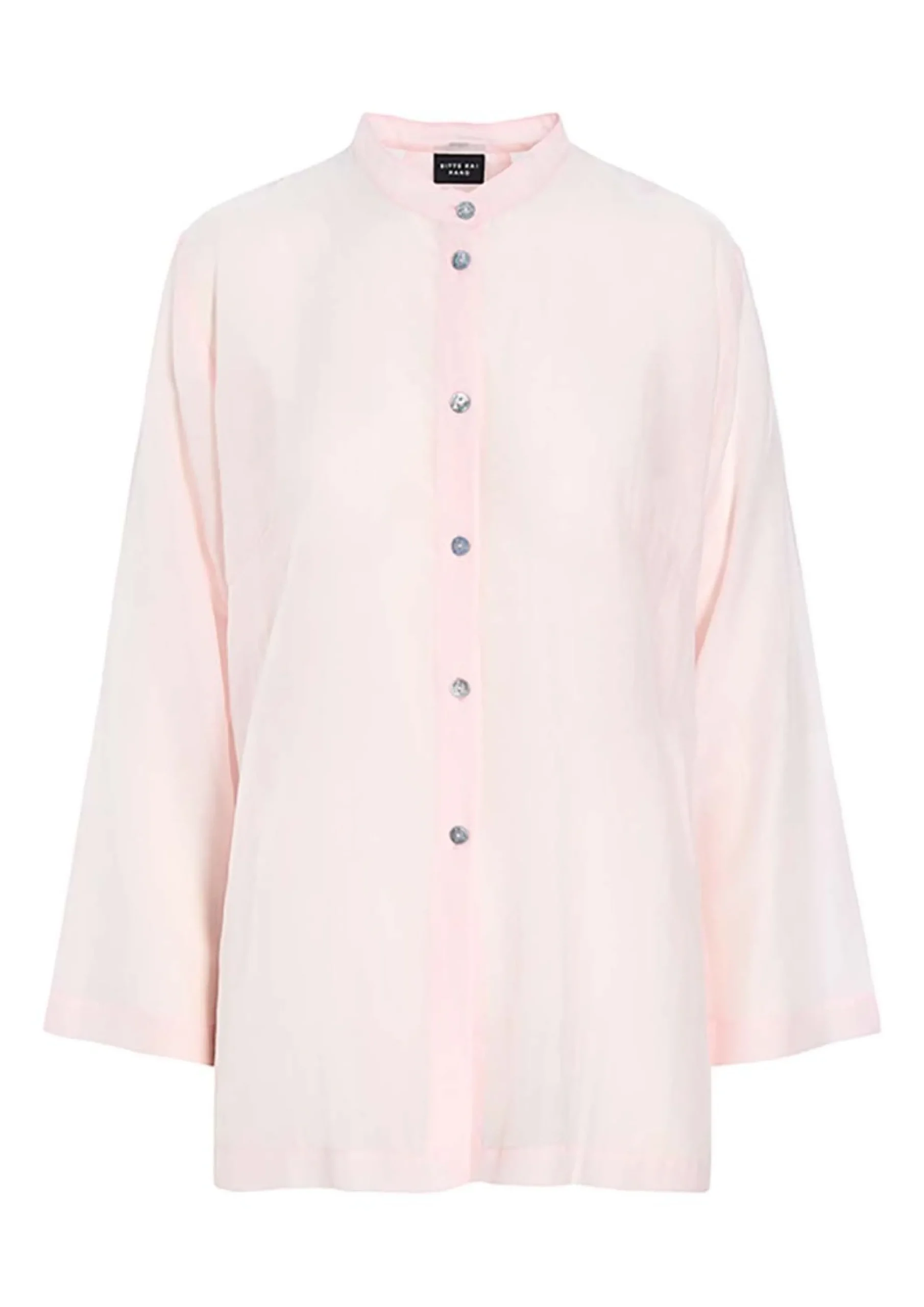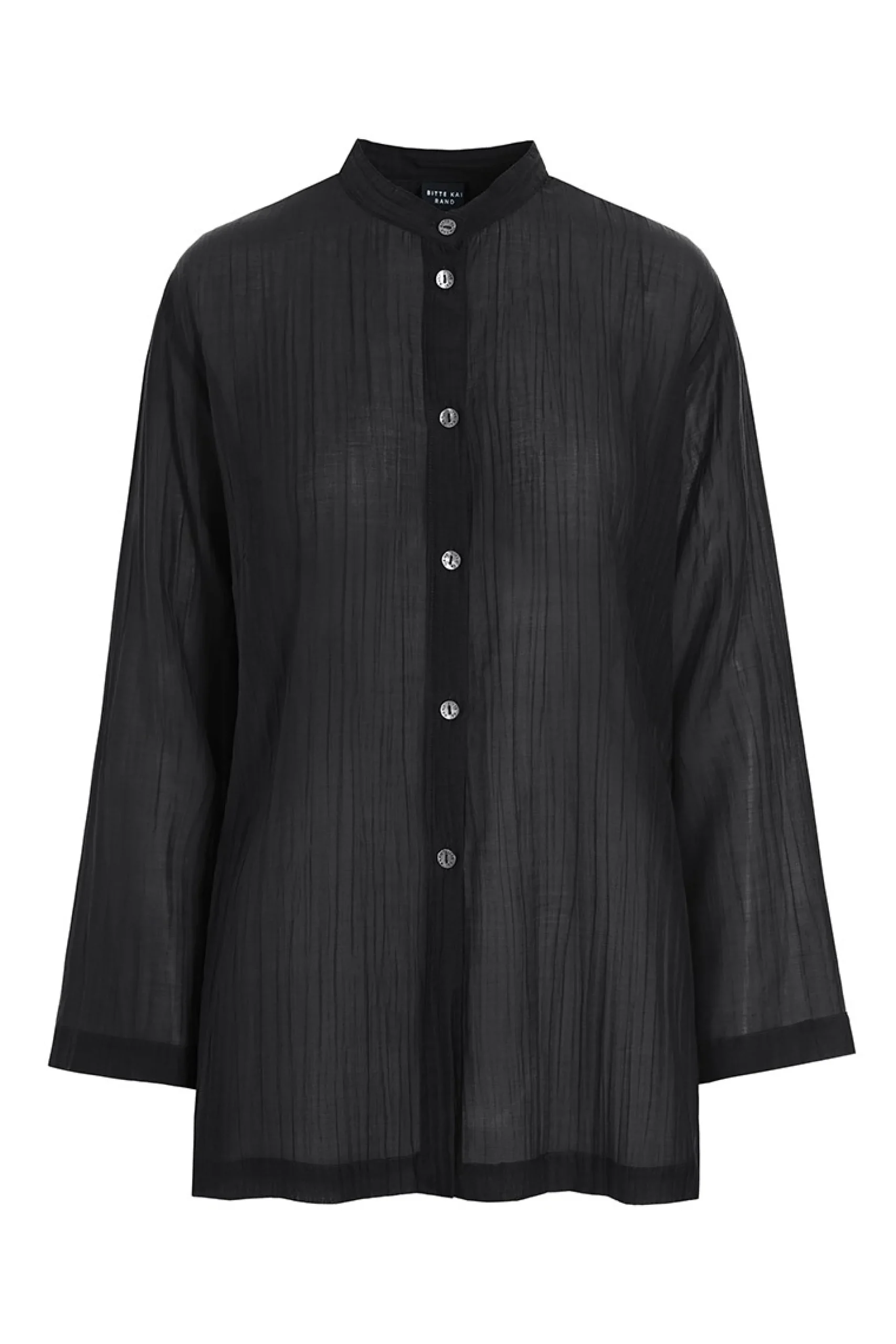 Lang skjorte i en lækker silke- og bomuldskvalitet. Skjorten er florlet og transparent. Designet er klassisk, og det er en skjorte, som er oplagt at bruge med en top under eller en corsage over til et lag-på-lag-look.Modellen på billede er 180 cm og iført str. SFuld længde i str. S, ca. 74 cm.