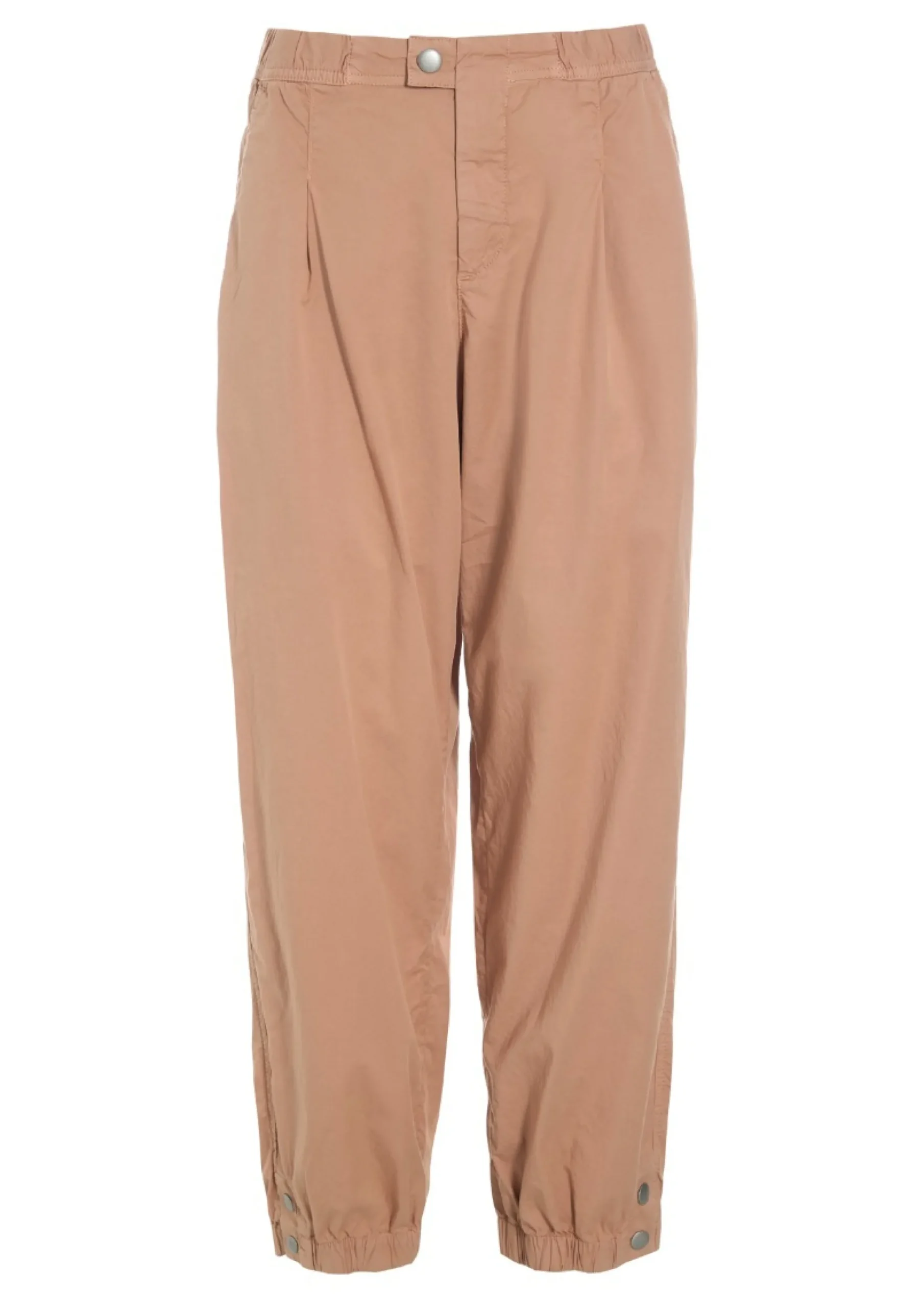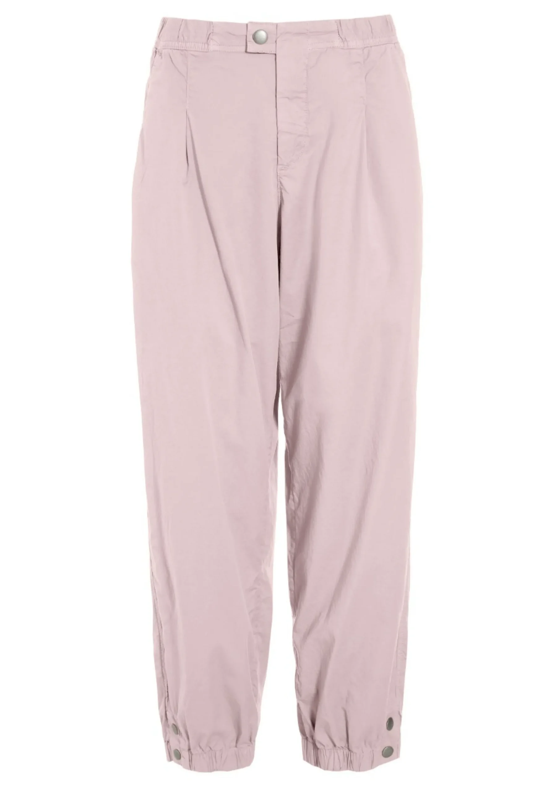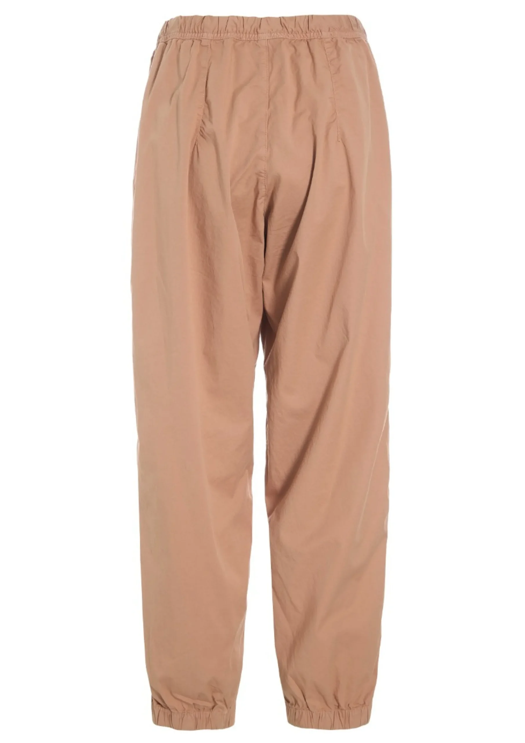 Bukser med elastisk rynkeeffekt ved anklerne, hvilket skaber en afslappet silhuet. Bukserne er i en lækker bomuldskvalitet, som gør dem yderst behagelige at have på. Sætter du en enkel t-shirt og et par ballerinasko eller sandaler til, har du et elegant og klædeligt outfit.Modellen på billede er 178 cm og iført str. SLængde målt fra taljen i str. S: ca. 99 cm.
