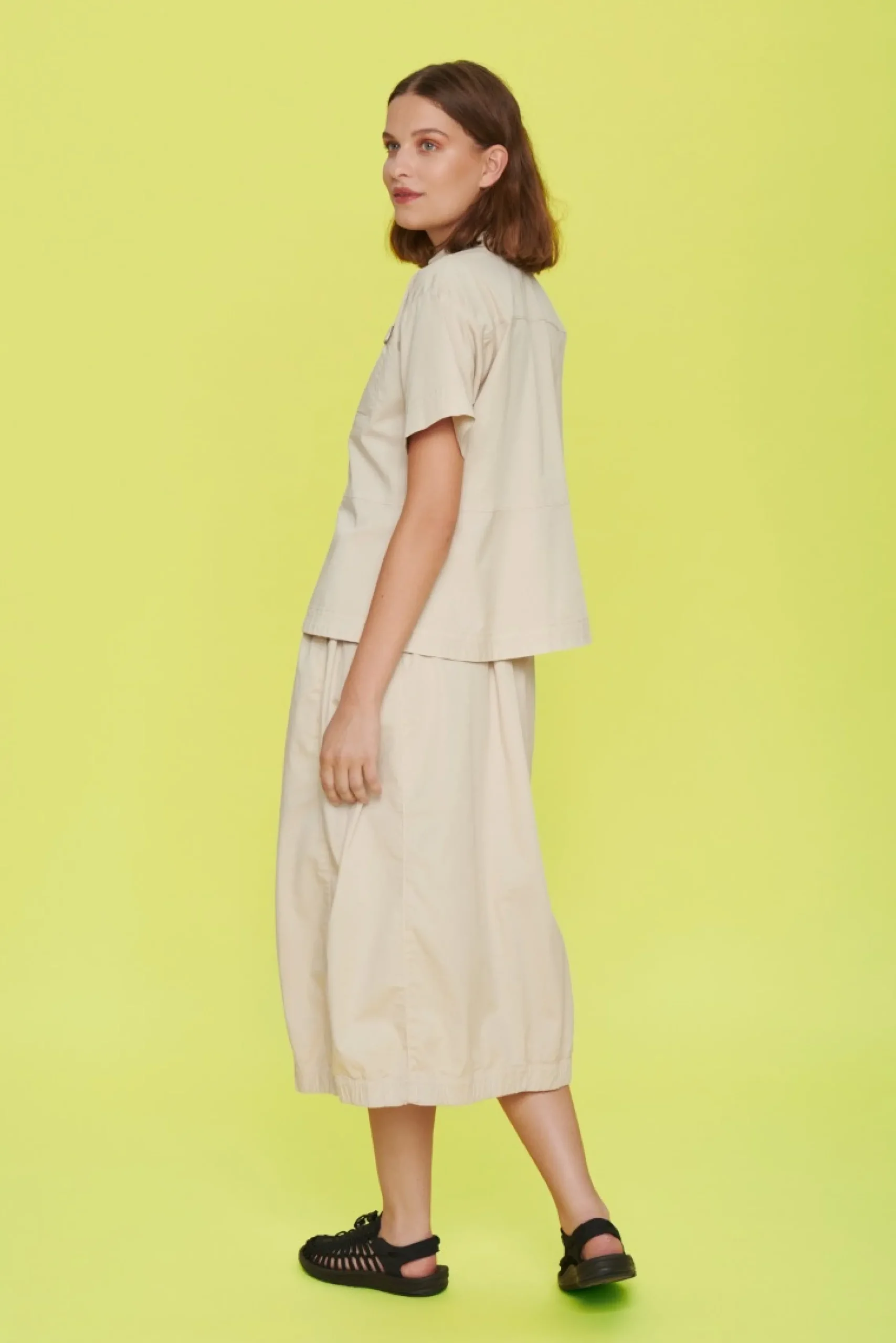 Nederdel med elastik både i linningen og forneden, hvilket skaber en flatterende tulipanform. Brug nederdelen til en enkel t-shirt eller top. Eller kombiner den med den matchende Senmei jakke, og du har et tidløst og klædeligt sæt.Modellen på billede er 178 cm og iført str. SLængde målt fra taljen i str. S: ca. 77 cm.
