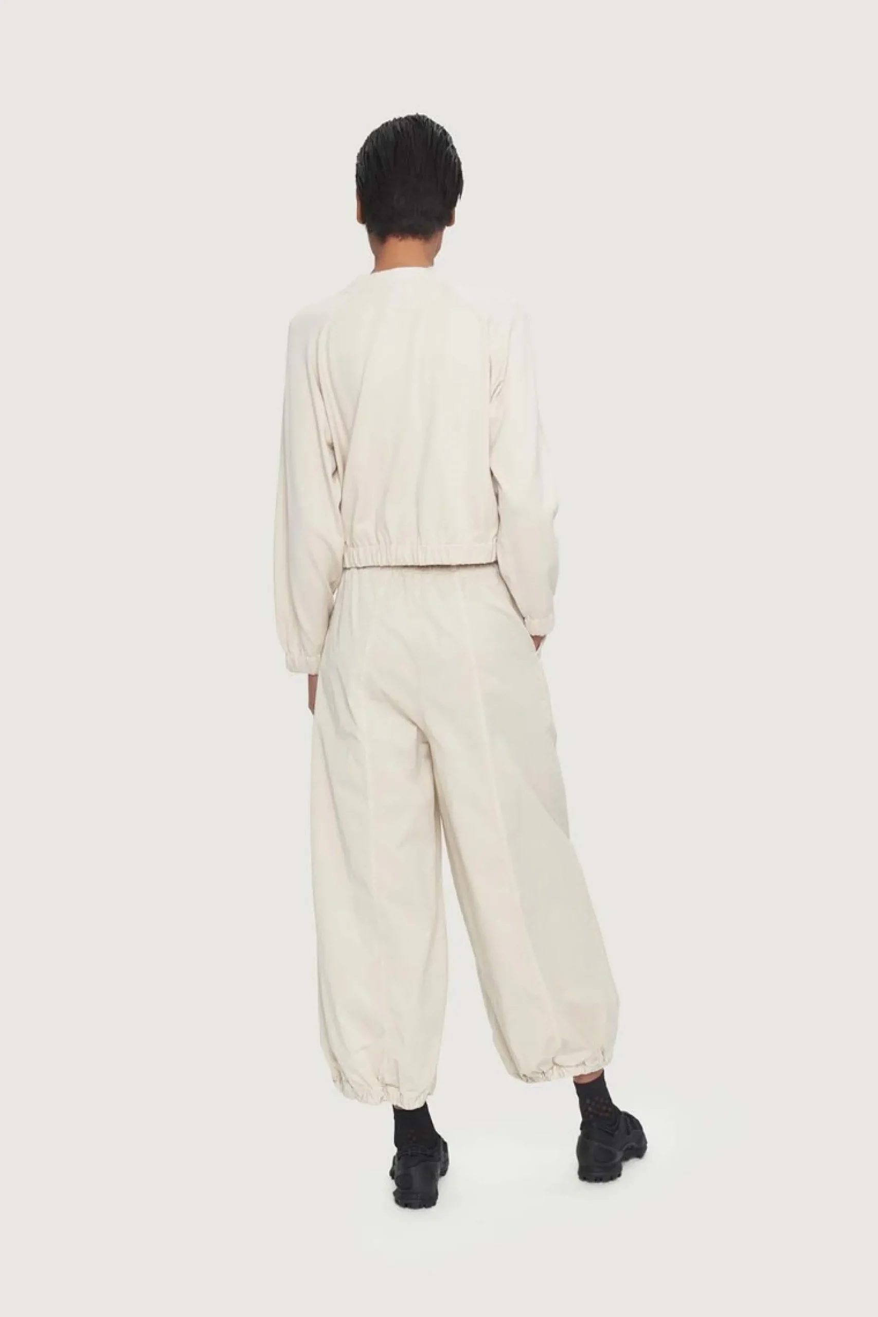 Udover at være meget behagelige at have på så er disse bukser særdeles klædelige. De sidder godt og giver et cool og casual udtryk. Bukserne kan sættes til alt lige fra rullekravebluse og skjorte til sweater. Kombinerer du bukserne med den asymmetriske Wabi-jakke, får du et lækkert suite.Modellen på billede er 180 cm og iført str. SLængde målt fra taljen i str. S: ca. 99 cm.