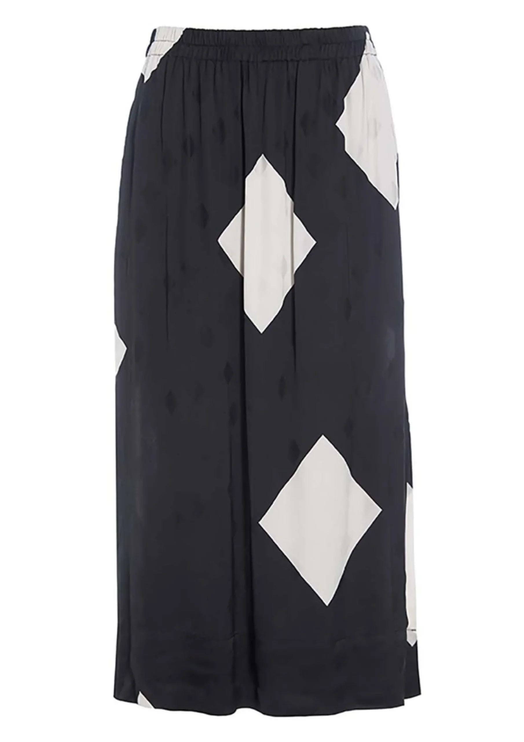 Nederdel i en lækker, luftig, FSC-certificeret viskosekvalitet, der falder smukt. Der er en høj slids i den ene side af nederdelen. Og ellers er det fine mønster i fokus. En klædelig nederdel, som kan bruges til fx t-shirt, skjorte eller sweater. Sætter du den til den matchende Yukoku jakke, får du et elegant sæt.Modellen på billede er 180 cm og iført str. SLængde målt fra taljen i str. S: ca. 84 cm.