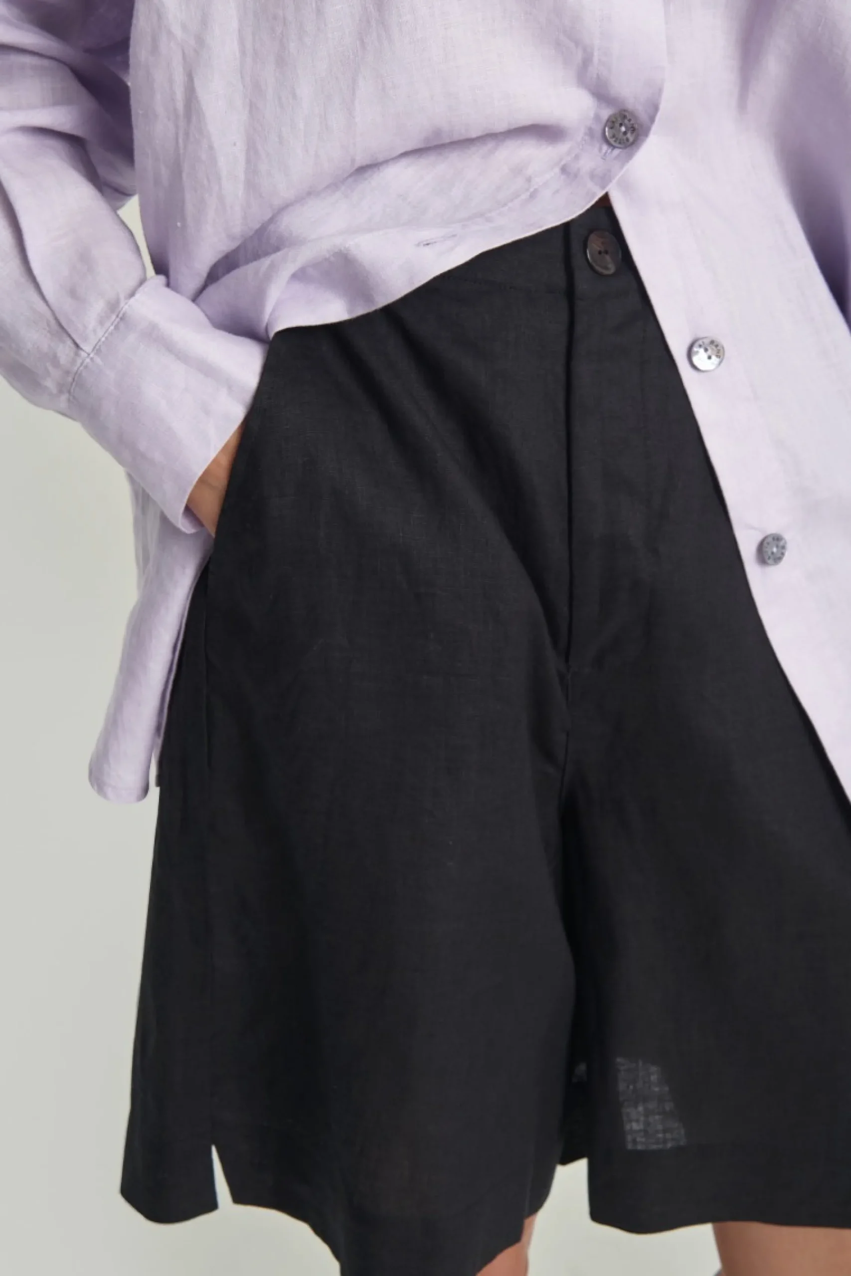 Shorts i en lækker hørkvalitet, som vil være et godt basiselement i enhver garderobe. De har en lille slids i siden og elastisk talje. De kan bruges til alle overdele – og med den matchende Airy Linen skjorte får du et elegant sæt.Modellen på billede er 178 cm og iført str. SLængde målt fra taljen i str. S: ca. 54 cm.