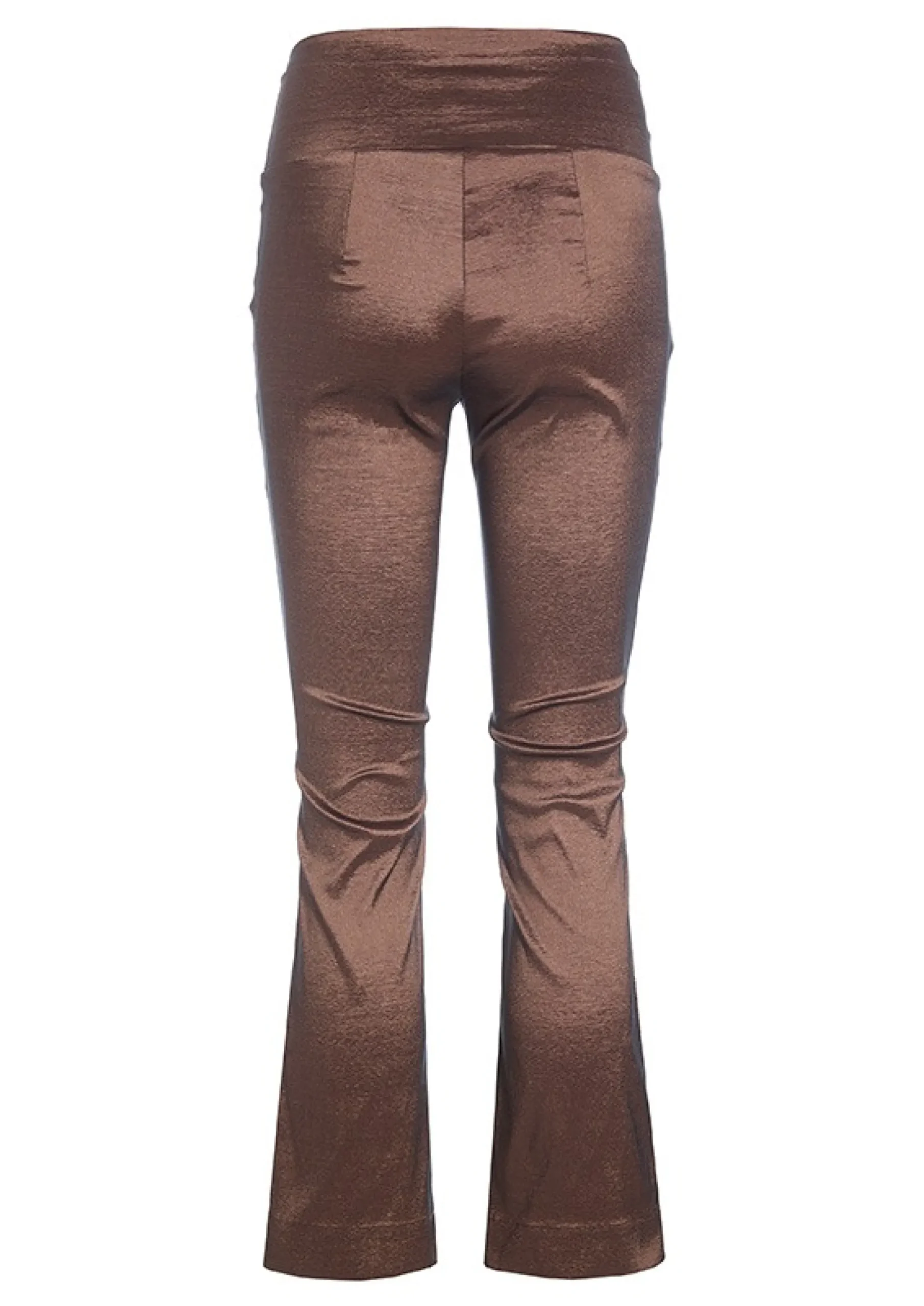 Bukser i enkelt snit med flatterende pasform, der vider let ud forneden, hvilket giver en flot silhuet. Buksernes metalliske shine gør dem oplagte at bruge som et glamourøst indslag i hverdagen såvel som til en middag i byen kombineret med høje hæle.Modellen på billede er 178 cm og iført str. SFuld længde i str. S, ca. 99 cm