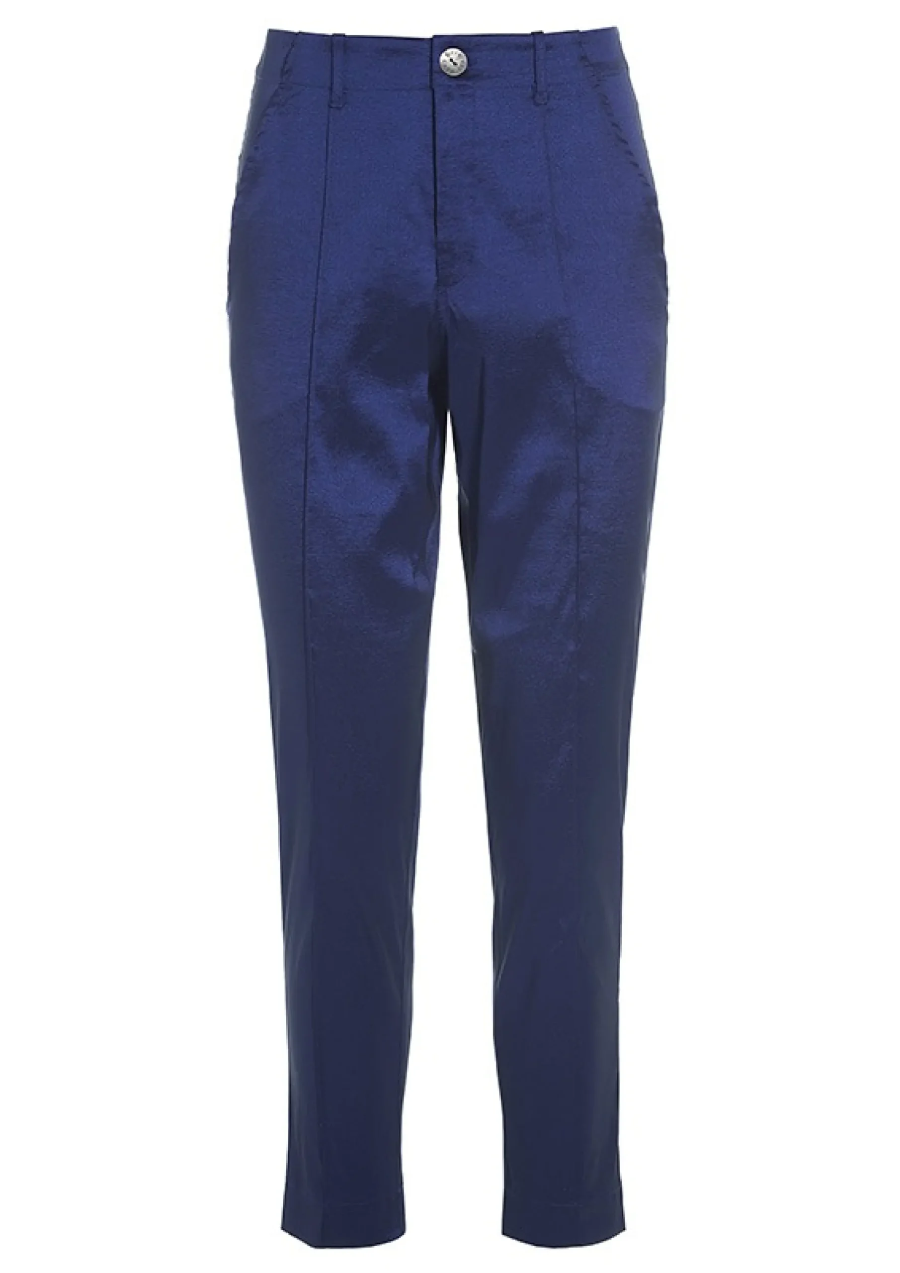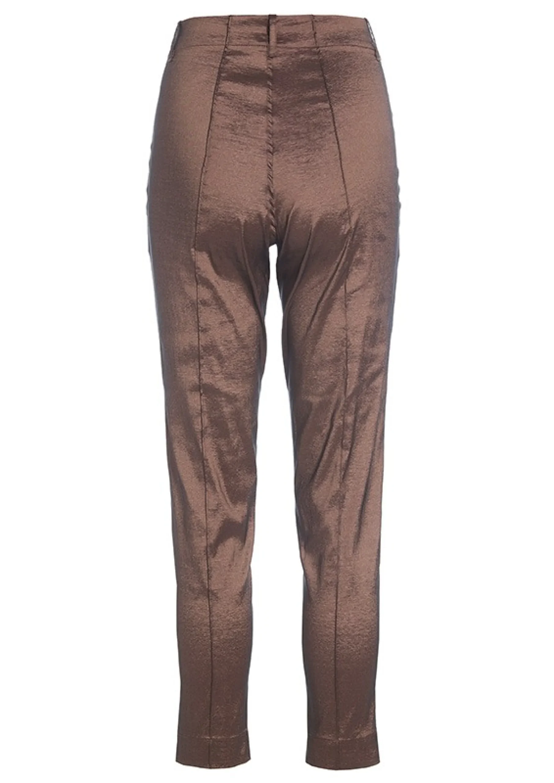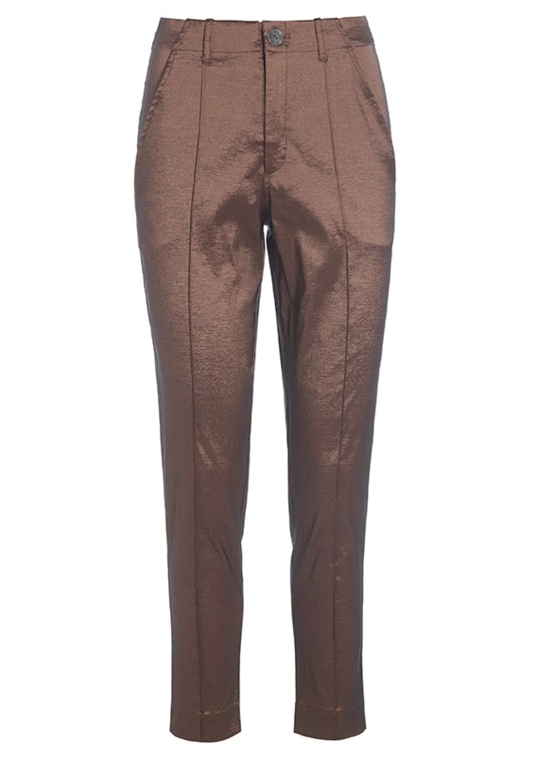 Bukser med smalle ben og et lækkert metallisk shine, der gør dem oplagte at bruge som et glamourøst indslag i hverdagen tilsat en t-shirt eller rullekravebluse såvel som til en middag i byen kombineret med en elegant skjorte og høje hæle.Modellen på billede er 178 cm og iført str. SFuld længde i str. S, ca. 97 cm