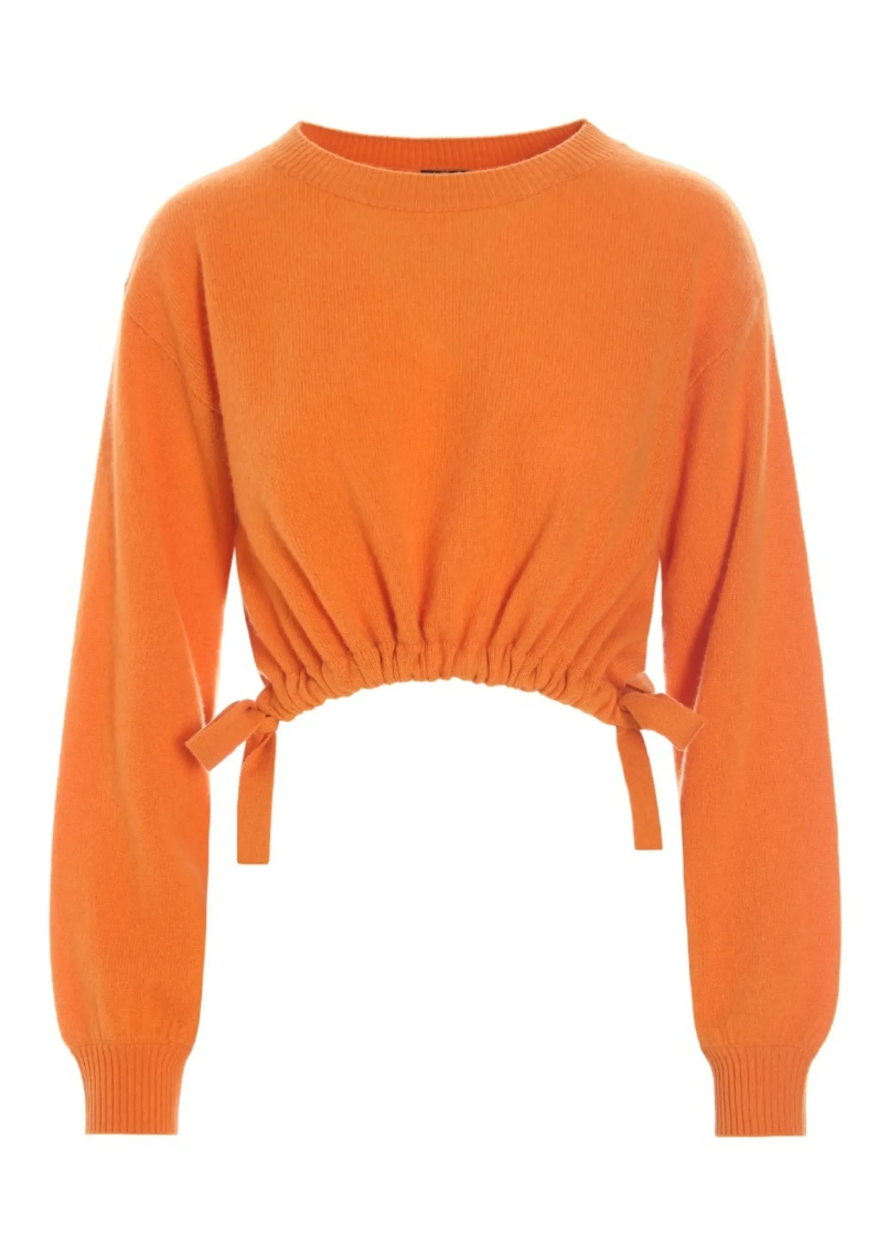 Fin bluse i den blødeste cashmere-kvalitet. Blusen er cropped og har rynkeeffekt med bindebånd forneden inspireret af balletdanseres opvarmningstøj. Oplagt at bruge over en kjole eller med en lang skjorte under til at lag-på-lag-look.Modellen på billede er 178 cm og iført str. SFuld længde i str. S, ca. 39 cm.