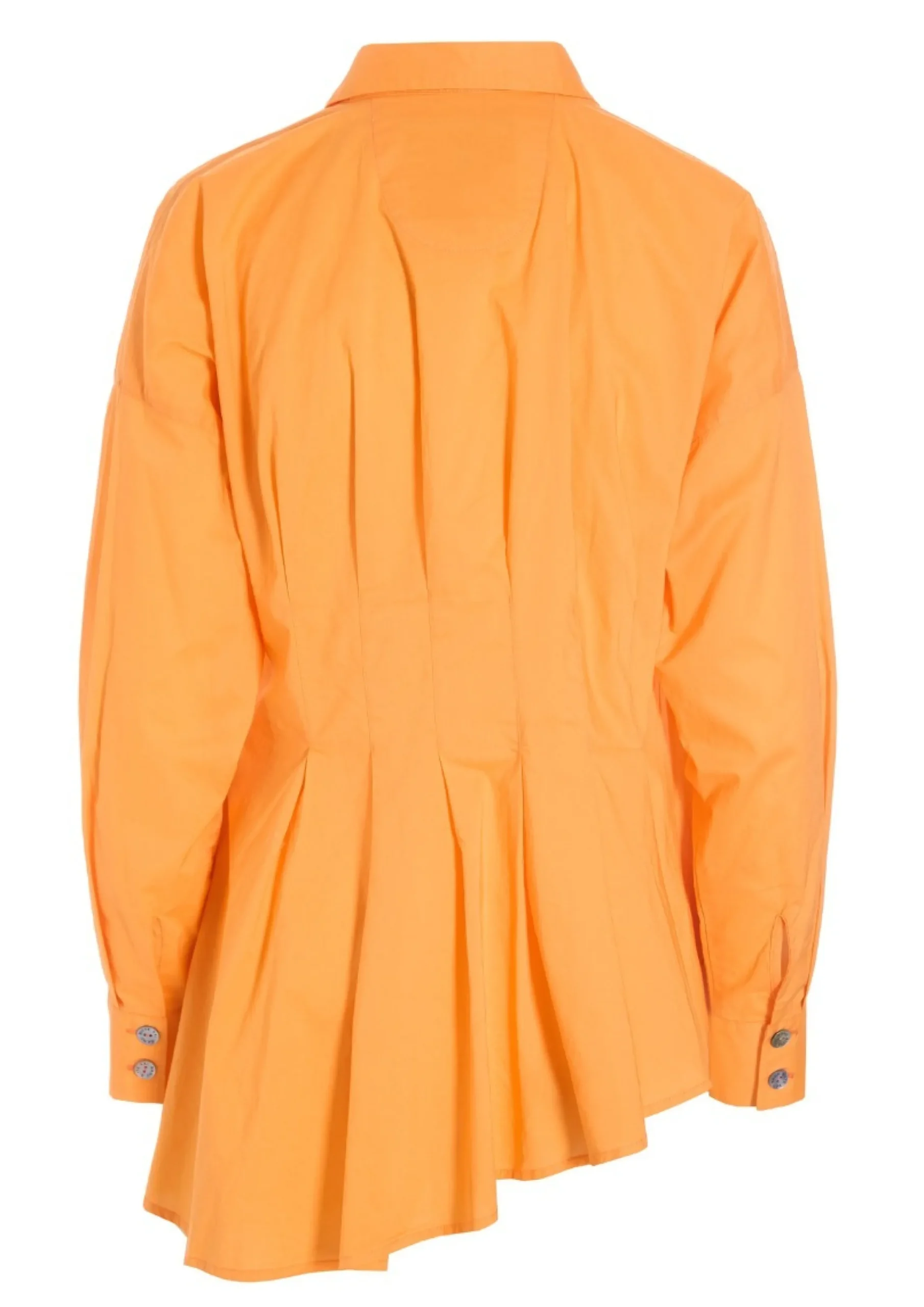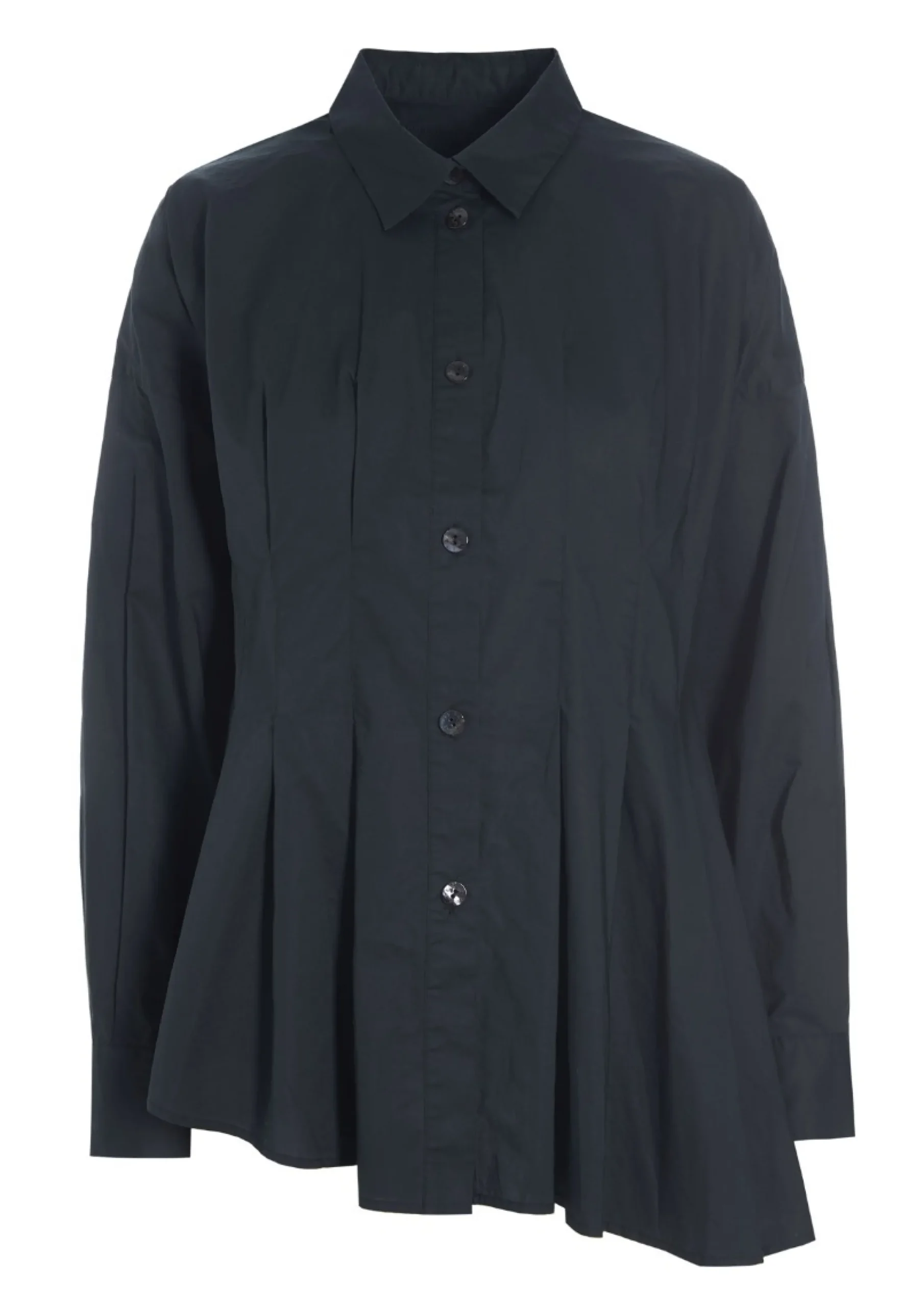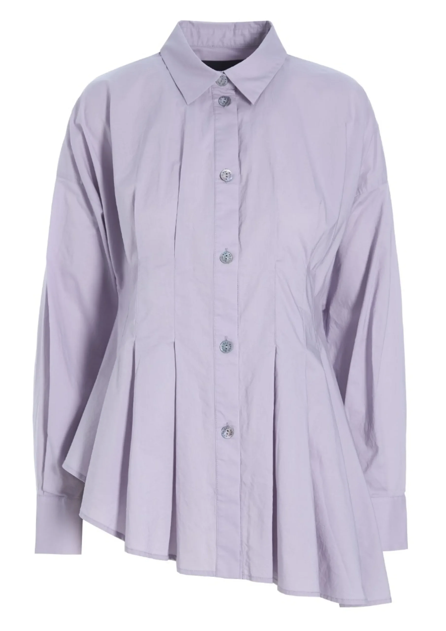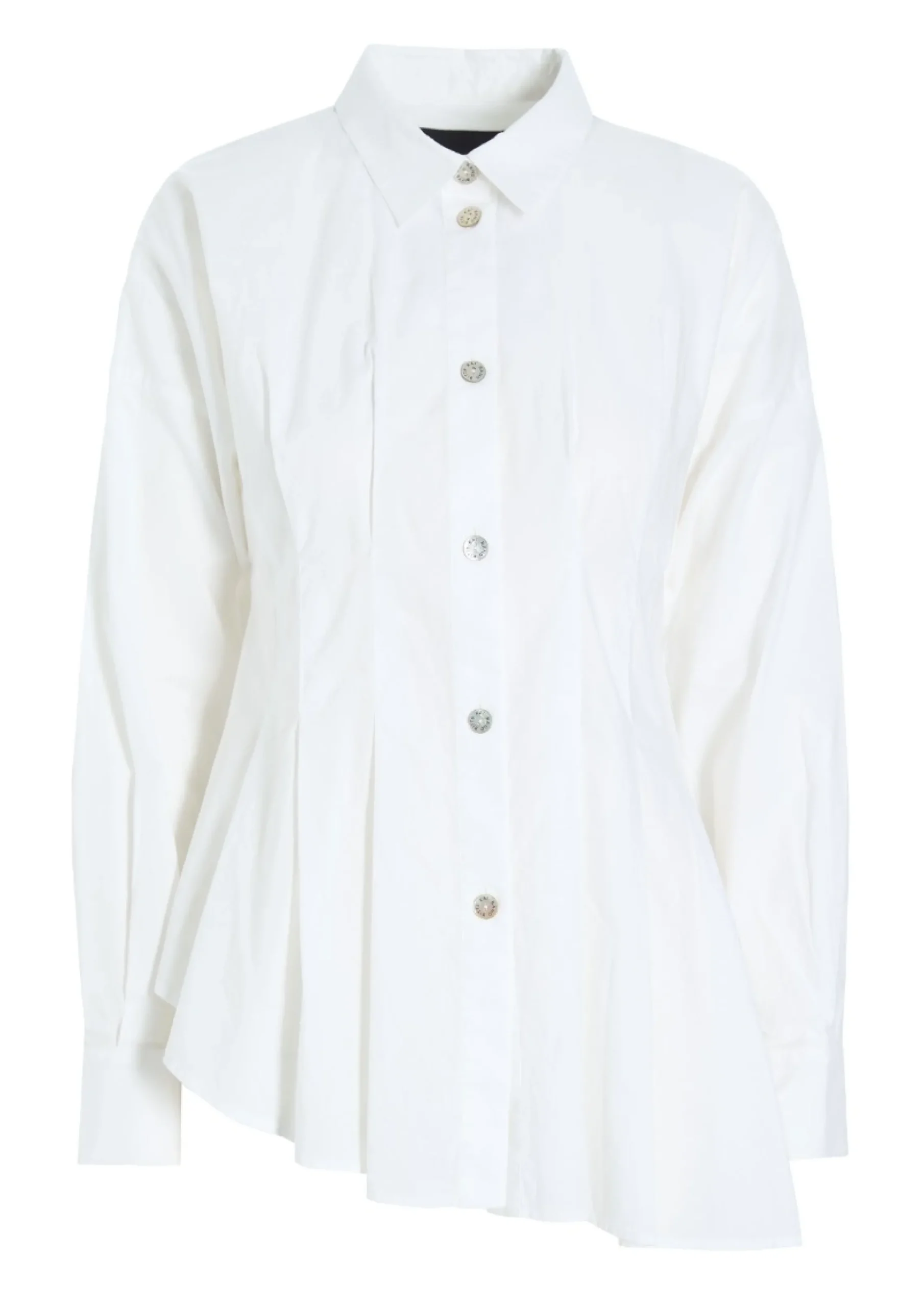 Skjorte med et elegant twist i form af en asymmetrisk afslutning forneden. Læggene i taljen giver en flot silhuet og skjorten kan bruges til de fleste underdele.Modellen på billede er 178 cm og iført str. SFuld længde i str. S, ca. 74 cm.
