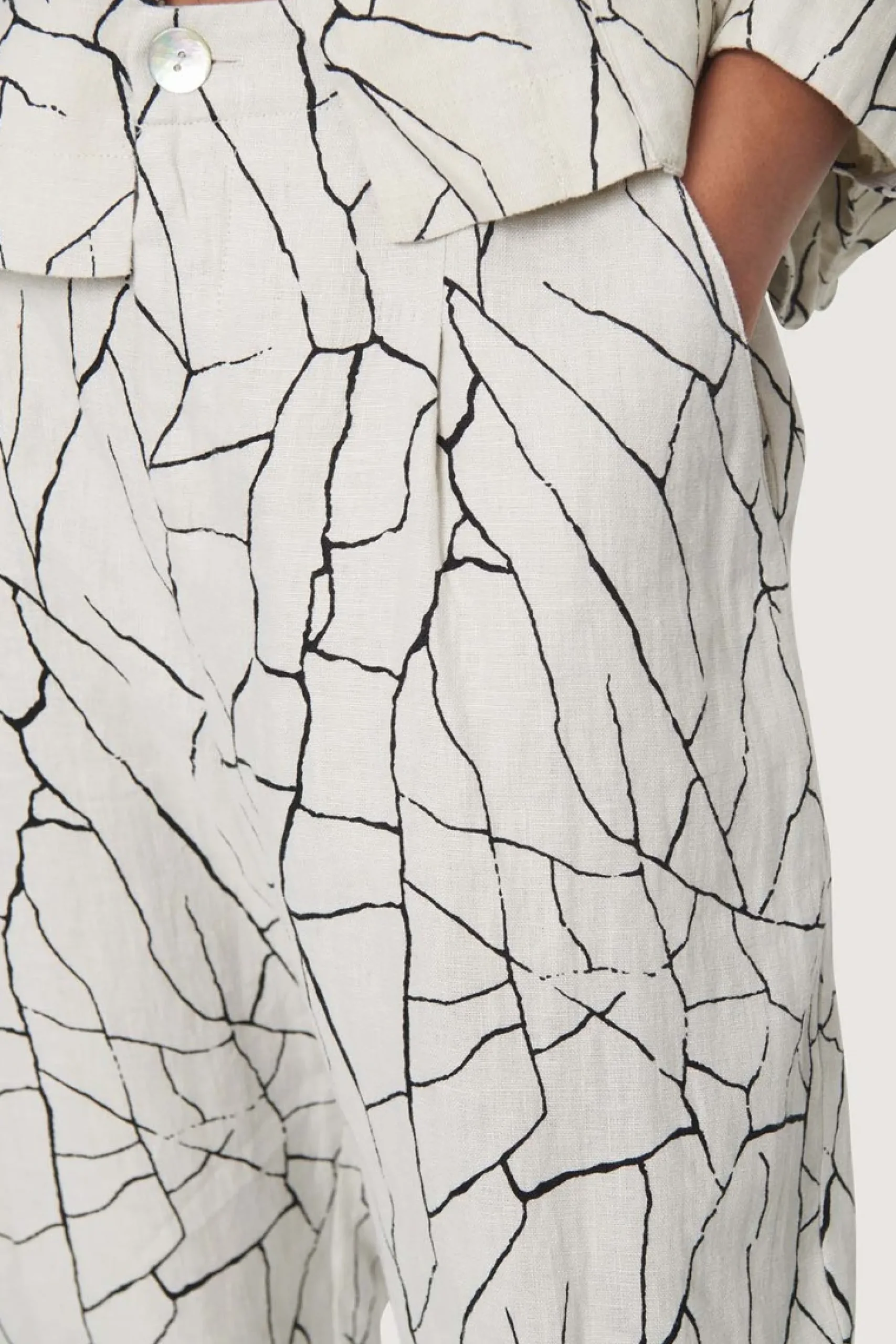 Bukser med wienerlæg i bunden, der giver en voluminøs effekt. En lækker hørkvalitet, forsynet med et enkelt og organisk mønster, der giver den et stilrent, grafisk udtryk. Bukserne kan bruges til enhver overdel. Sammen med den matchende Craquelure-jakke, får du et gennemført outfit.Modellen på billede er 180 cm og iført str. SLængde målt fra taljen i str. S: ca. 100 cm.