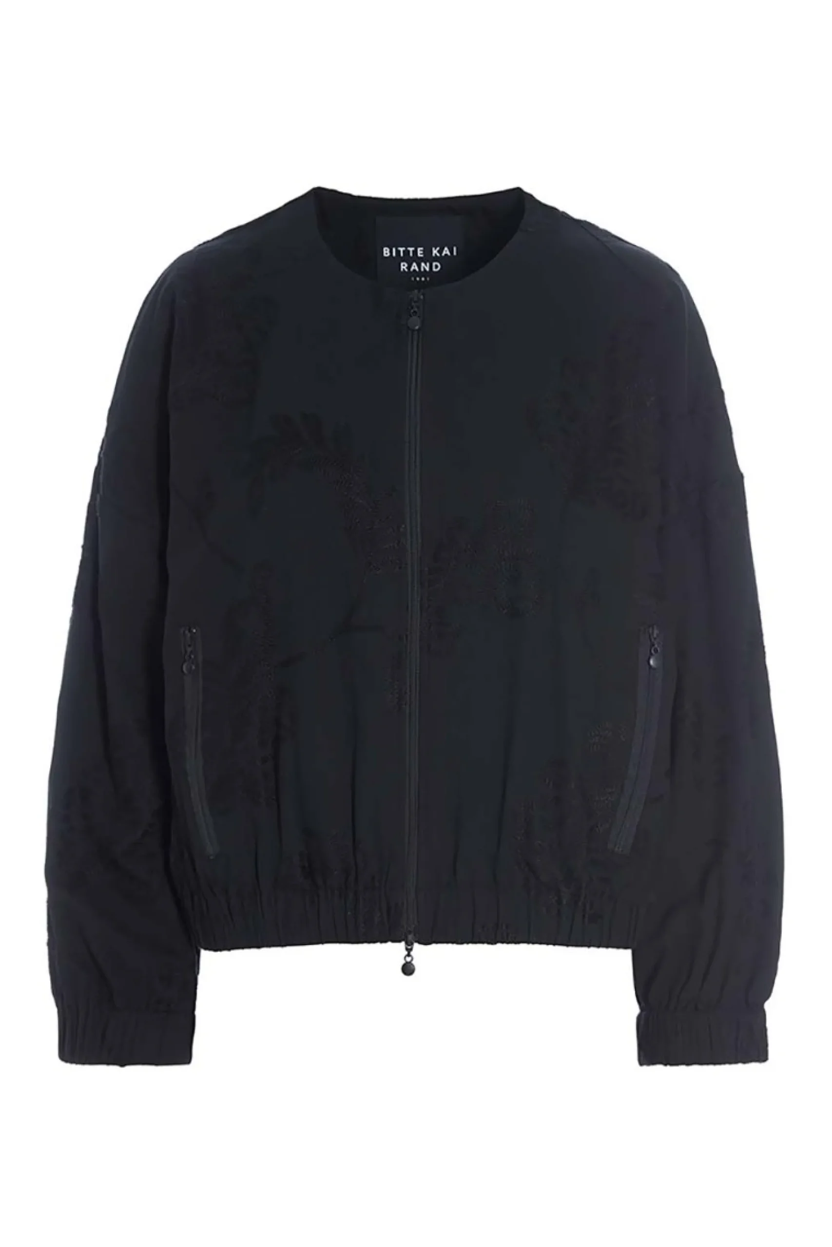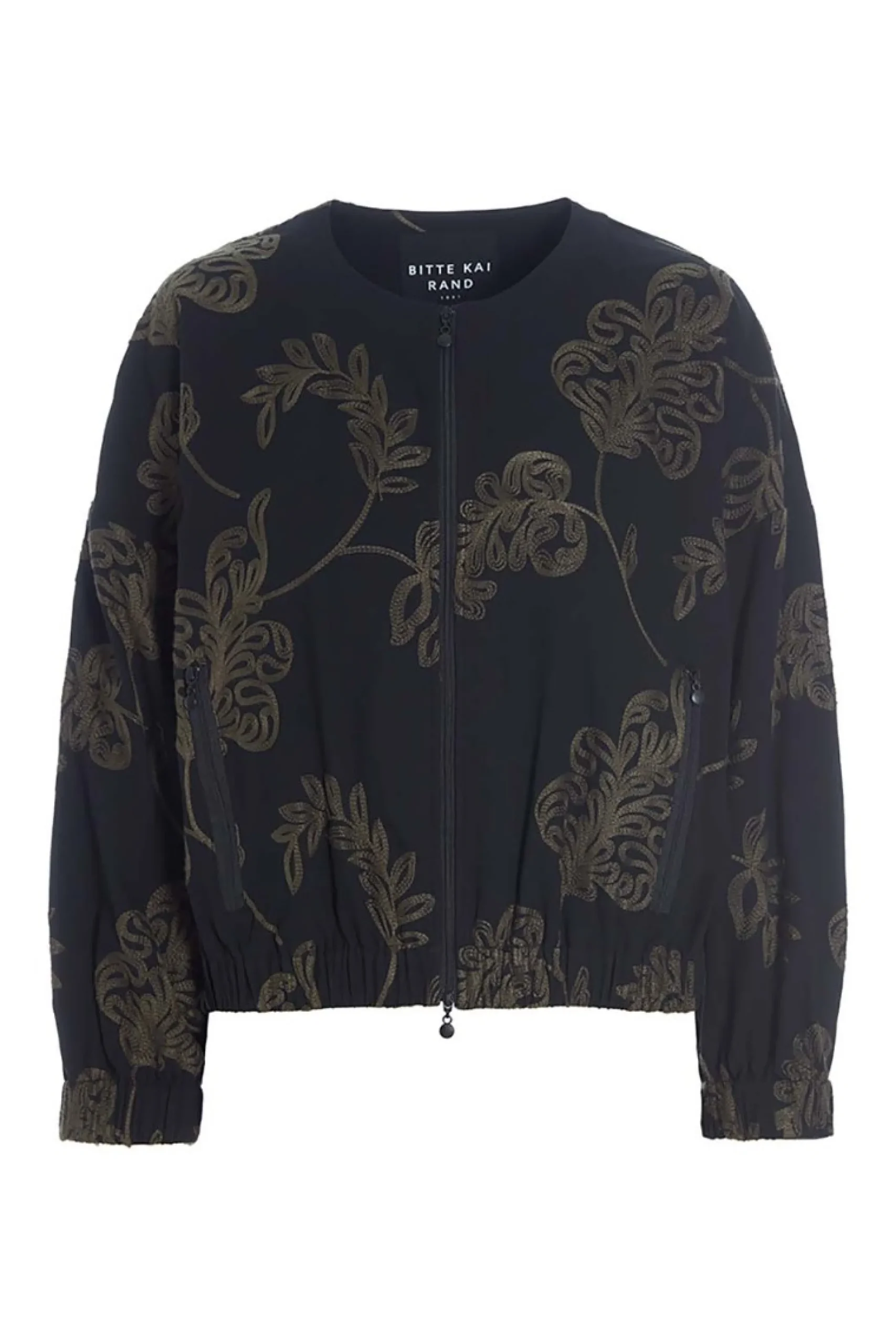 Smuk jakke udsmykket med det fineste broderede bladmotiv. Jakken er velsiddende med rynkeeffekt ved talje og manchetter. Den er oplagt at bruge som alternativ til en cardigan. Kombinerer du jakken med de matchende Embroidered Leaf bukser, får du et smart sæt.Modellen på billede er 180 cm og iført str. SFuld længde i str. S, ca. 54 cm.