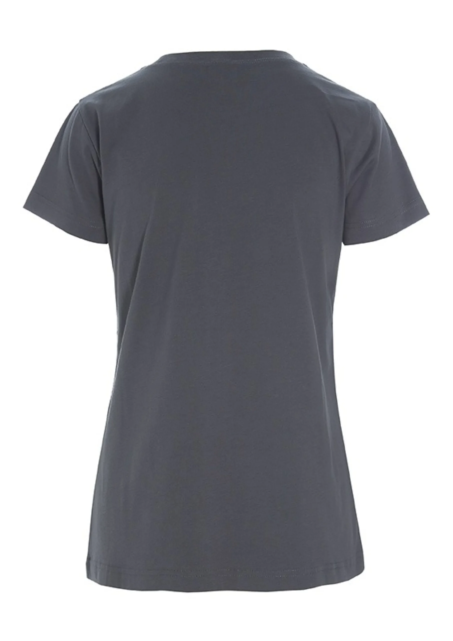 Helt enkel kortærmet t-shirt i pima-bomuld af høj kvalitet, som får pasformen til at holde sig flot. T-shirten er udsmykket med metallisk logo. Et basiselement med et cool twist.Modellen på billede er 178 cm og iført str. SFuld længde i str. S, ca. 66 cm
