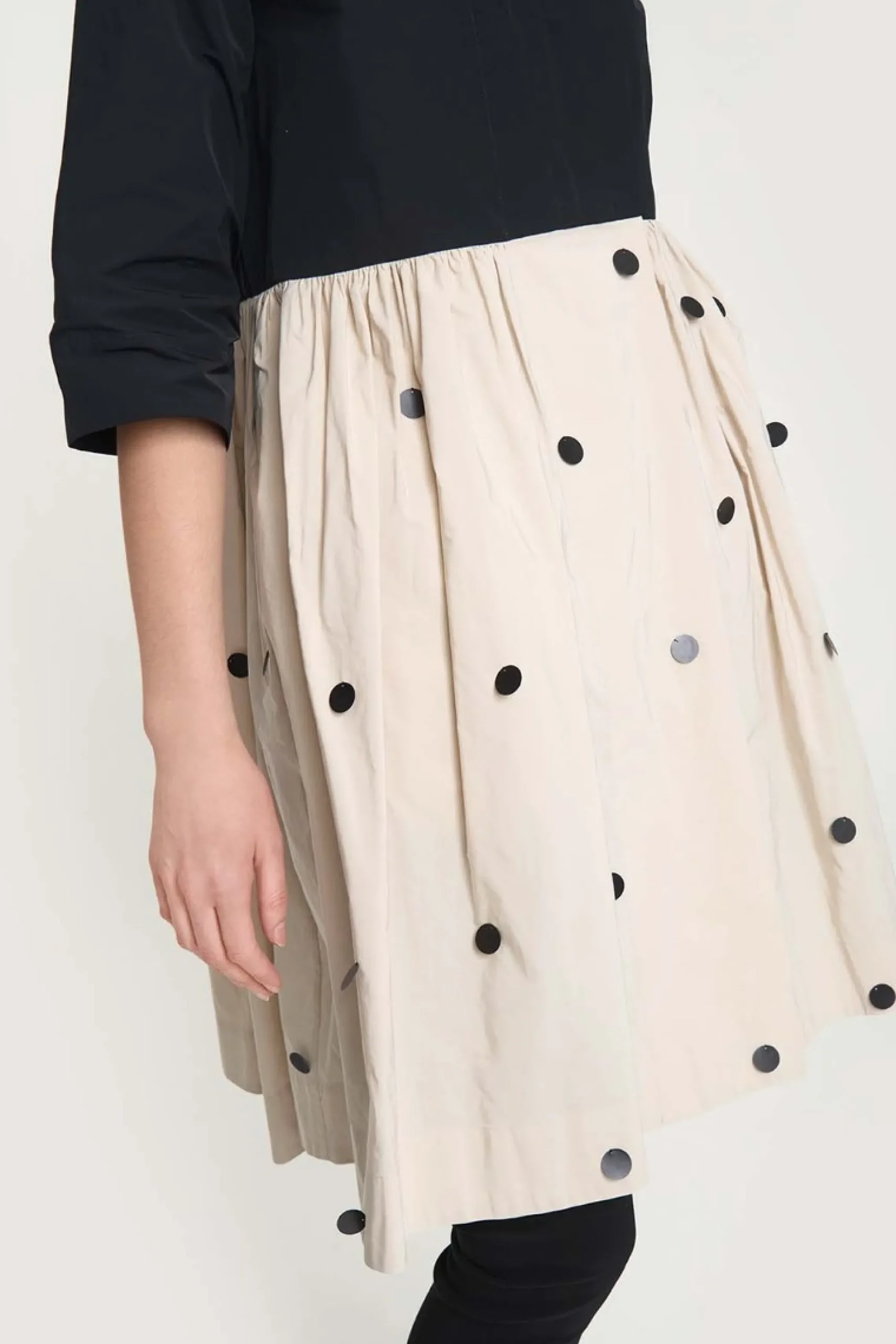 Smuk og opsigtsvækkende frakkekjole, der er dekoreret med store, matte pailletter på skørtet. Frakkekjolen er oplagt at bruge både til hverdag og fest. Bær den over et par lækre, tætsiddende bukser, eller sæt blot strømper og flotte sko til.Modellen på billede er 180 cm og iført str. 1Fuld længde i str. 1, ca. 101 cm.