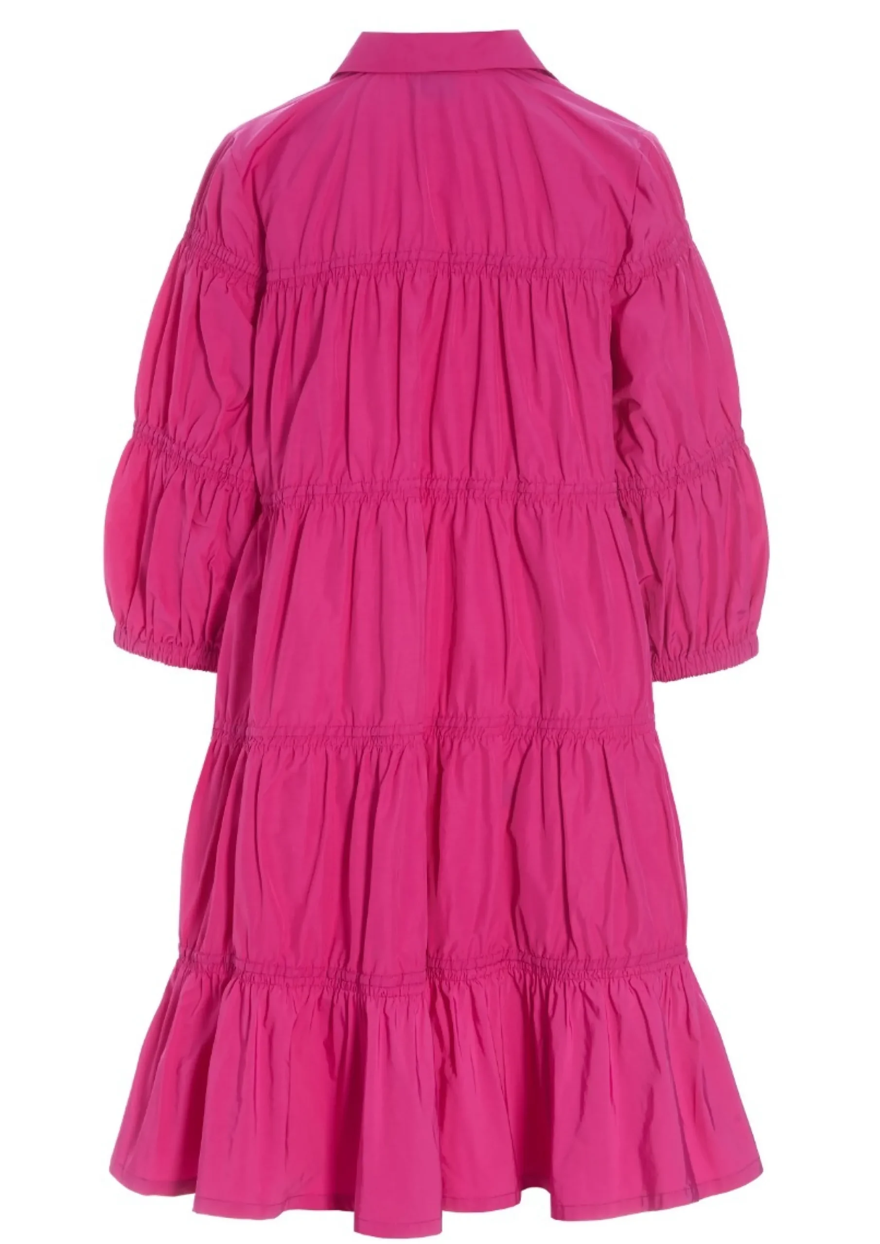 Flot kjole syet i paneler med rynkeeffekt, der giver et voluminøst udtryk. Kjolen er cool blot tilsat herresko eller ballerinaer. Og opgraderer du med høje hæle, er du lynhurtig klar til en aften i byen.Modellen på billede er 179 cm og iført str. SFuld længde i str. S, ca. 99 cm