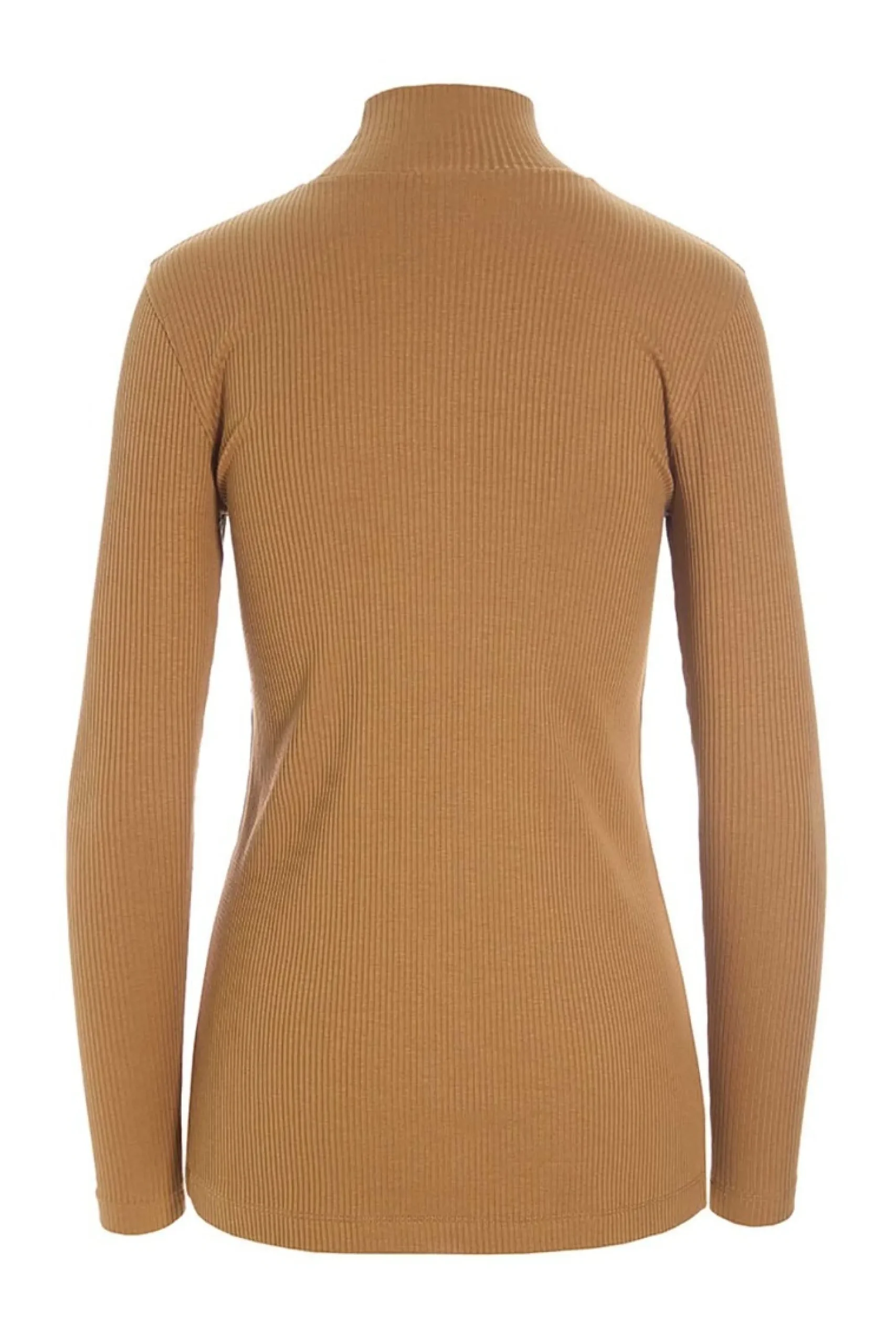 Højhalset bluse i blød ribjersey kvalitet med økologisk bomuld og tilsat stretch, som får pasformen til at holde sig flot. Blusen er højhalset, og den er oplagt at bruge til et lag-på-lag-look under en skjorte eller en transparent overdel. Eller bær den i al sin enkelhed tilsat smalle bukser eller nederdel.Modellen på billede er 180 cm og iført str. SFuld længde i str. S, ca. 69 cm.