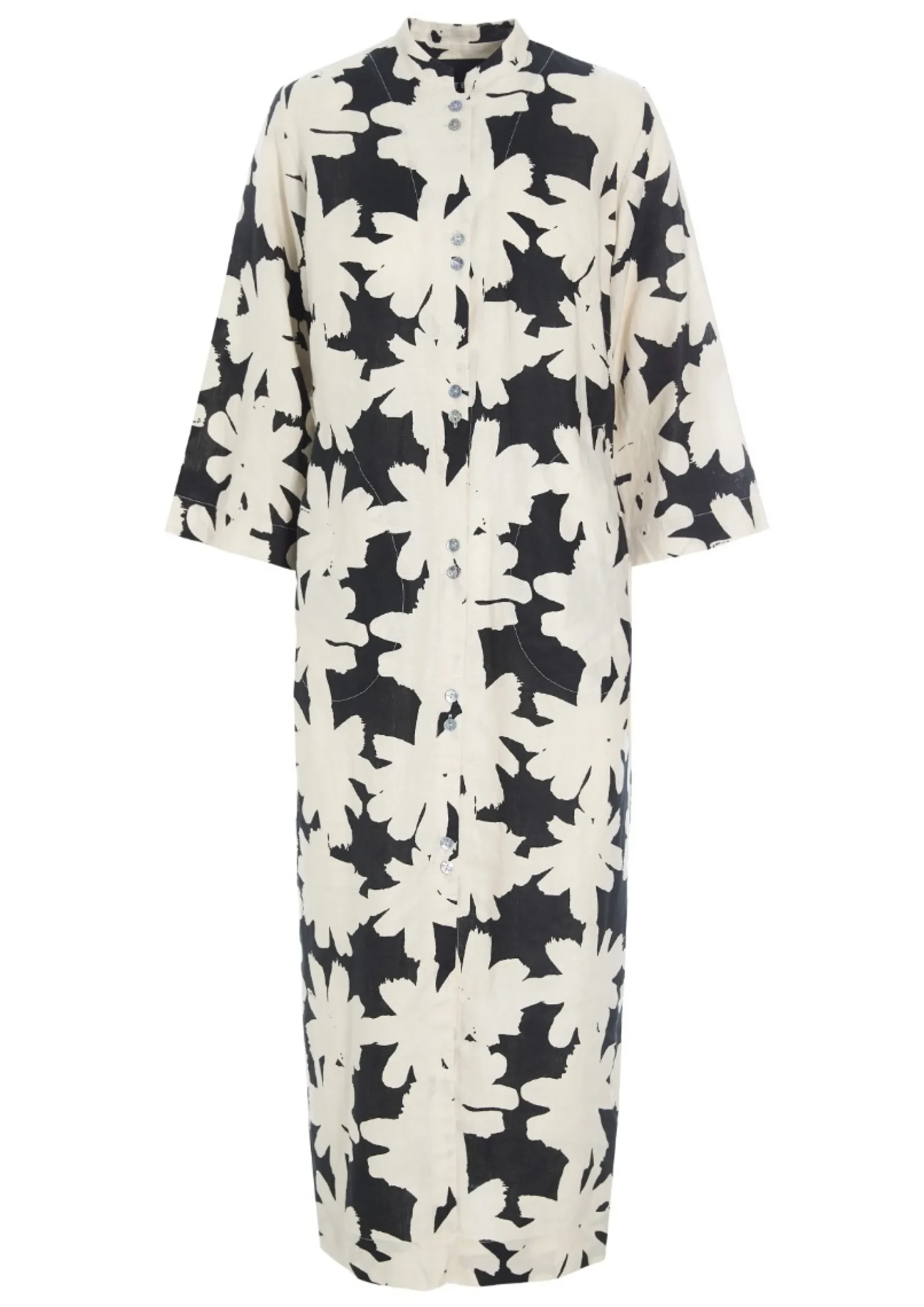 Med det fine print og det super enkle snit skaber denne kjole en lang, slank silhuet. Kjolen kan bruges til hverdag med flade sandaler, og til festlige lejligheder kan du kombinere den med høje hæle og smykker.Modellen på billede er 178 cm og iført str. SFuld længde i str. S, ca. 129 cm.