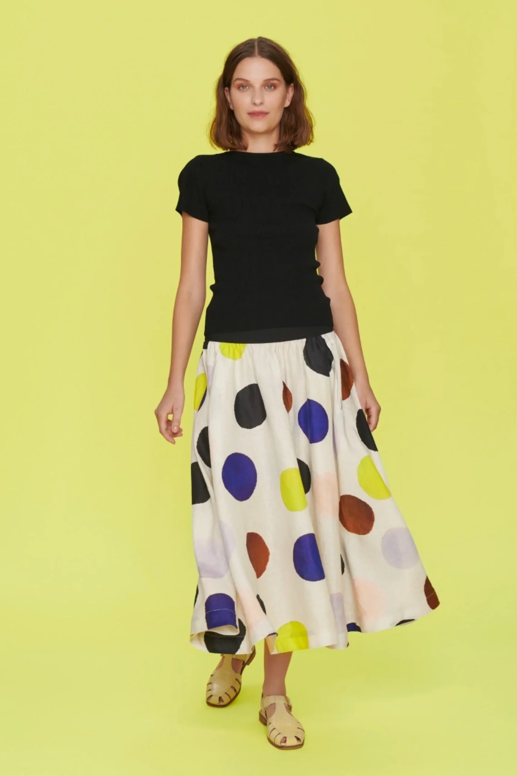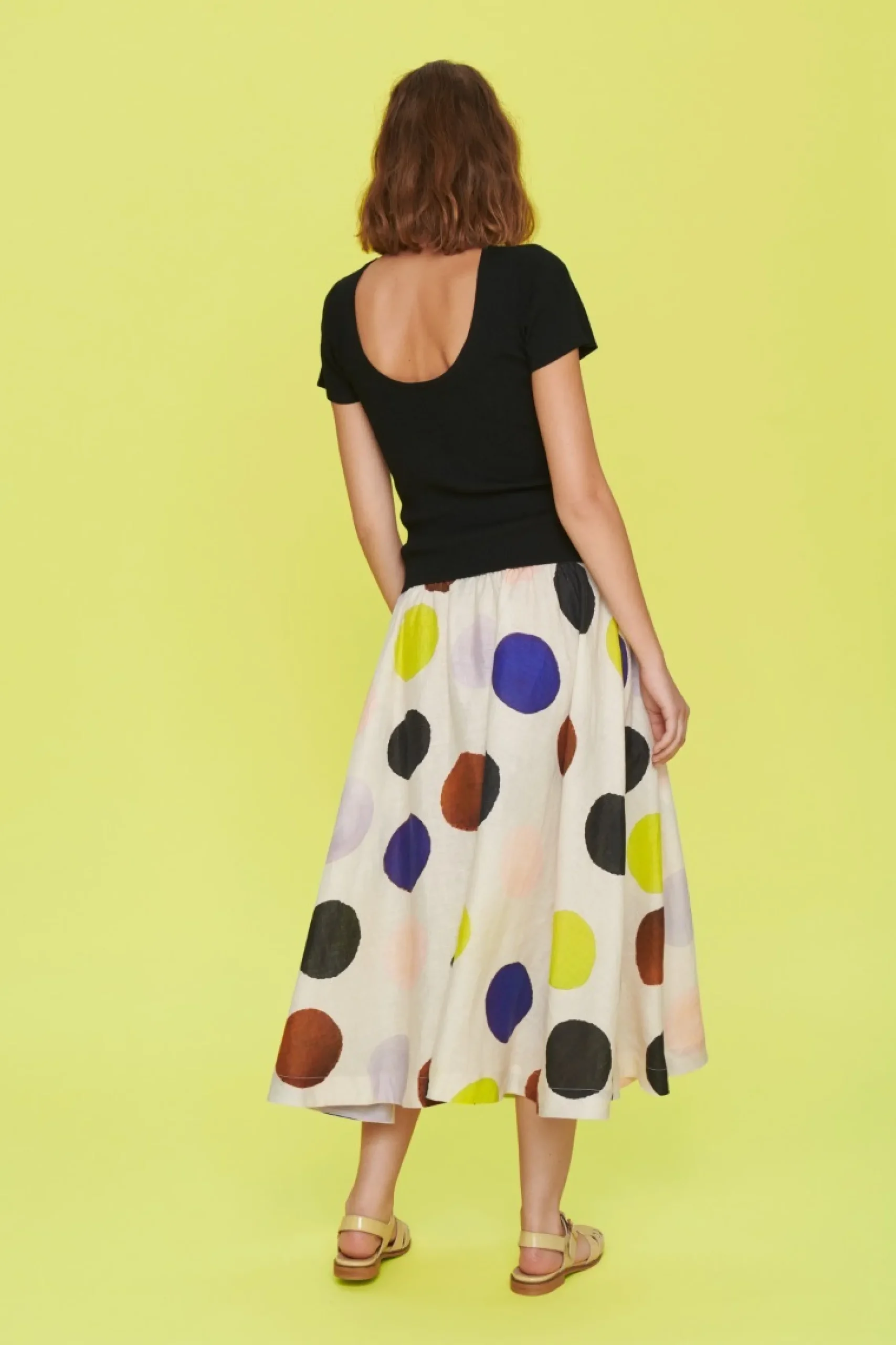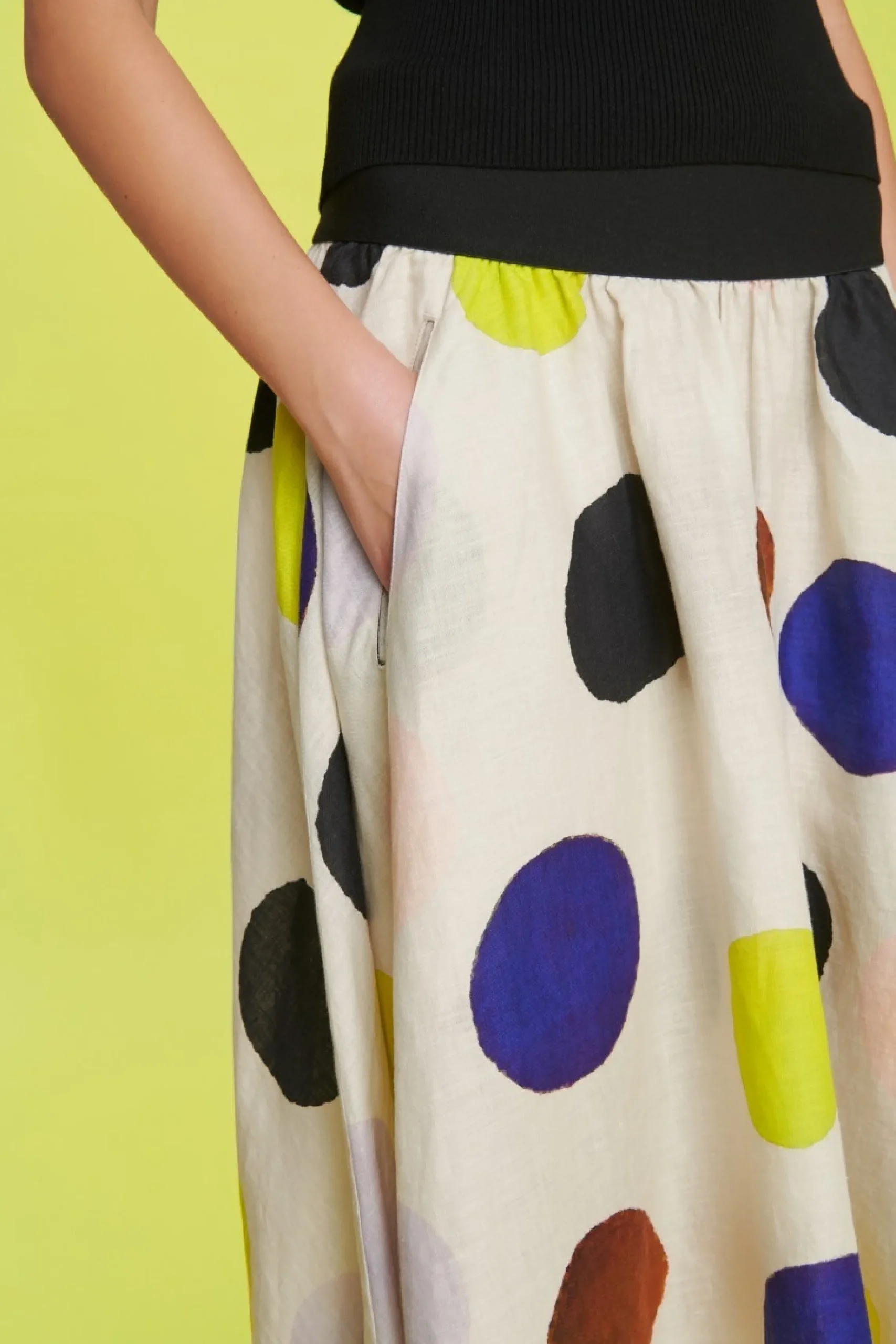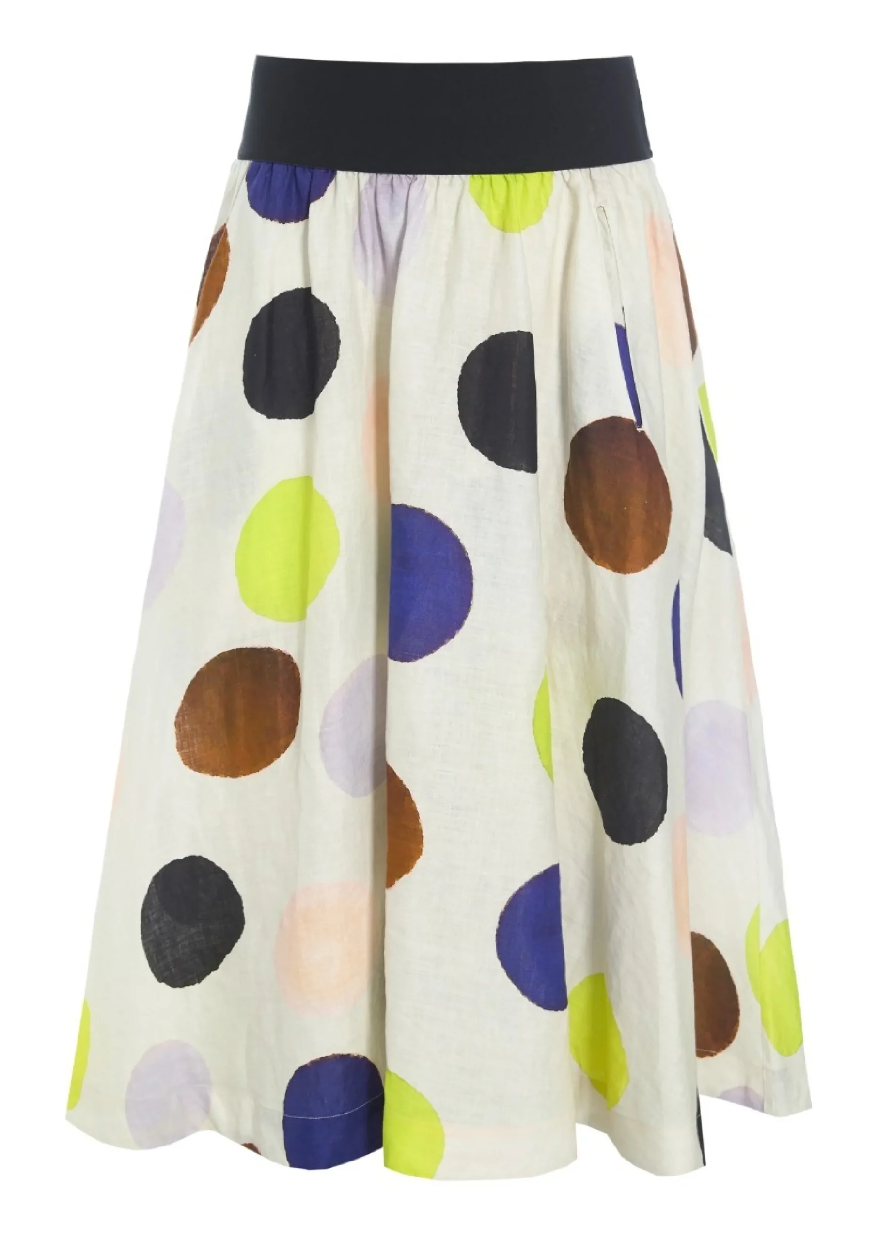Det fine print gør denne nederdel til noget helt særligt. Den har flot volumen i skørtet, og den brede linning markerer taljen på smukkeste vis. Brug den med en hvid skjorte, en farverig t-shirt eller den matchende Harukaze jakke.Modellen på billede er 178 cm og iført str. SLængde målt fra taljen i str. S: ca. 79 cm.