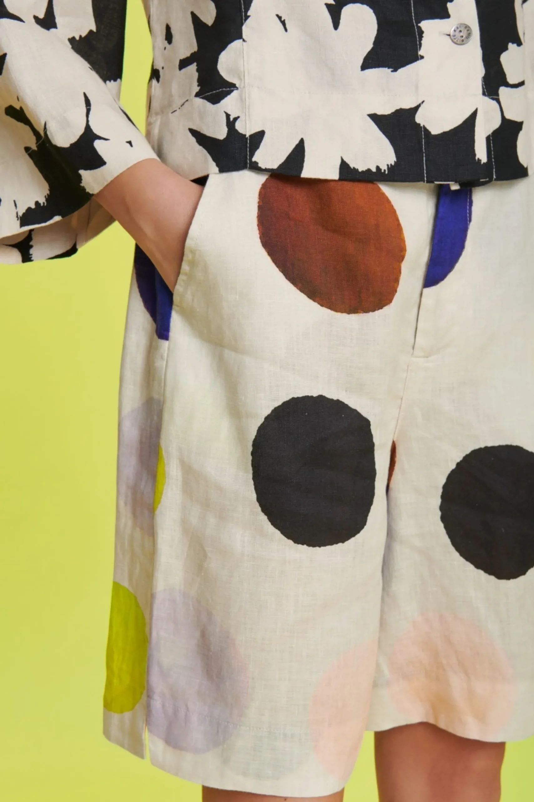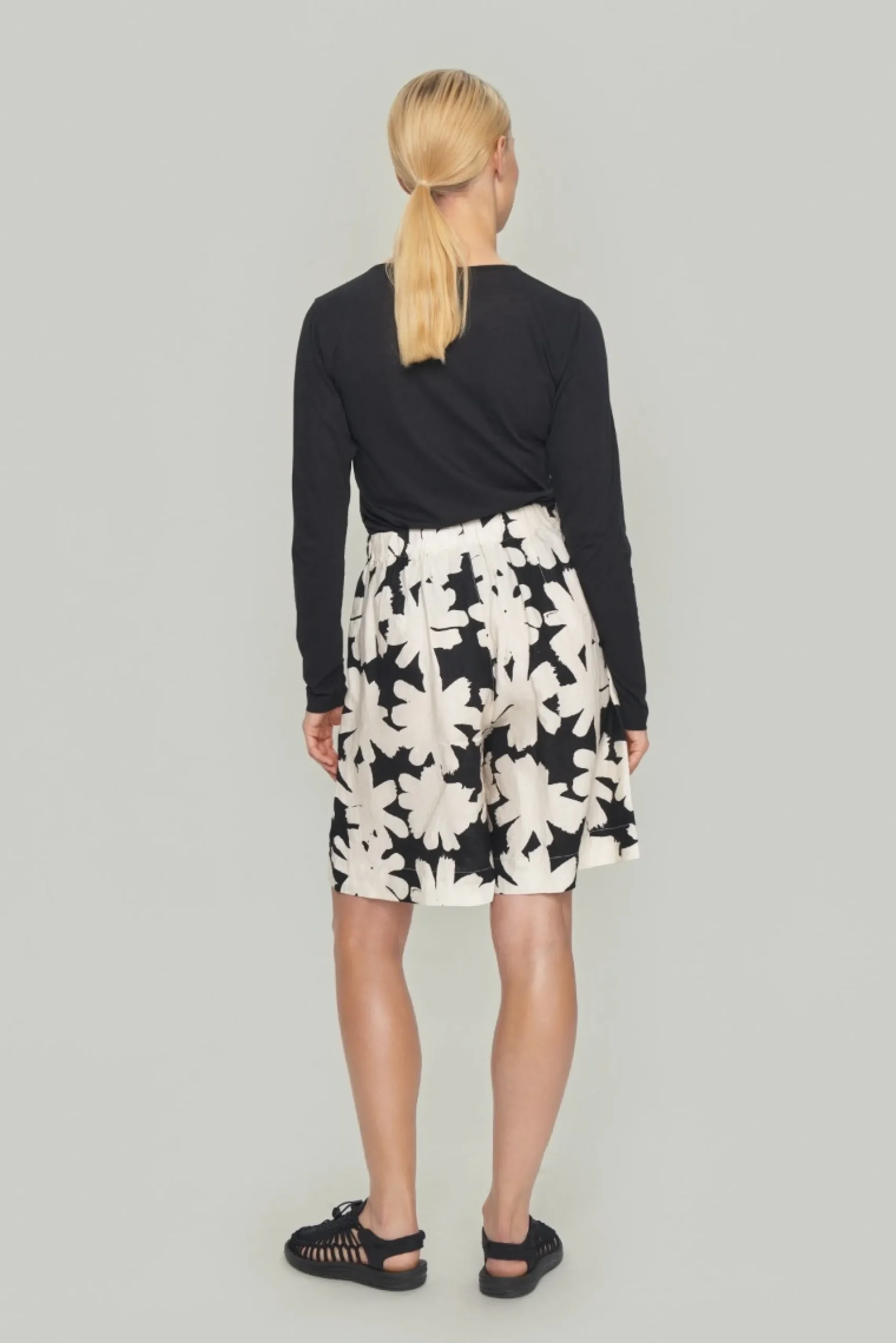 Det fine print gør disse shorts til noget helt særligt. De har et klassisk snit og god vidde i benene og kan fx kombineres med en knitrende hvid skjorte, en farverig t-shirt – og med den matchende Harukaze jakke har du et elegant sæt.Modellen på billede er 178 cm og iført str. SLængde målt fra taljen i str. S: ca. 54 cm.