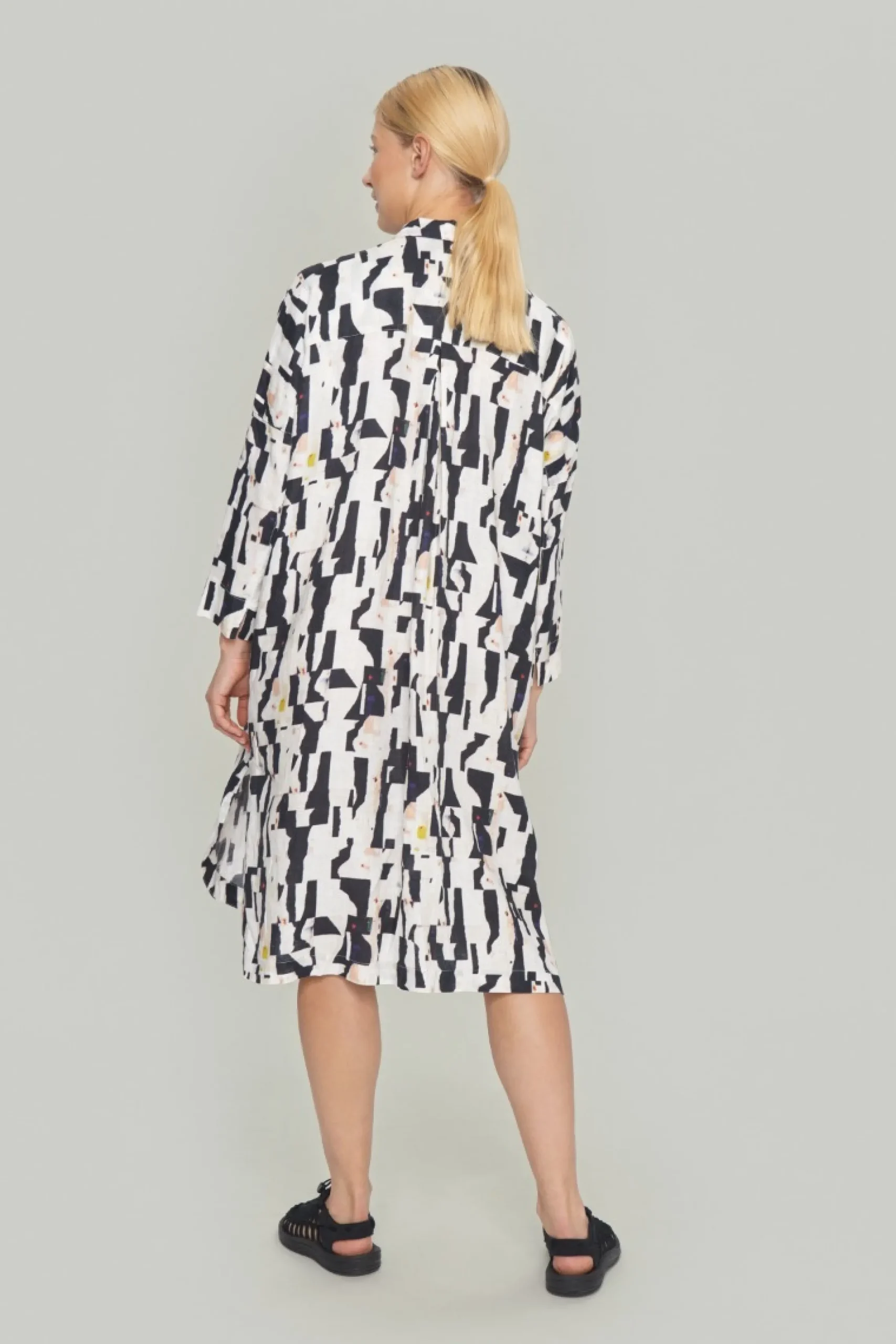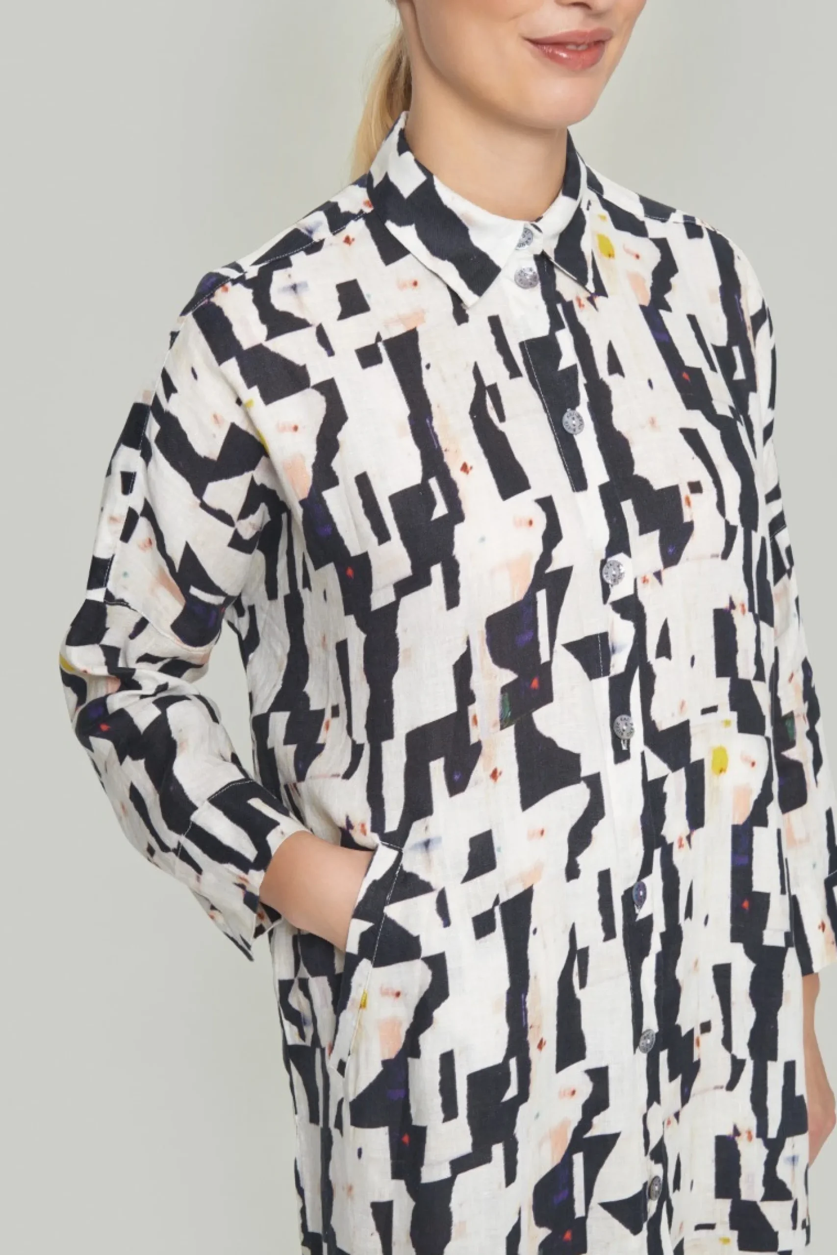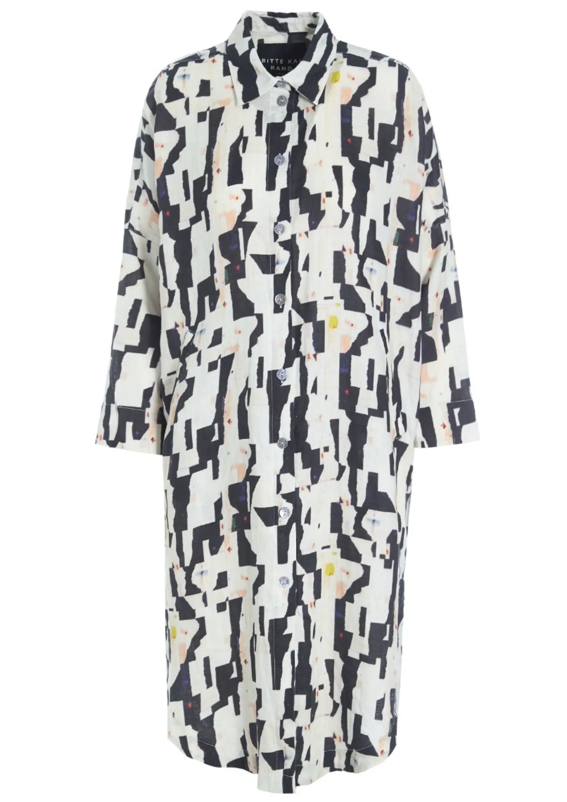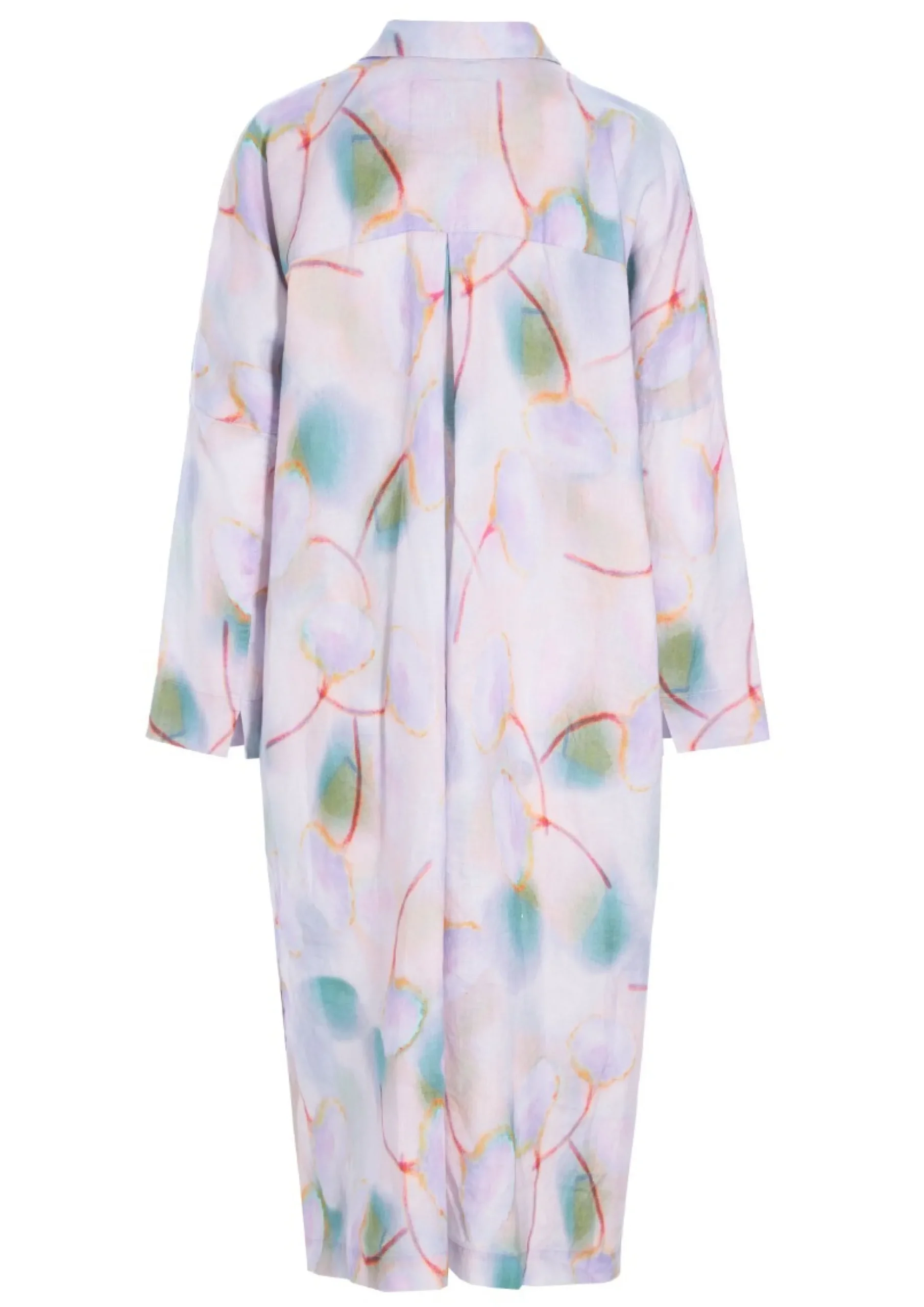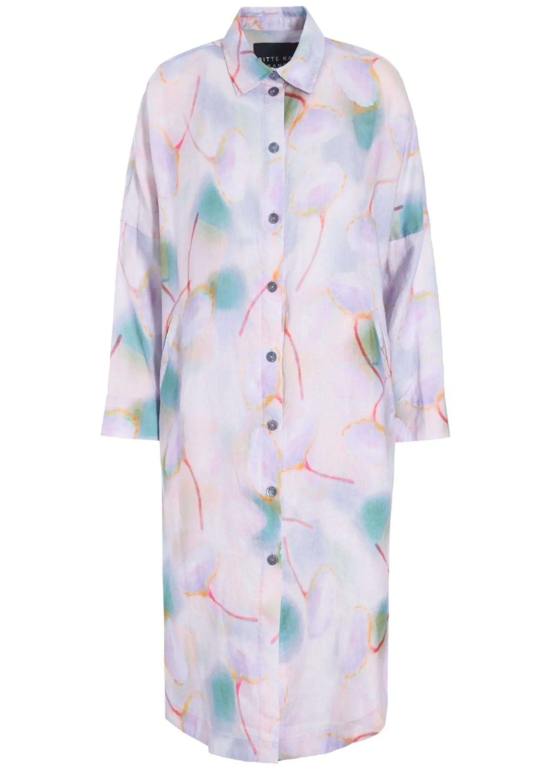 Skjortekjole i lækker hørkvalitet med et flot og kunstfærdigt print. Brug den over et par jeans eller brede bukser – og på varme dage alene, kun tilsat flade sandaler eller sneakers.Modellen på billede er 178 cm og iført str. 1Fuld længde i str. 1, ca. 108 cm.
