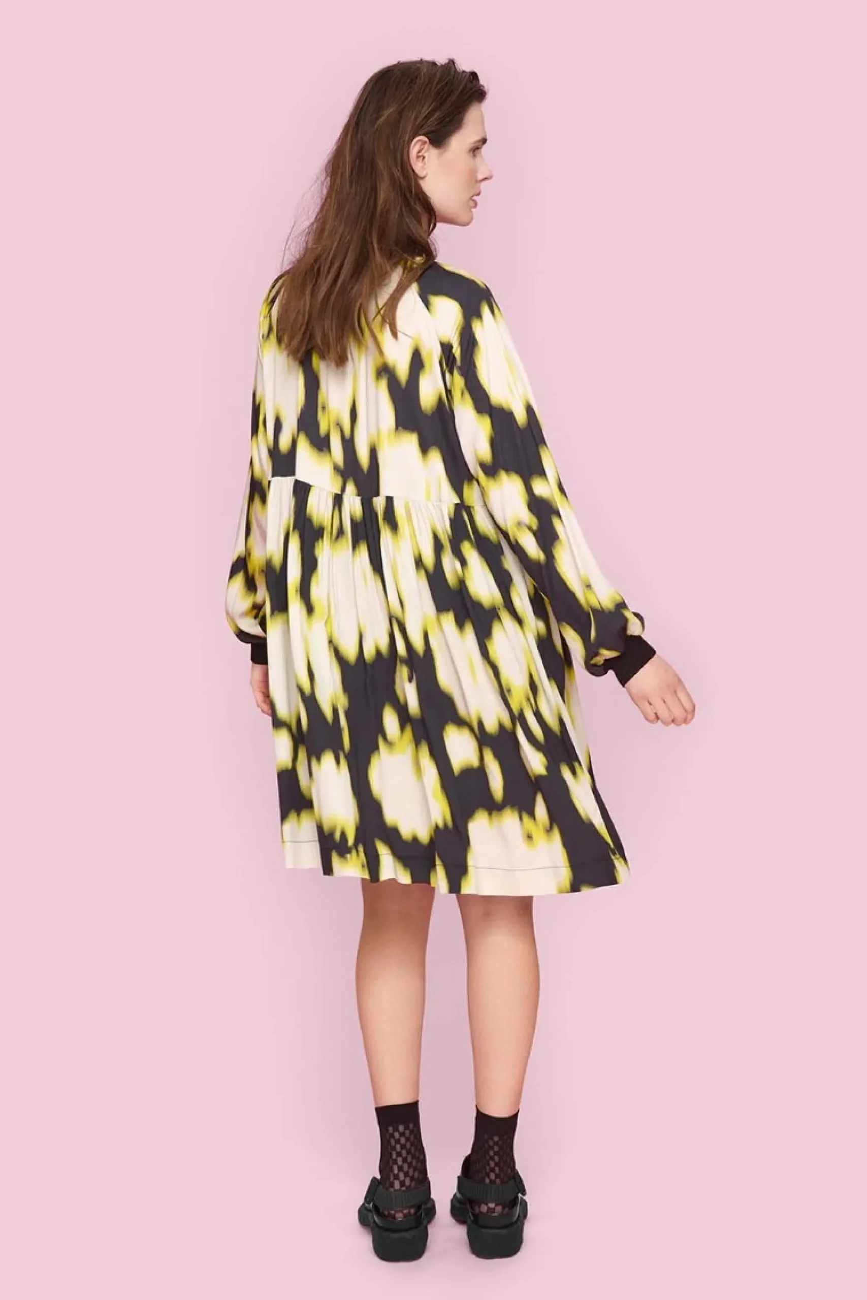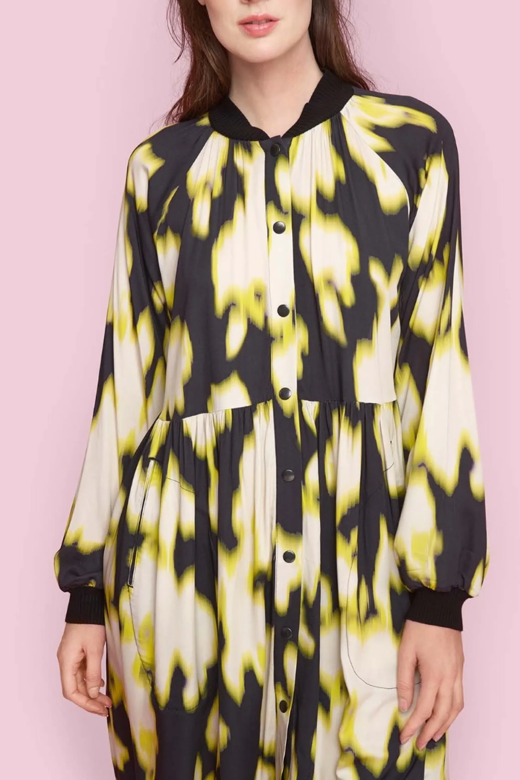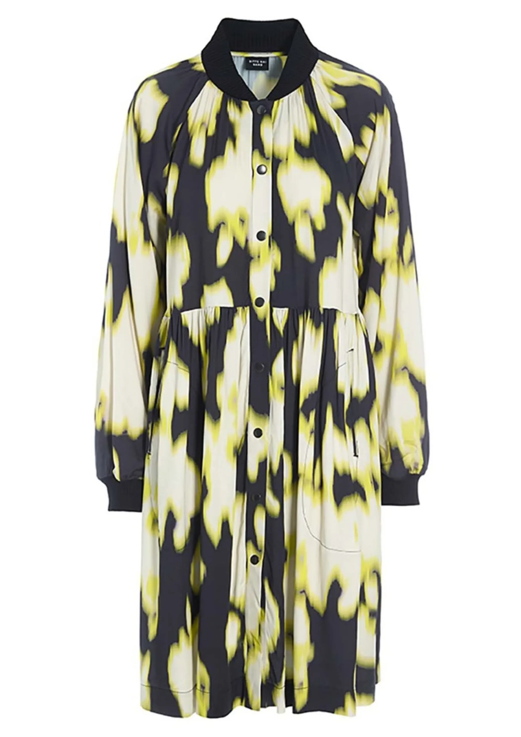 Kjole med ribkrave og trykknapper i en blød og behagelig viskosekvalitet med et iøjnefaldende print. Kjolen har lommer og lange ærmer med ribkanter. Kan bruges til både hverdag og fest – suppler med et par stilfulde sko, der passer til din smag.Modellen på billede er 180 cm og iført str. SFuld længde i str. S, ca. 99 cm.