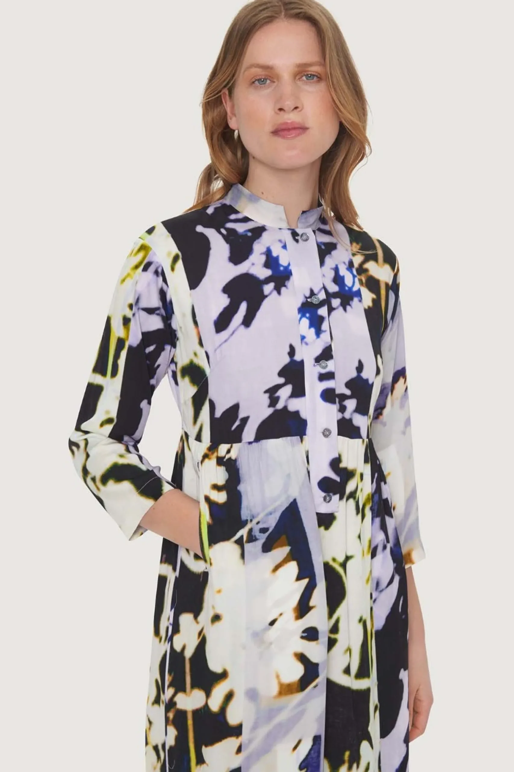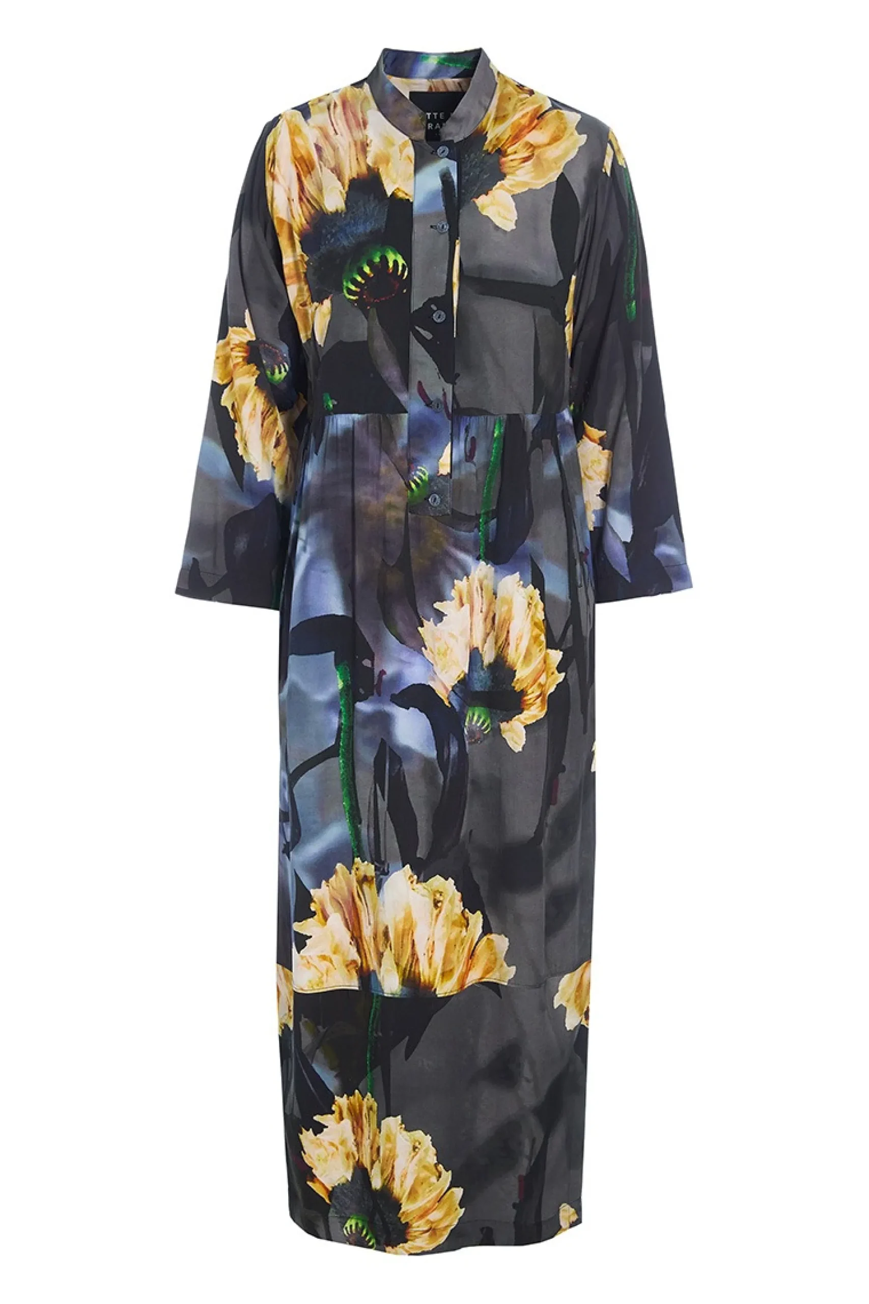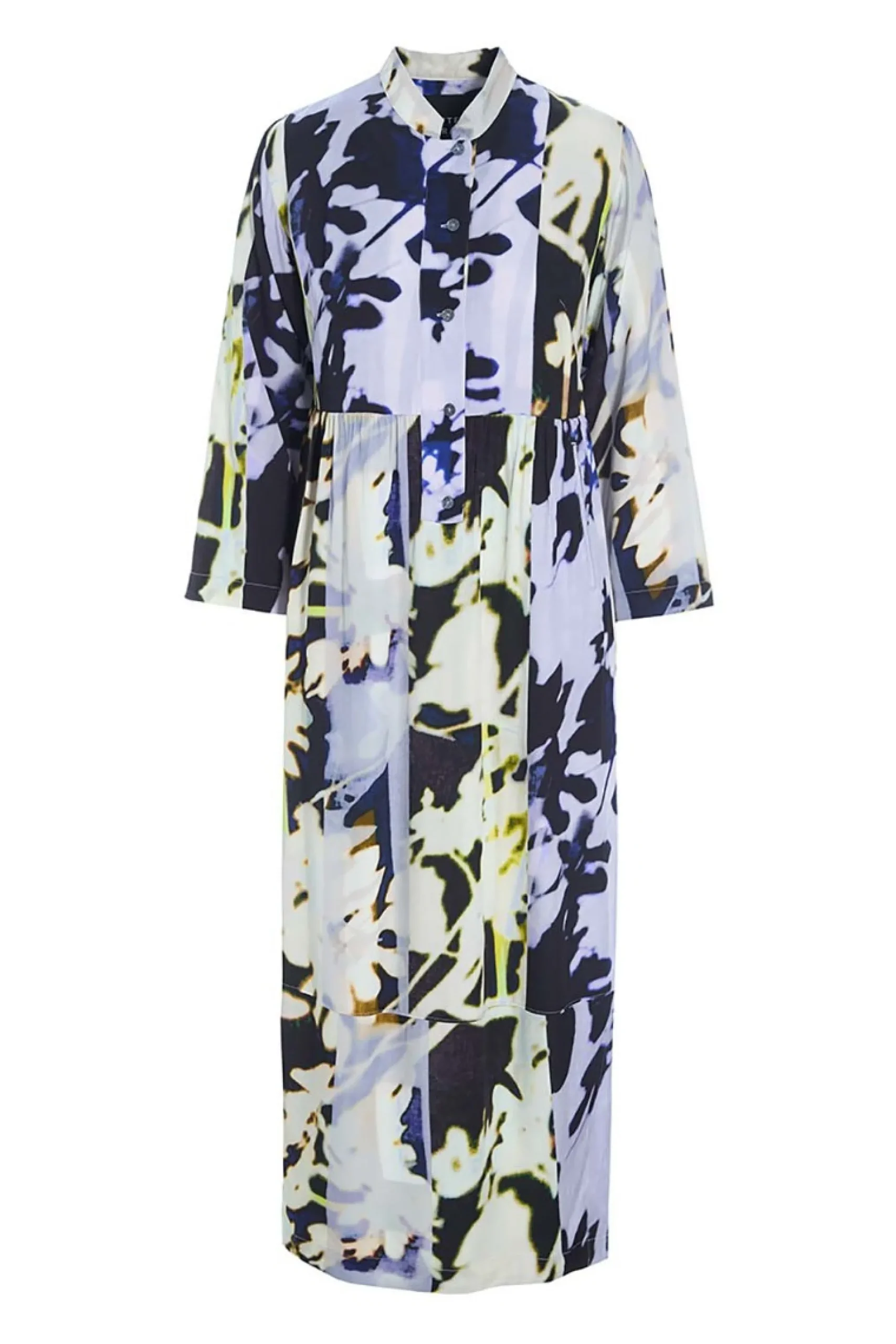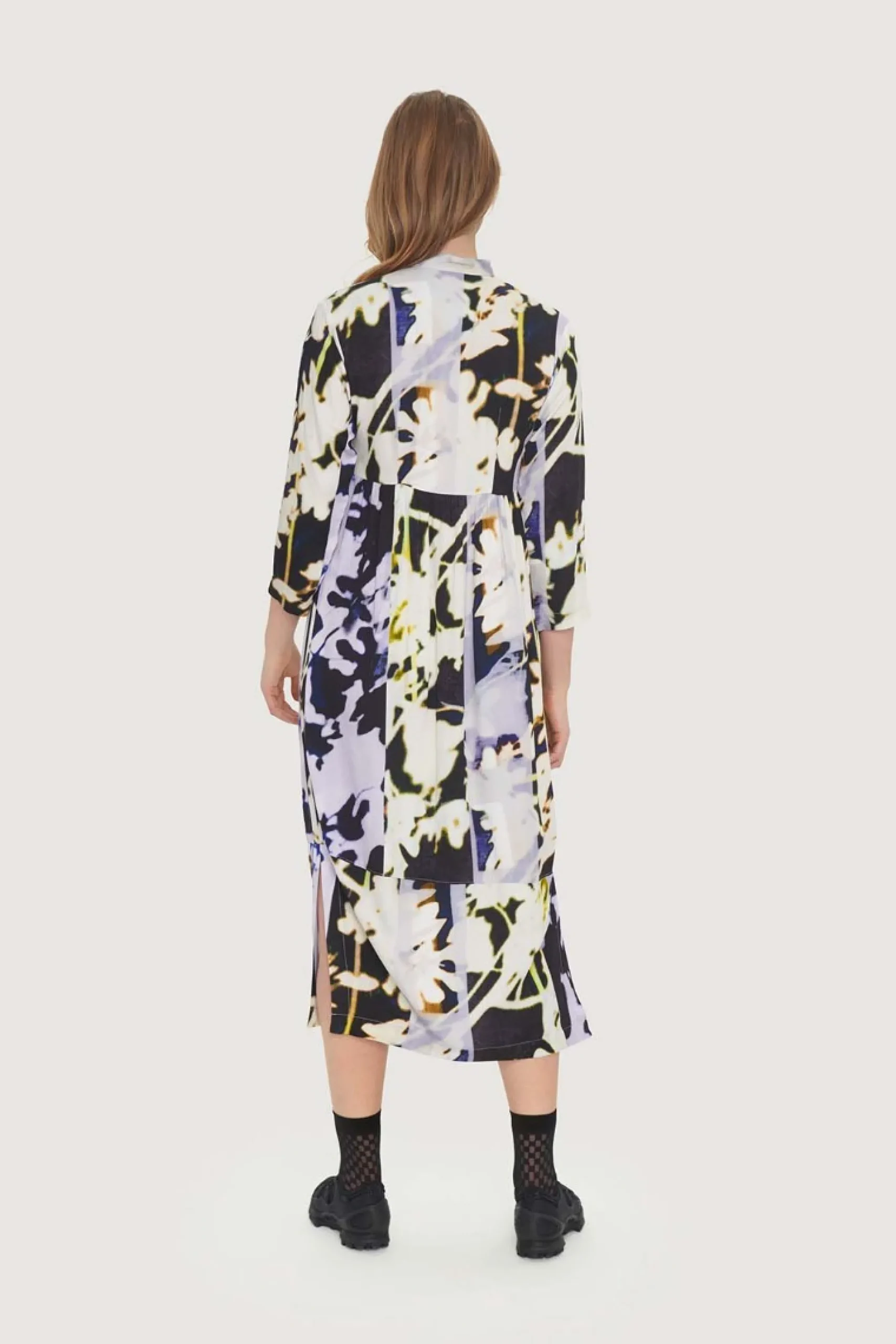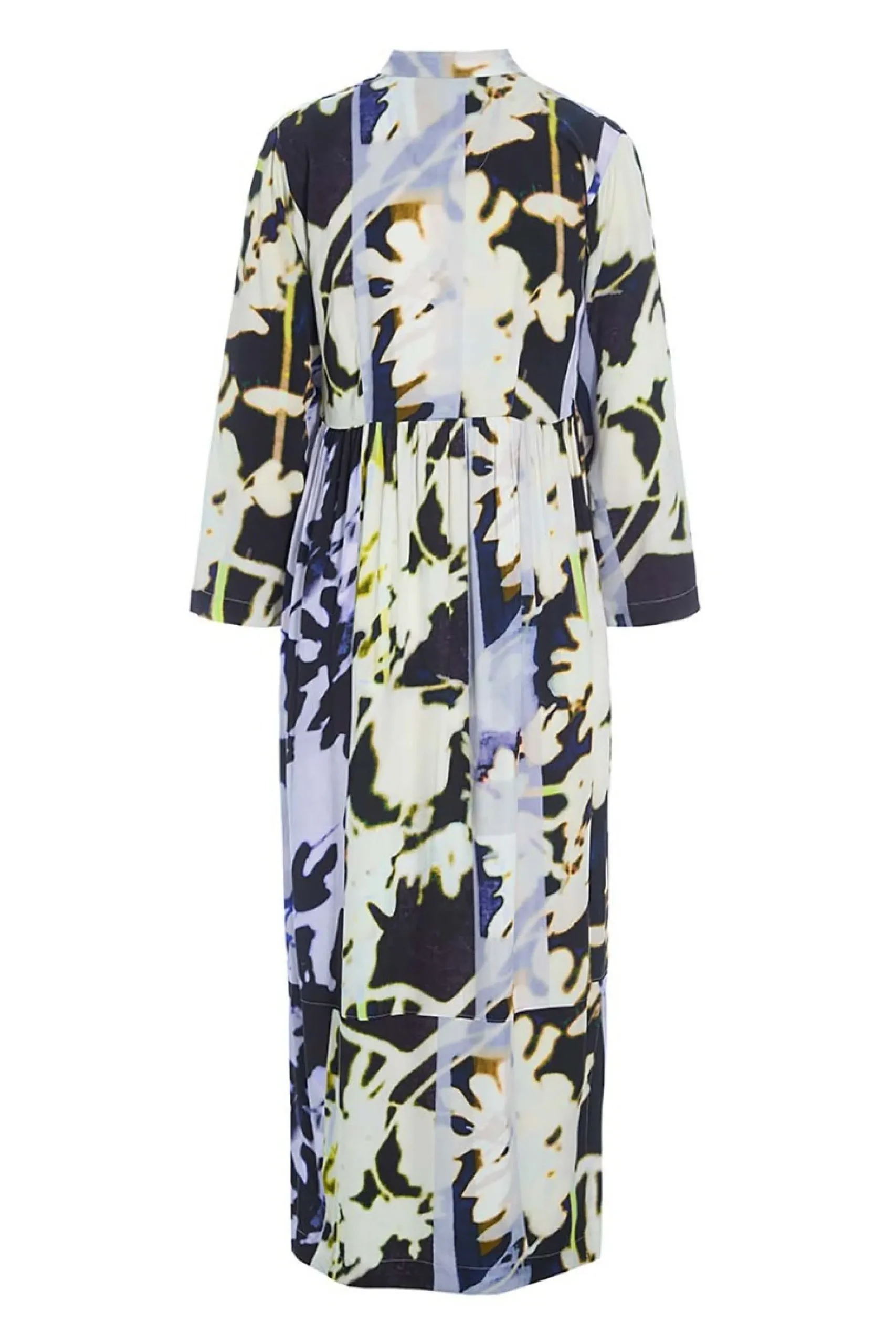 Lang kjole i FSC-certificeret viskose og med et enkelt snit og et flot, overdimensioneret blomstermønster i de smukkeste nuancer. En virkelig behagelig kjole at have på. Og den kan bruges både til hverdag og fest – sæt blot sko til efter din smag.Modellen på billede er 180 cm og iført str. SFuld længde i str. S, ca. 129 cm.