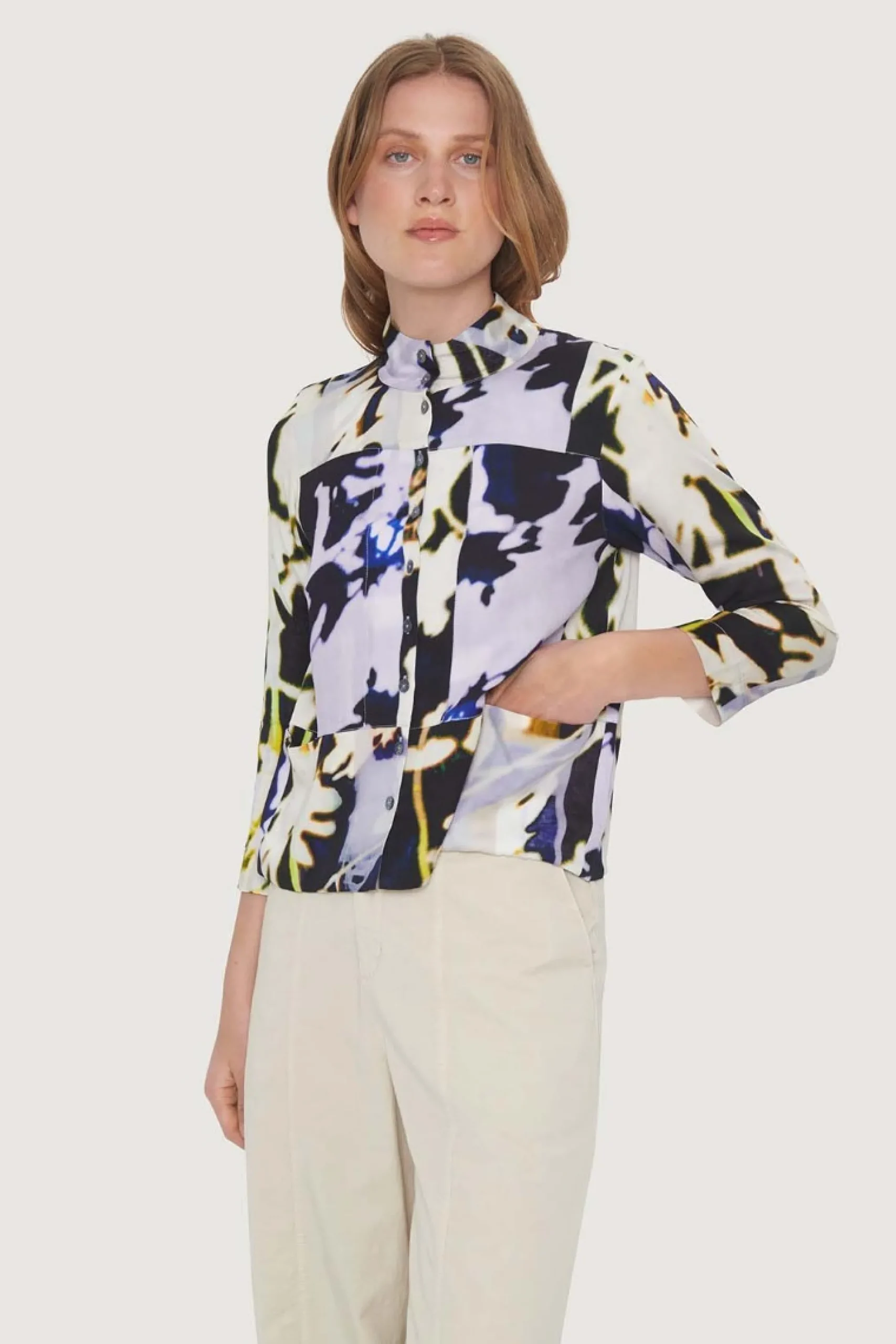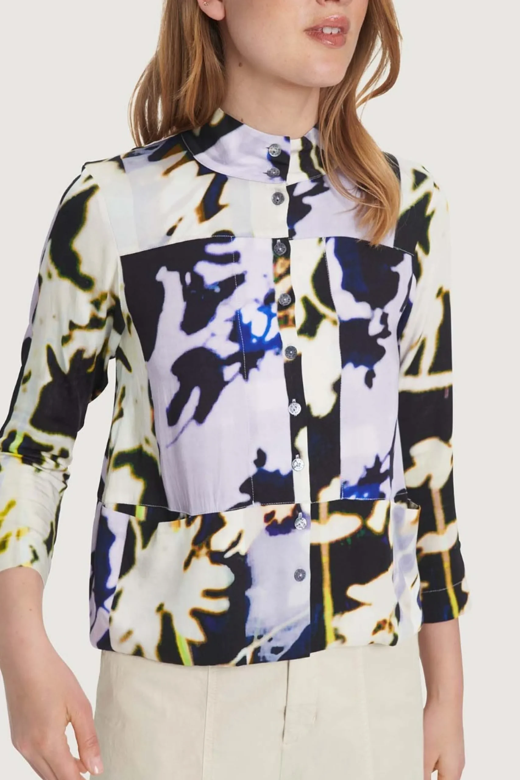 Skjorte i FSC-certificeret viskose og med et enkelt snit og et flot, overdimensioneret blomstermønster i de smukkeste nuancer. Der er skæringer henover skjorten, som bryder det store print på en iøjnefaldende måde. En meget klædelig skjorte, der kan bruges til enhver underdel og til både hverdag og fest.Modellen på billede er 180 cm og iført str. SFuld længde i str. S, ca. 59 cm.