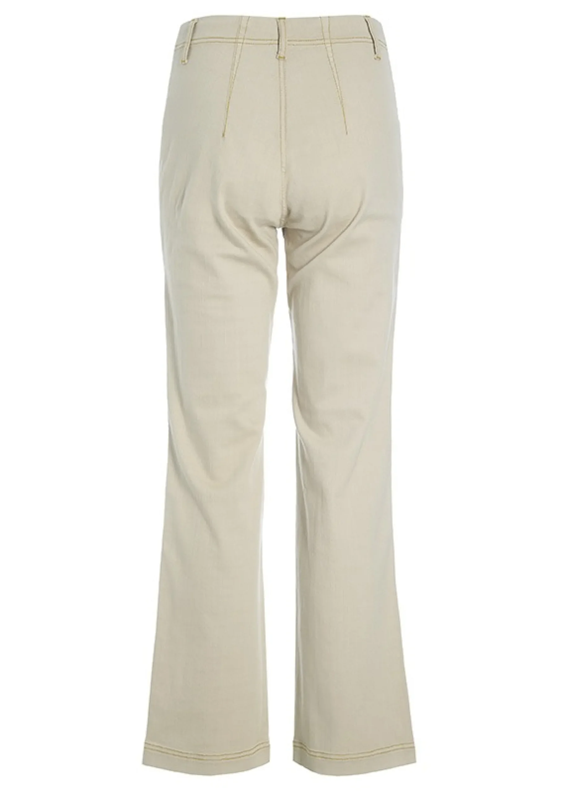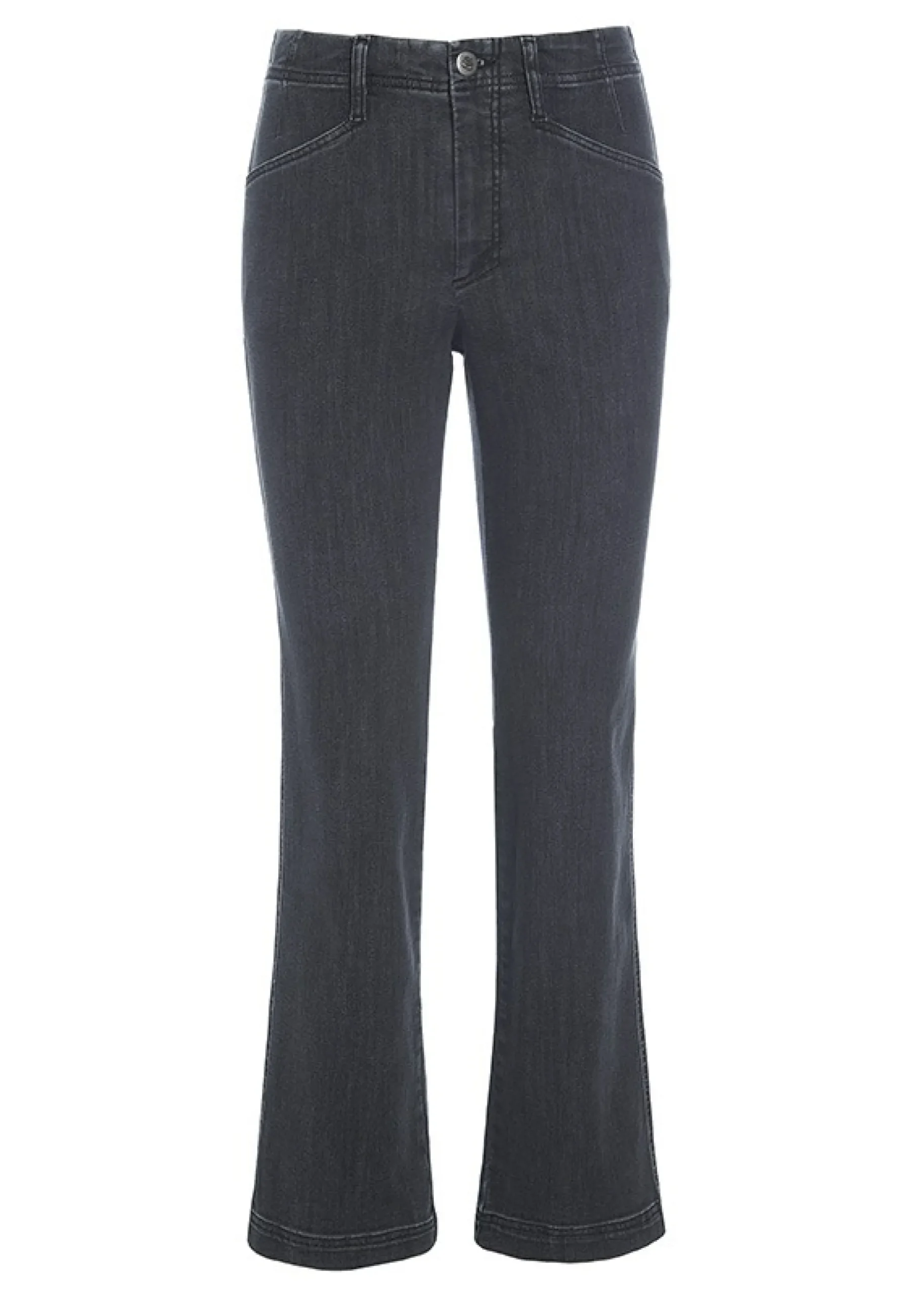 Jeans i enkelt snit med flatterende pasform, der vider let ud forneden, hvilket giver en flot silhuet. Bukserne er syet i en let elastisk kvalitet, der sikrer god bevægelighed og samtidig sørger for, at bukserne holder deres form.Modellen på billede er 178 cm og iført str. SFuld længde i str. S, ca. 104 cm
