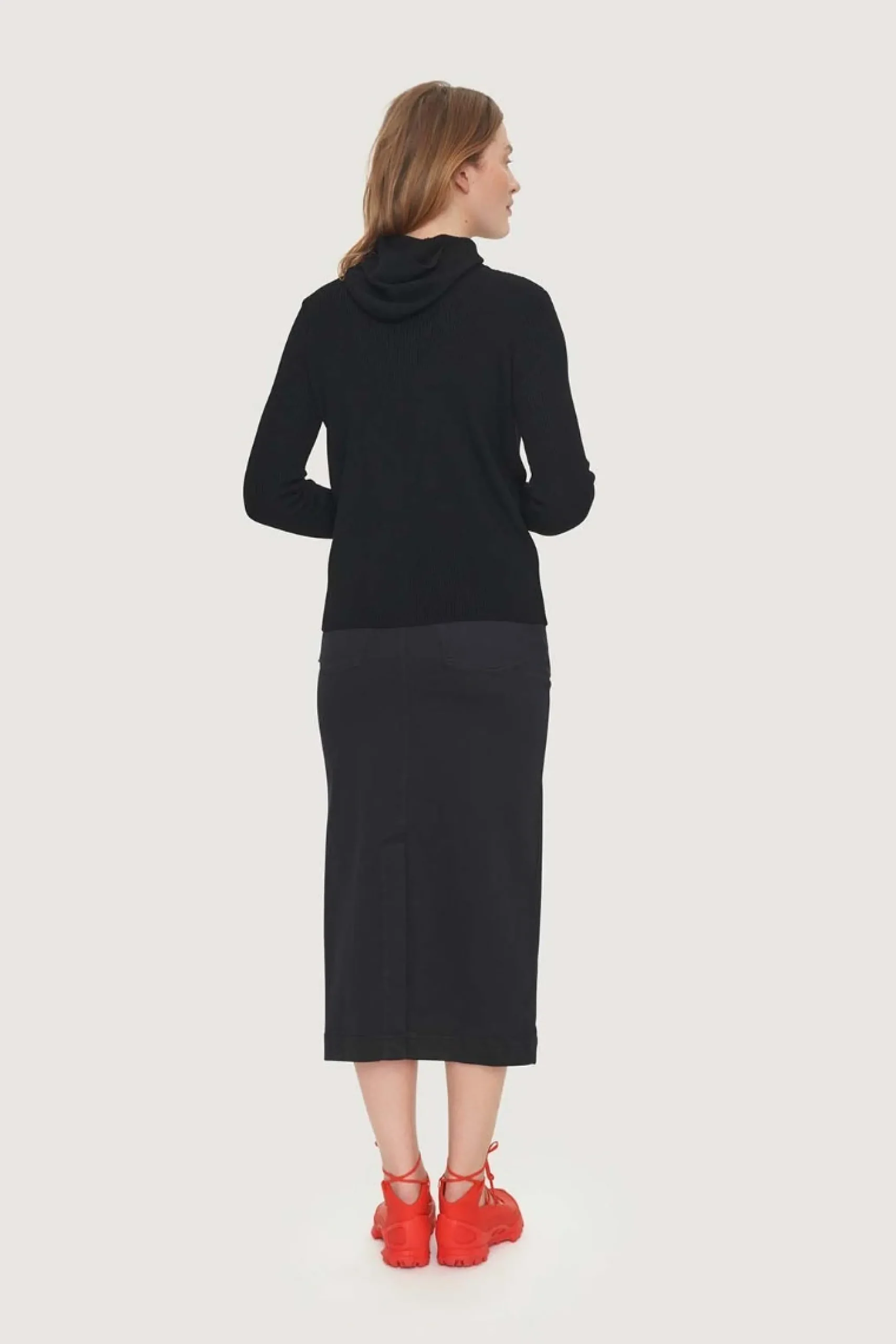 Denne ribstrikkede hættebluse i en lækker uldkvalitet er superbehagelig, blød og lun. Den ser cool ud under en blazer eller en kraftig skjorte. Hætteblusen er også smart uden noget over blot tilsat jeans, klassiske bukser eller en nederdel.Modellen på billede er 180 cm og iført str. SFuld længde i str. S, ca. 59 cm.