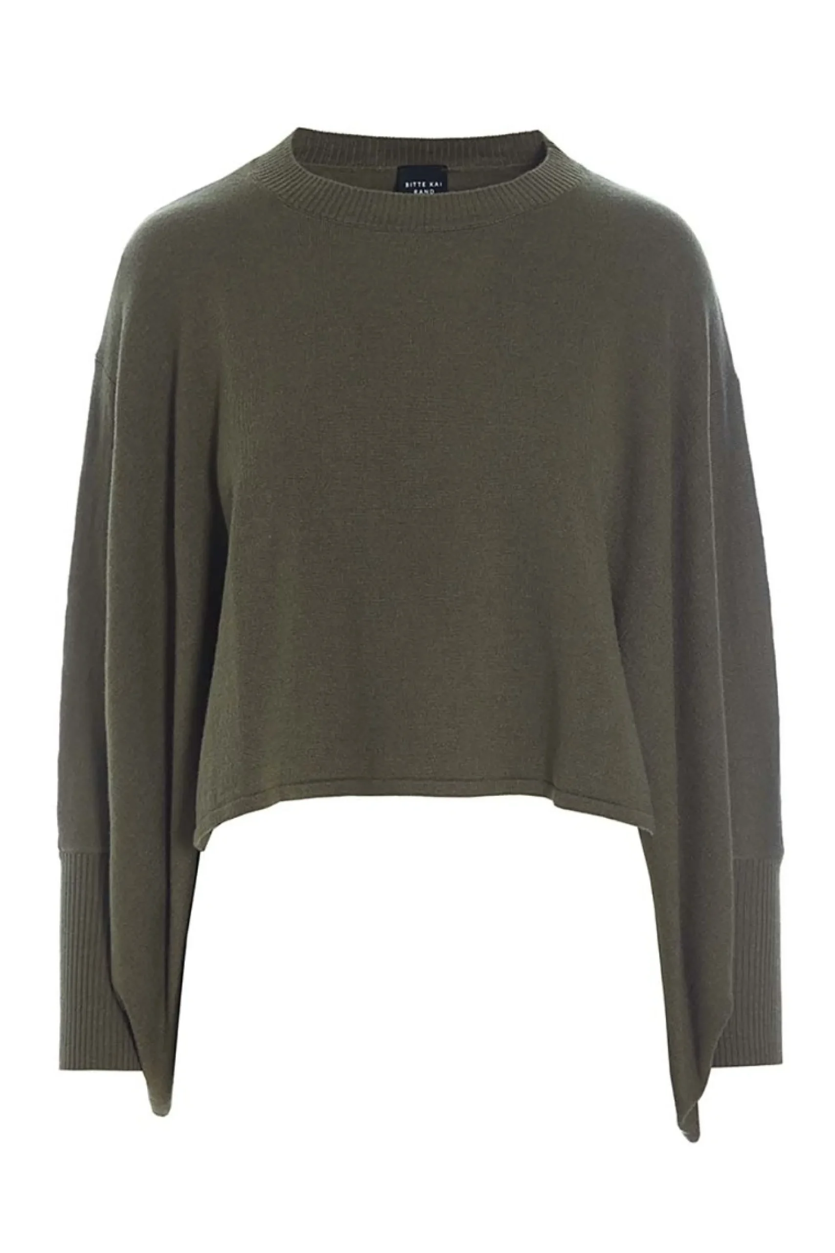 Denne finstrikkede bluse i en lækker uldkvalitet er superbehagelig, blød og lun. Blusens kimonoinspirerede ærmer er meget brede, hvilket får blusen til at drapere sig smukt om kroppen. En bluse, der både gør sig godt med en tætsiddende underdel og tilsat bukser med brede ben.Modellen på billede er 180 cm og iført str. 1Fuld længde i str. 1, ca. 45 cm.