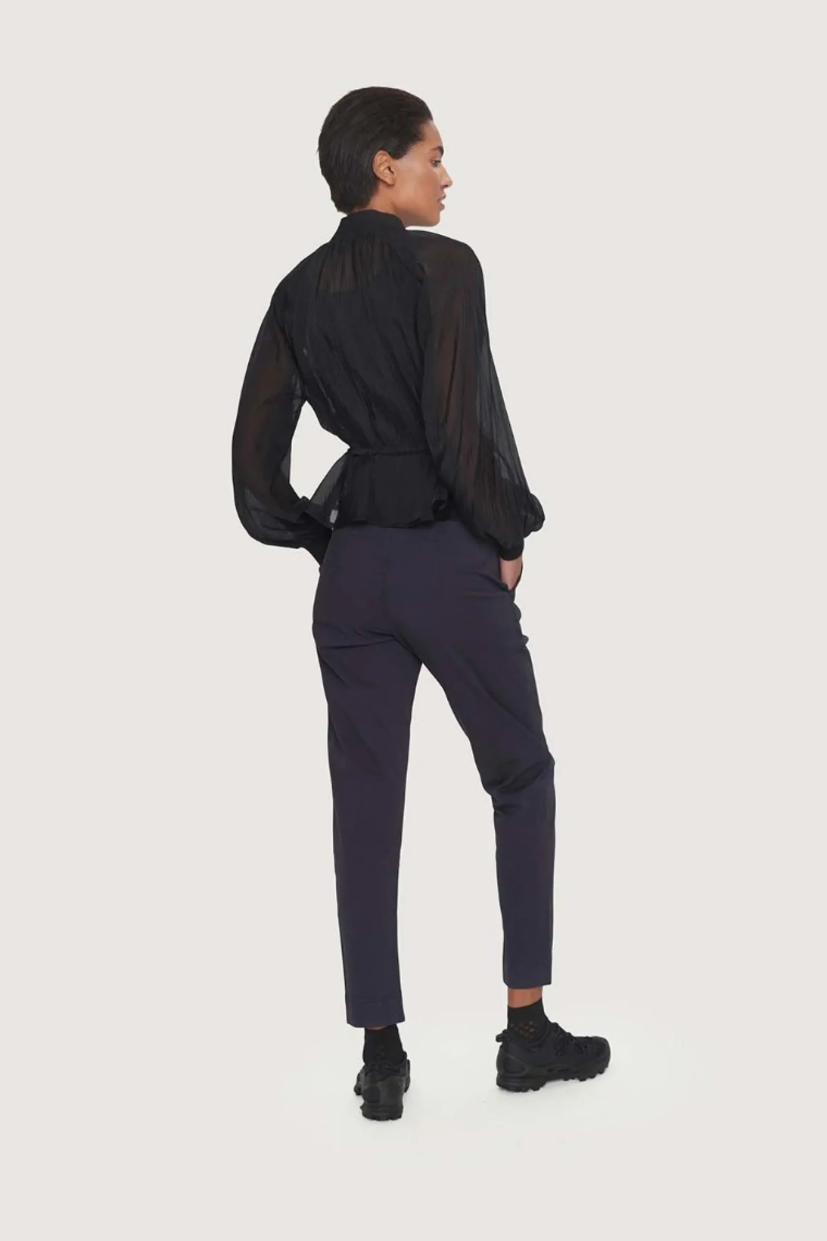 Klassiske bukser med moderat smalle ben og en lille slids forneden. En basisbuks som kan bruges både til hverdag med en pæn skjorte og til en middag i byen tilsat en festlig top. Der er stretch i stoffet, hvilket sikrer god bevægelighed. Denne buks findes også i en længere version Kihon lange bukser.Modellen på billede er 180 cm og iført str. SLængde målt fra taljen i str. S: ca. 92 cm.