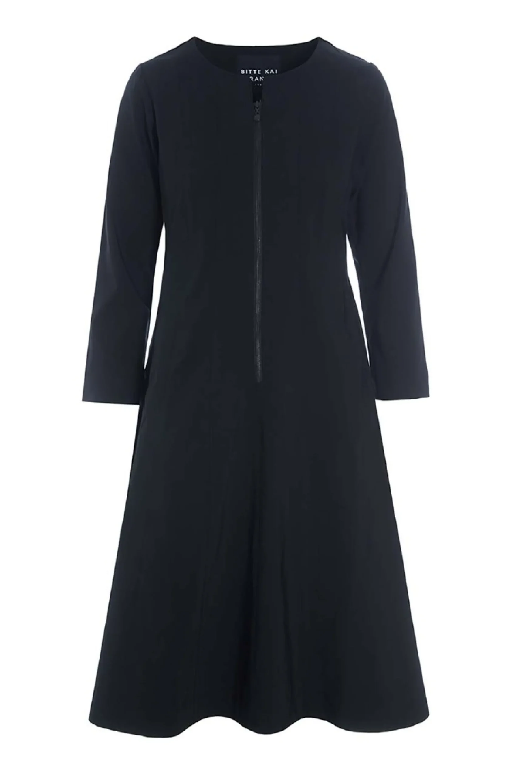 Kjole med et feminint og meget klædeligt snit, der giver en flot silhuet. Taljen er let markeret, og der er god vidde i skørtet. Komforten skal du ikke gå på kompromis med – der er tilsat stretch i stoffet, hvilket giver god bevægelighed. En enkel kjole, som kan bruges til enhver lejlighed.Modellen på billede er 180 cm og iført str. SFuld længde i str. S, ca. 109 cm.
