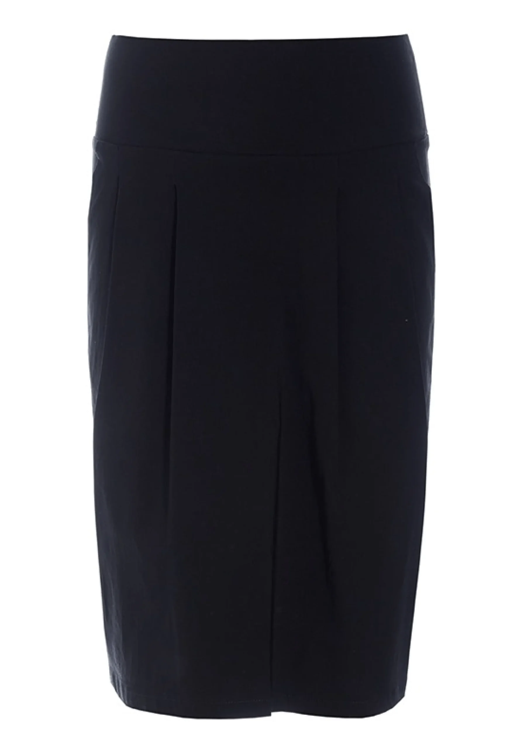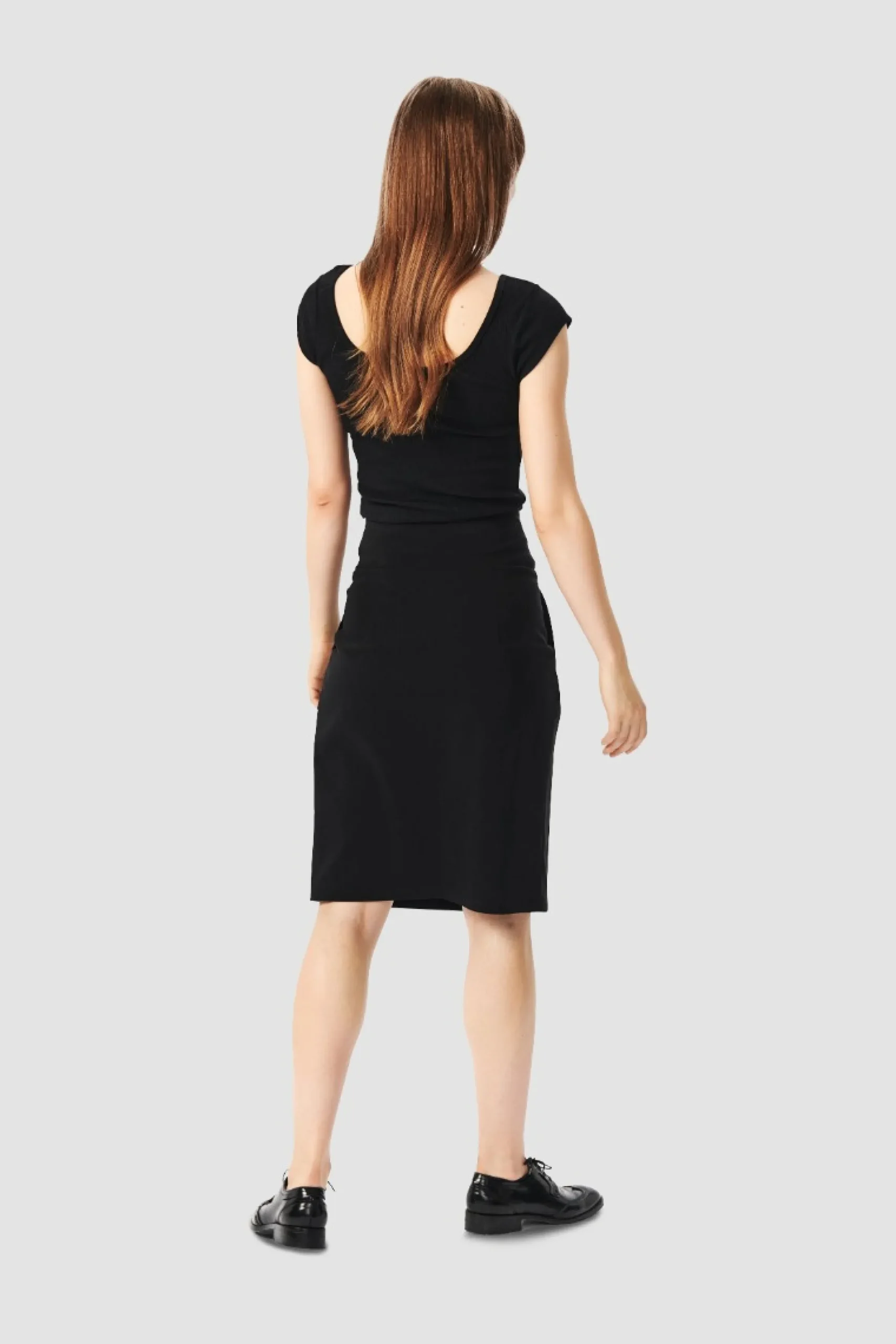 Denne figursyede nederdel giver en flot silhuet, og den brede linning markerer taljen på flatterende vis. Der er tilsat stretch i stoffet, hvilket sikrer god bevægelighed. En smuk basisnederdel, som kan bruges til enhver overdel.