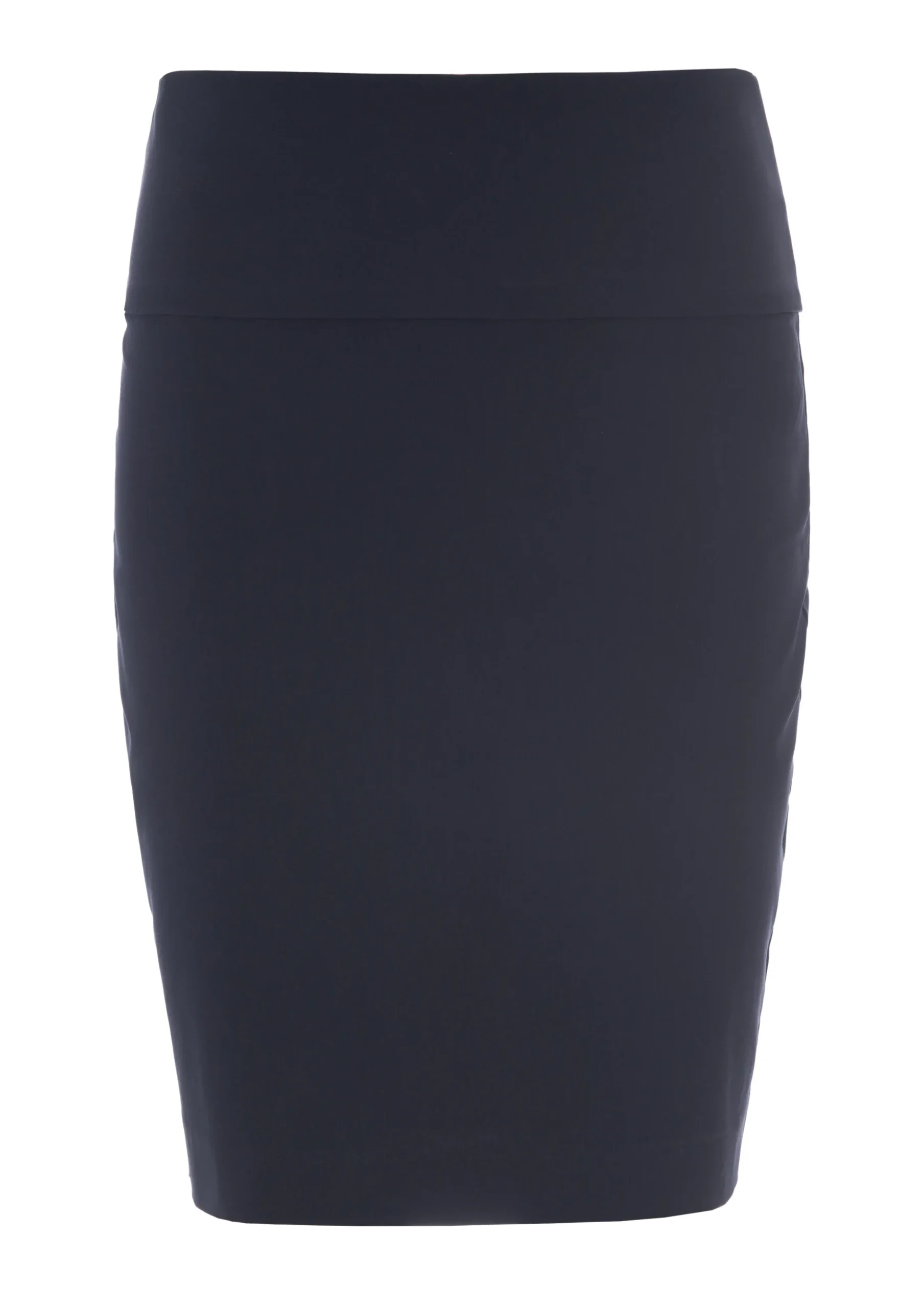 Basisnederdel med klædelig og tætsiddende pasform. Der er stretch i nederdelen, som sikrer en god bevægelighed. Nederdelens brede linning kan trækkes op over maven eller foldes ned for en almindelig taljehøjde. Denne effekt gør den meget behagelig.Modellen på billede er 176 cm og iført str. S A Længde i str. S, ca. 45 cm. B Længde i str. S, ca. 53 cm.