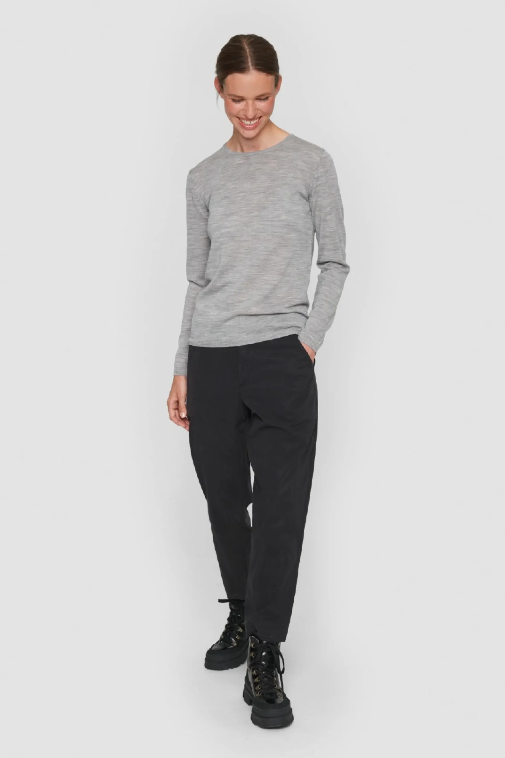 Helt enkel strikbluse i den blødeste, fine merinould. Blusen kan takket være sin enkelthed og det kropsnære design bruges til enhver underdel. Og den er perfekt at have under en kjole, blazer eller tunika, når temperaturen kryber nedad.Modellen på billede er 178 cm og iført str. SFuld længde i str. S, ca. 60 cm