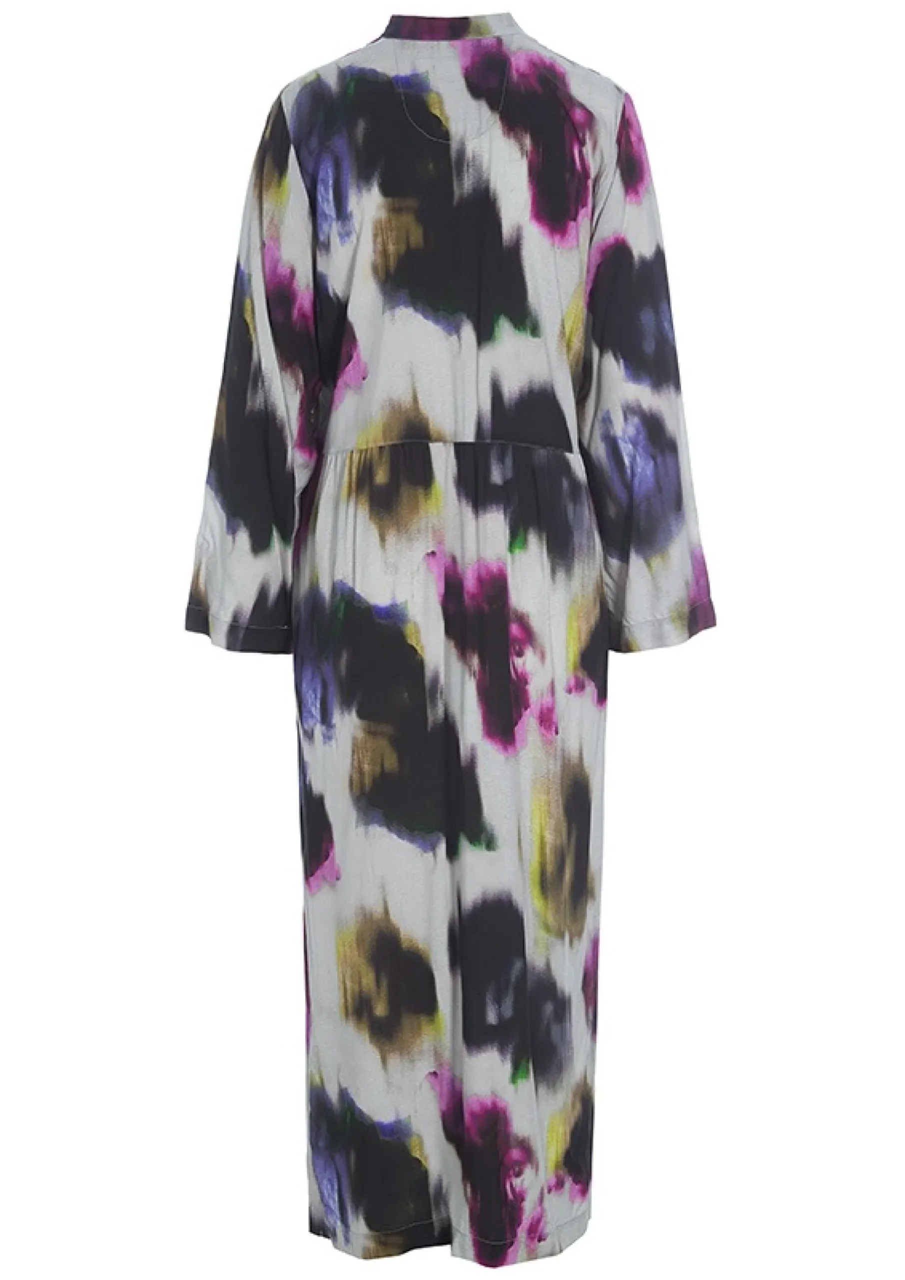 Lang kjole med et super enkelt snit og det smukkeste blomsterprint, der har et grafisk islæt. Kjolen giver en lang, slank silhuet. Og den gør det enkelt og let at blive velklædt i en fart. Sæt blot et par flade snøresko til, og du er klar.Modellen på billede er 178 cm og iført str. SFuld længde i str. S, ca. 129 cm