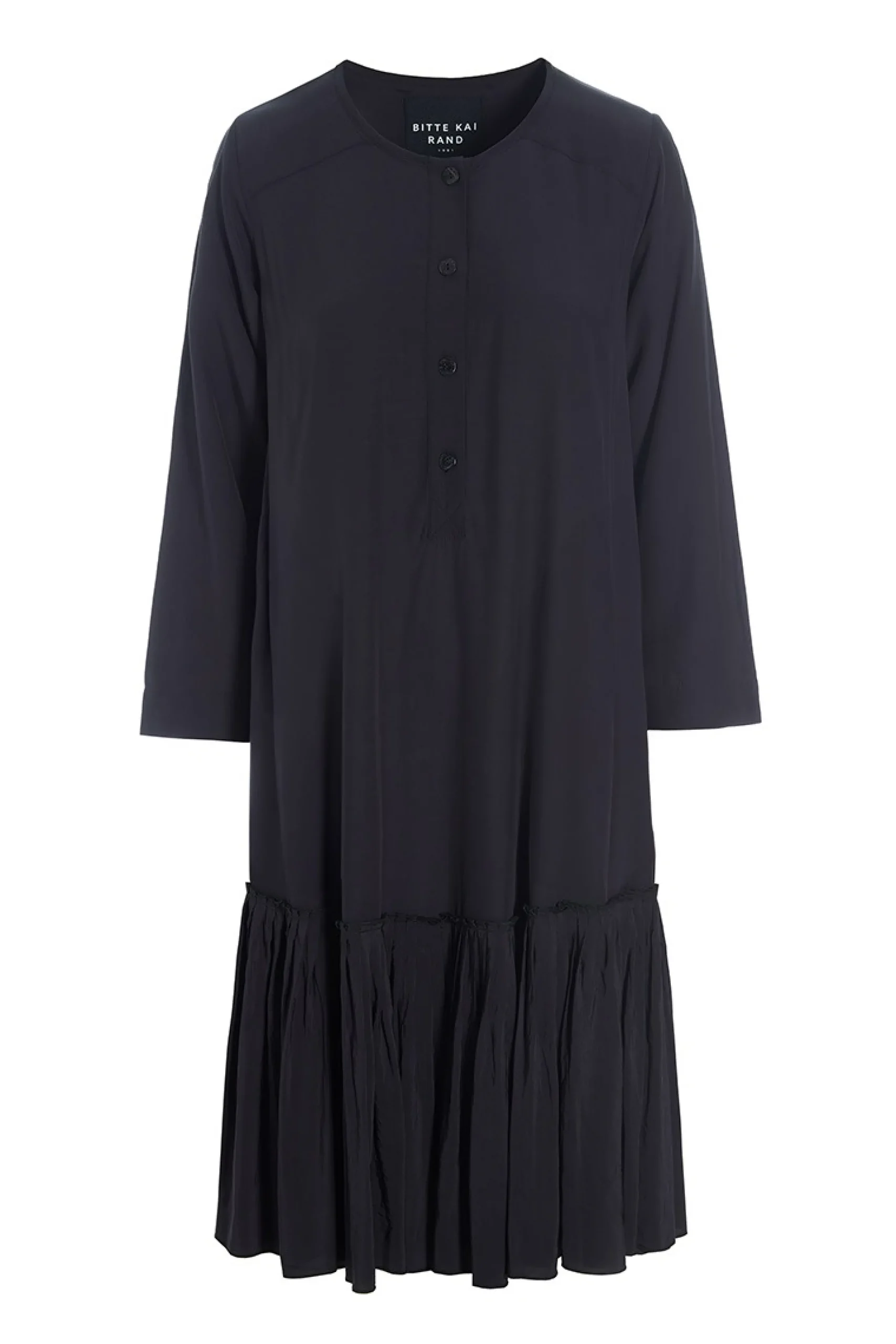 Kjole i en blød og lækker FSC-certificeret viskosekvalitet. Kjolen har masser af vidde og er forsynet med et bredt plisseret stykke forneden. En kjole, som kan bruges såvel til hverdag med enkelt tilbehør som til en middag i byen tilsat festlige sko.Modellen på billede er 180 cm og iført str. SFuld længde i str. S, ca. 99 cm.